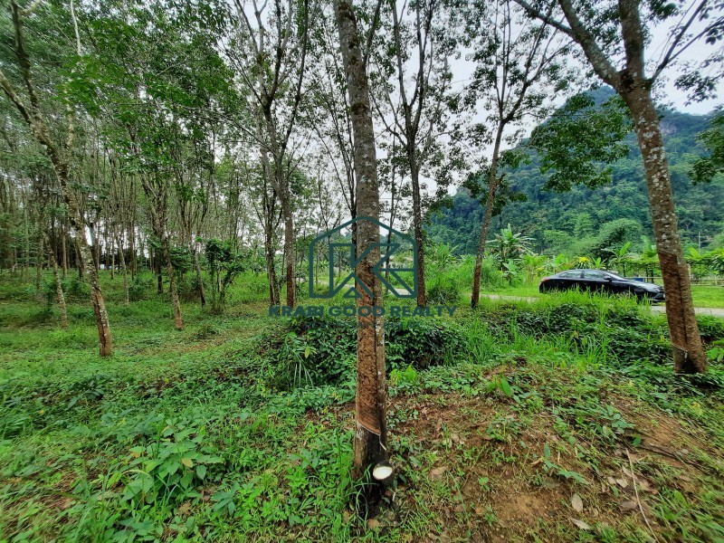 ที่ดินพร้อมสวนยางพาราอายุประมาณ10ปี ตั้งอยู่ใกล้ภูเขาและปากแม่น้ำซึ่งเชื่อมต่อกับทะเล โดยรอบเป็นพื้นที่สีเขียว อากาศบริสุทธ์และเงียบสงบ สามารถสร้างรายได้จากผลผลิตสวนยางพารา อีกทั้งยังเหมาะกับการสร้างที่อยู่อาศัยหลังจากการเกษียณเป็นอย่างยิ่ง ที่ดินอยู่ถัดจากถนน ระบบน้ำและไฟฟ้าพร้อมติดตั้ง และข้างหน้าเป็นวิวภูเขาที่สวยงาม