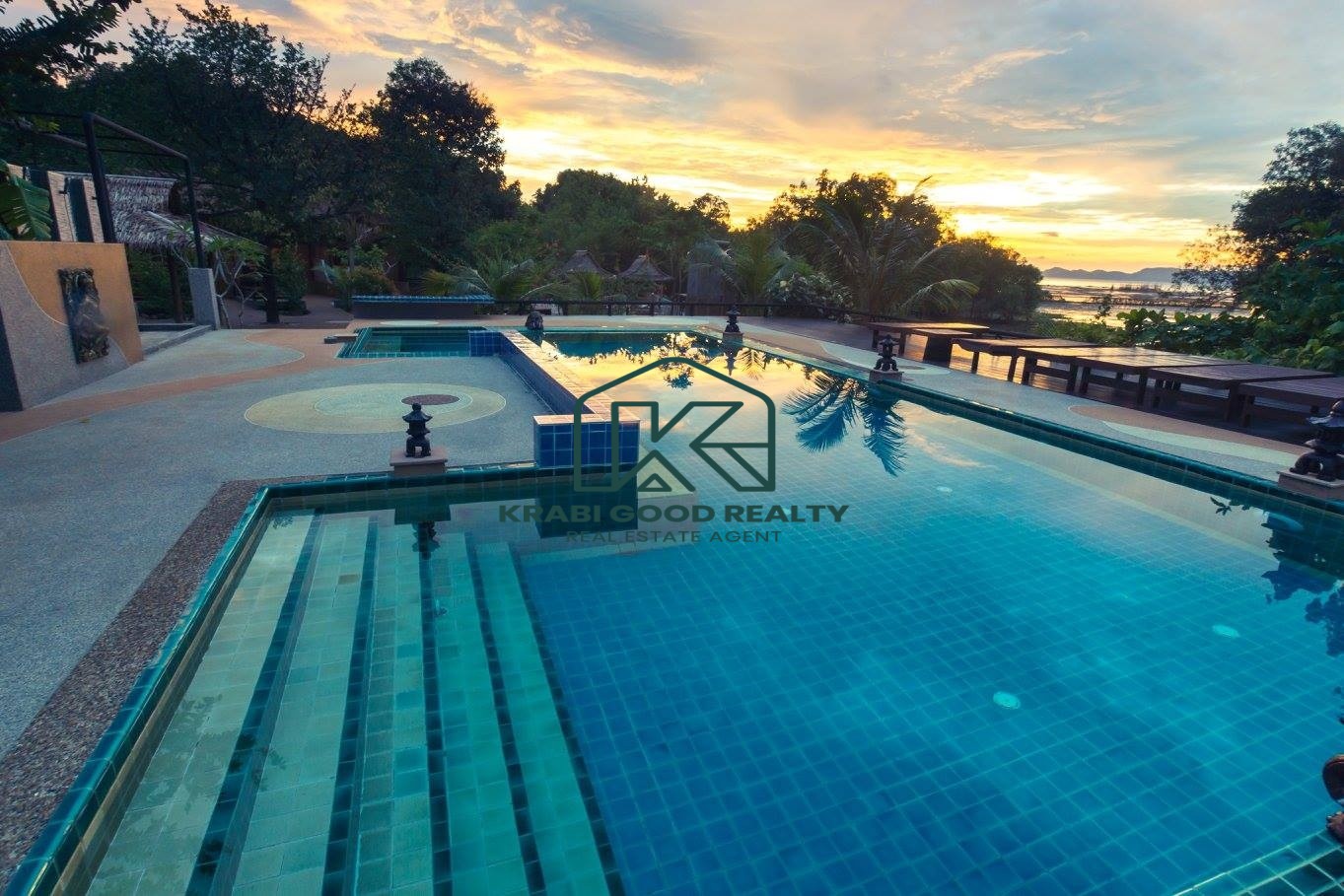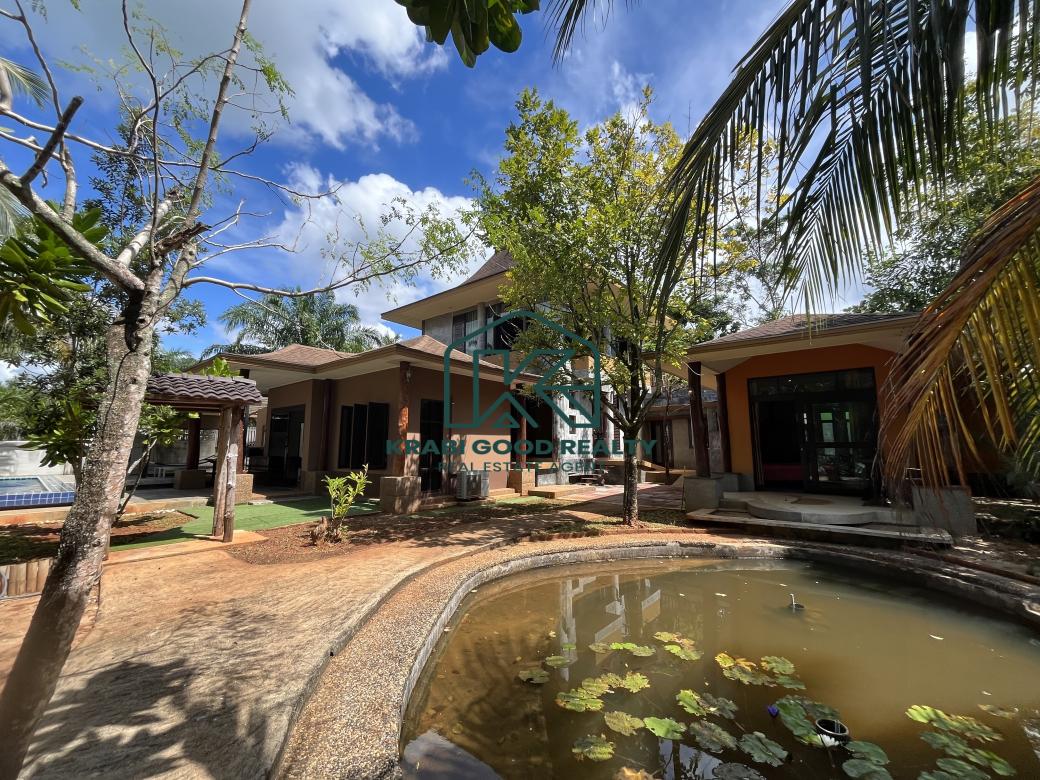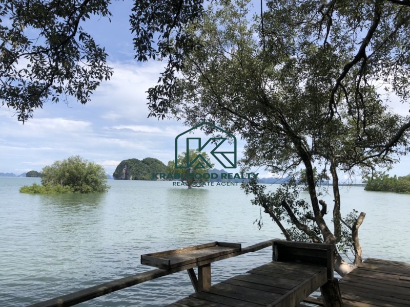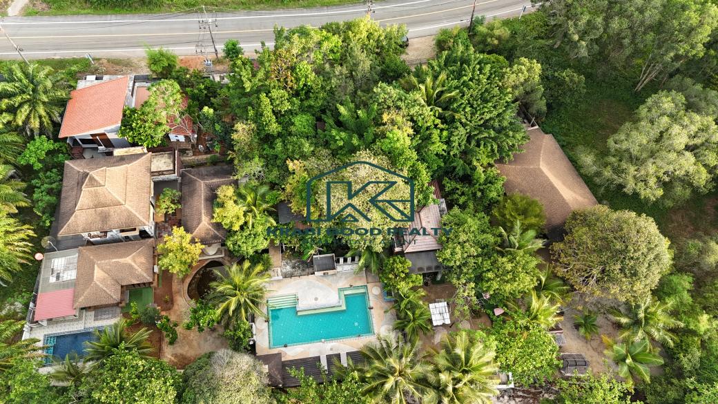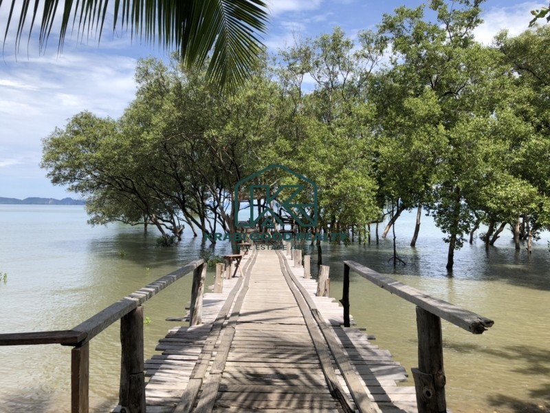 12 bedroom of the beautiful resort with islands view. The resort has a café and a restaurant. Surrounded by the natural, relaxing, and large swimming pool. It included a wooden bridge over the river for watching the beautiful sunset. Great location. The land size is almost 2 Rai, which is represented in the Chanote title deed. The plot length is approximately 80 meters. It consists of 9 units that are