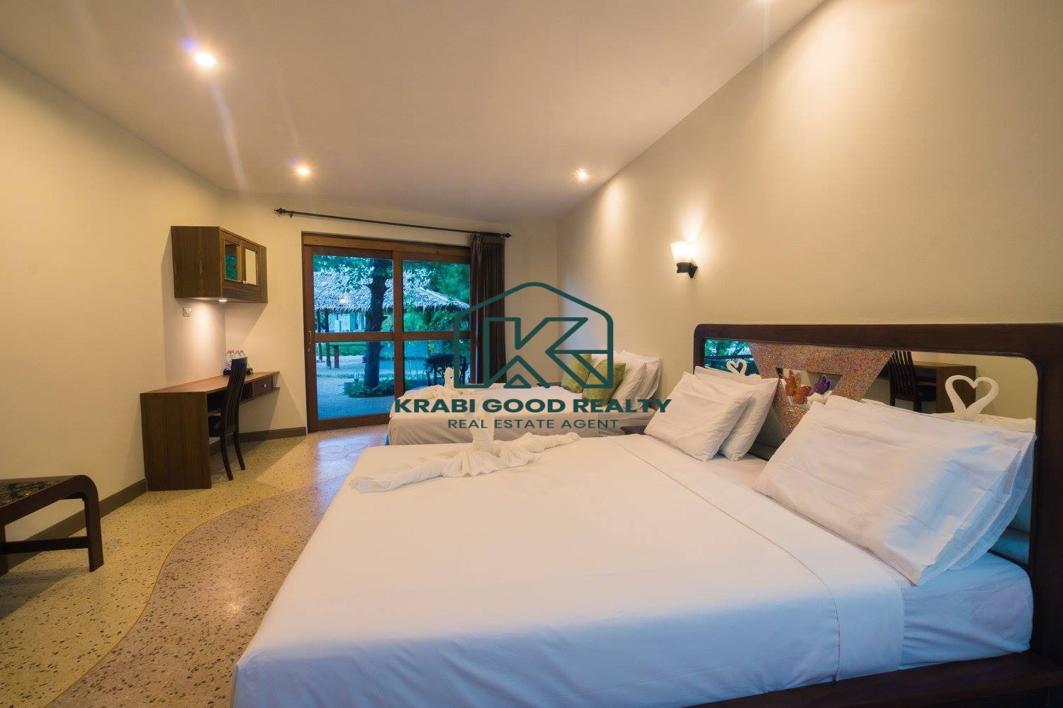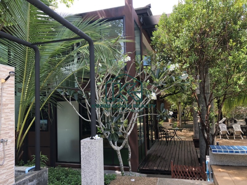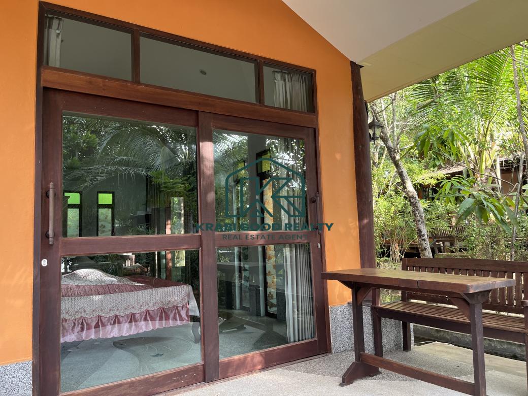 12 ห้องนอนของรีสอร์ทที่สวยงามพร้อมวิวของเกาะ รีสอร์ทมีคาเฟ่และร้านอาหาร ล้อมรอบด้วยธรรมชาติ ผ่อนคลายไปกับสระว่ายน้ำขนาดใหญ่ ประกอบด้วยสะพานไม้ข้ามแม่น้ำเพื่อชมพระอาทิตย์ตกดินที่สวยงาม ทำเลดีมาก มีเนื้อที่เกือบ 2 ไร่ ซึ่งปรากฏอยู่ในโฉนดที่ดิน ความยาวแปลงประมาณ 80 เมตร ประกอบด้วย 9 ยูนิต