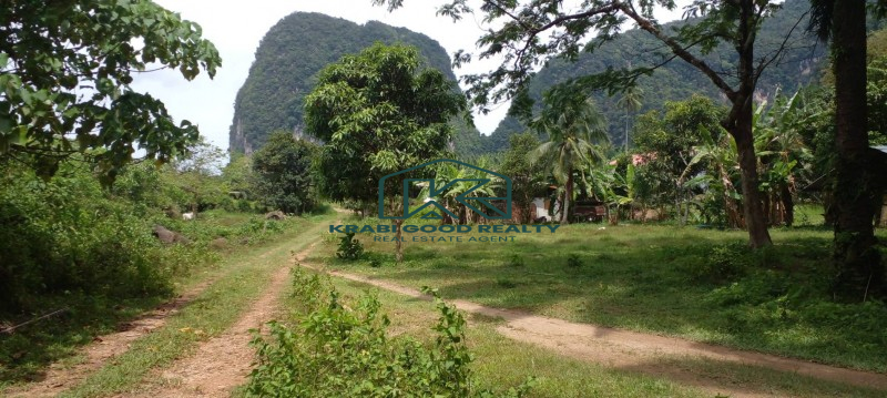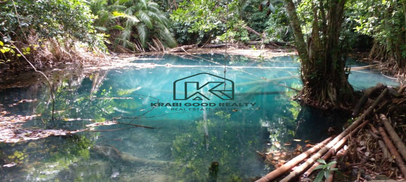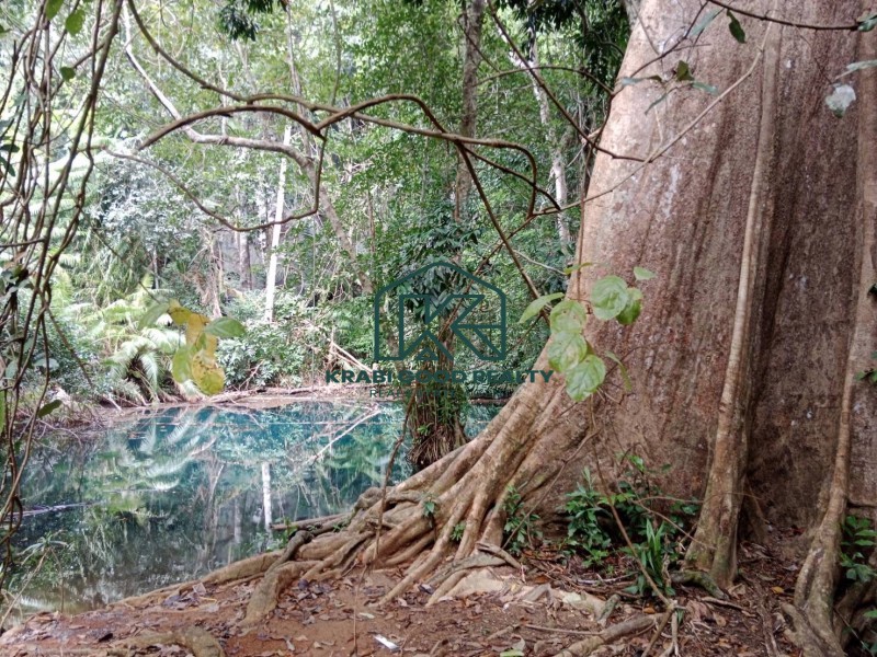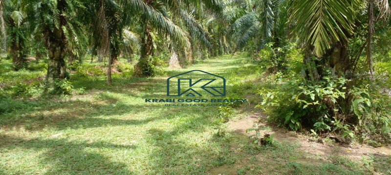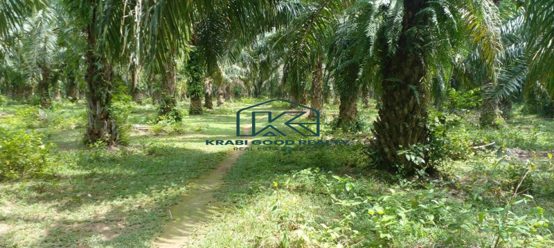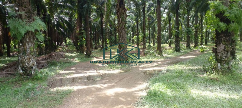 A large plot of palm plantation with a Chanote title deed next to the main road is for sale in Khao Khram, Krabi. Electricity is available from the road. This plot is close to the popular Crystal Lake, which is a popular tourist attraction. The land has a crystal clear stream surrounded by mountains in front and back. The length of plot is approximately 220 meters. The land is appealing for investment or the development of a nature resort or villa among nature and scenery. Convenience store can be reached within 5-mins by car, Khao Thong ViewPoint 10 mins, Airport 17-mins, Krabi town is 20 mins