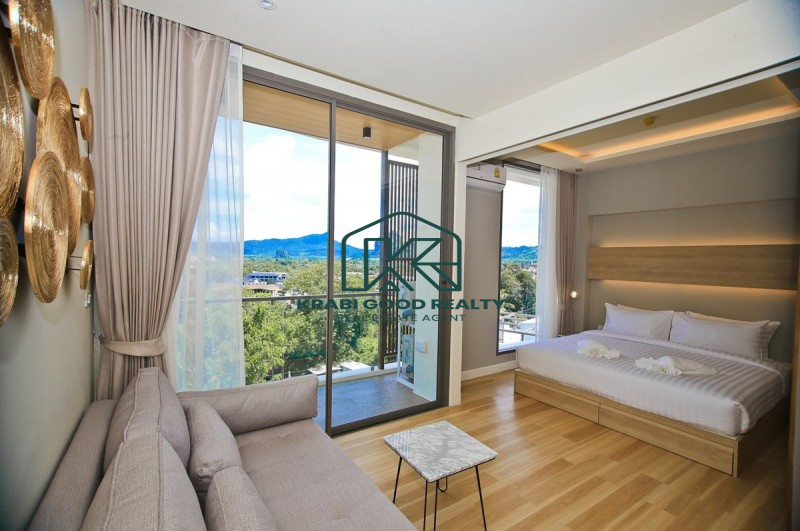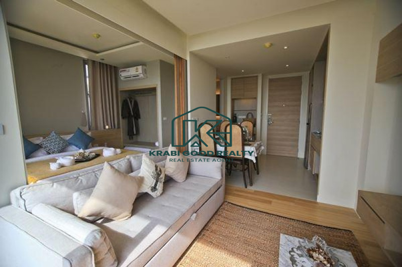 คอนโดมิเนียมใจกลางอ่าวนาง อยู่ใกล้ชายหาด เดินเพียง 1 นาทีจากจุดลงเรือไปยังเกาะพีพี สวนสาธารณะหาดนพรัตน์ธารา และหาดอ่าวนาง ทำเลดีที่สุดแห่งเดียวในอ่าวนาง คอนโดมิเนียมที่มีบรรยากาศเป็นภูเขา ในความสะดวกสบายเป็นส่วนตัว 1 ห้องนอน พร้อมเฟอร์นิเจอร์สุดหรู บนพื้นที่ 35.20 ตรม. 1 ห้องนั่งเล่น ห้องครัว และโซนทานอาหารกลางห้อง ทีวี 1 เครื่องในห้องนั่งเล่น สระว่ายน้ำพร้อมไฟดาวใต้สระ และศูนย์ออกกำลังกายพร้อมเครื่องออกกำลังกายครบครัน ด้วยระบบคีย์การ์ด กล้องวงจรปิด และเจ้าหน้าที่รักษาความปลอดภัยตลอด 24 ชั่วโมง ให้คุณพักผ่อนได้อย่างสบายใจ