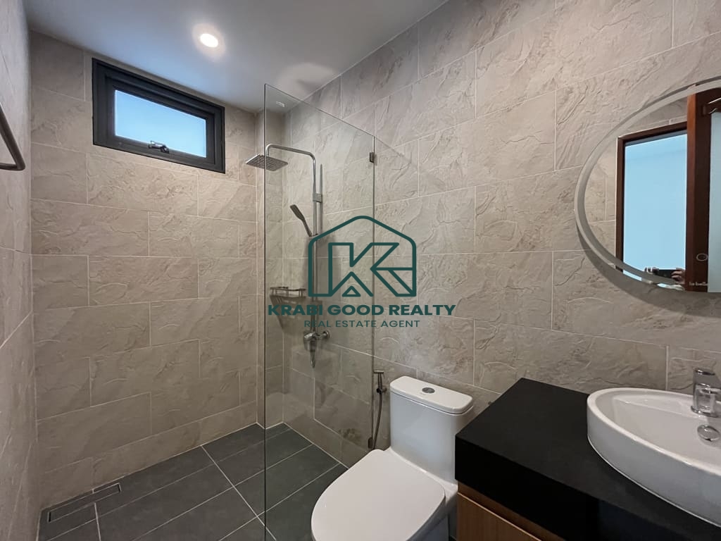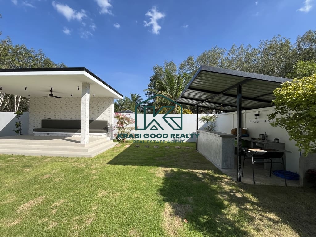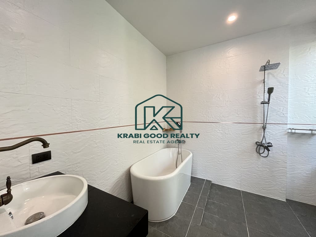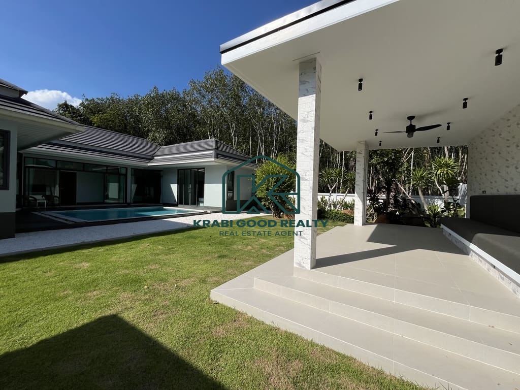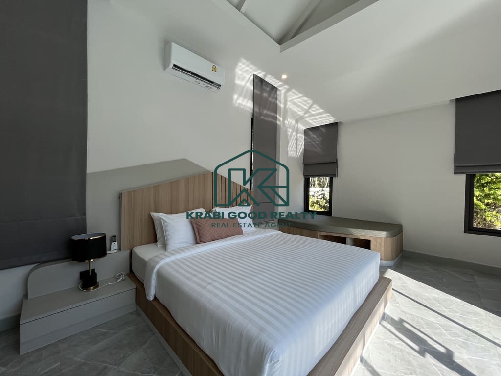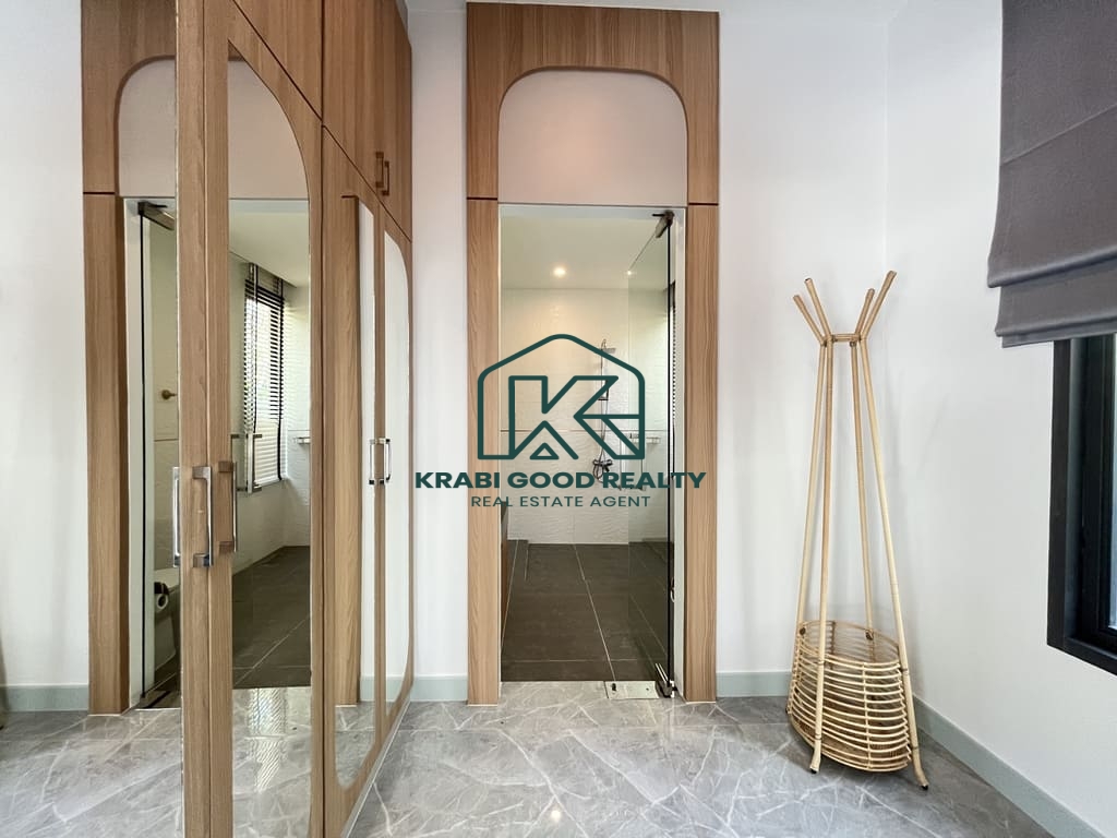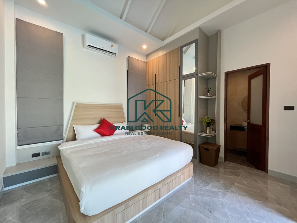 เป็นวิลล่าหลังแรกที่เงียบสงบในโครงการใหม่ที่อ่าวนาง ไม่ไกลจากชายหาด เมืองกระบี่ และสนามบิน ขนาดที่ดิน 640 ตรม. ตามโฉนดบ้าน พื้นที่ใช้สอย 180 ตรว. ถนนส่วนตัวกว้าง 8 เมตร.. อ่าวนางเป็นชายหาดบนชายฝั่งทะเลอันดามันและเป็นหนึ่งในสถานที่ท่องเที่ยวยอดนิยมของประเทศไทย พูลวิลล่าสุดหรูของวิลล่าที่ทันสมัยและใช้งานได้จริงเหล่านี้ประกอบด้วยห้องนอน 3 ห้อง โดยมีห้องนอนใหญ่ 1 ห้อง พร้อมตู้เสื้อผ้าแบบวอล์กอิน แอร์ และอ่างอาบน้ำ ห้องนอนมาตรฐานทุกห้องมีห้องน้ำในตัว ตู้เสื้อผ้า และเครื่องปรับอากาศ พื้นที่นั่งเล่น พื้นที่รับประทานอาหาร และห้องครัวรวมกัน ซึ่งได้รับการตกแต่งอย่างครบครัน หมายความว่าวิลล่ามีขนาดใหญ่พอที่จะรองรับครอบครัวเต็มรูปแบบตั้งแต่สามคนขึ้นไป วิลลานี้มีพื้นที่นั่งเล่นภายในกว้างขวาง สระว่ายน้ำระบบเกลือส่วนตัว สวนกว้างขวางเหมาะสำหรับพื้นที่กลางแจ้ง ดินเนอร์และบาร์บีคิว .จอดรถได้2คัน. คุณสมบัติพิเศษ งานคุณภาพ ก่อสร้างสูง ฝ้าเพดานสูง 3.5 เมตร ระบบเคเบิลใต้ดิน น้ำประปา ไฟฟ้าของราชการ ที่ซึ่งคุณสามารถผ่อนคลายและเพลิดเพลินกับอากาศดีๆ ของอ่าวนางในวิลล่าของคุณเอง