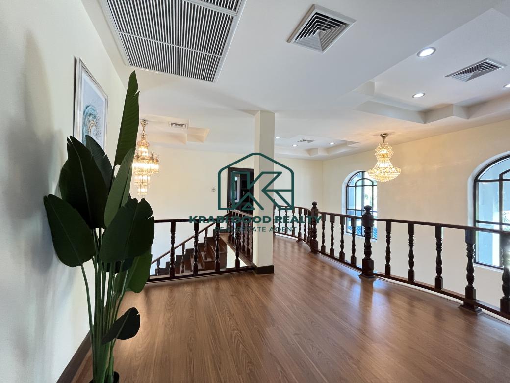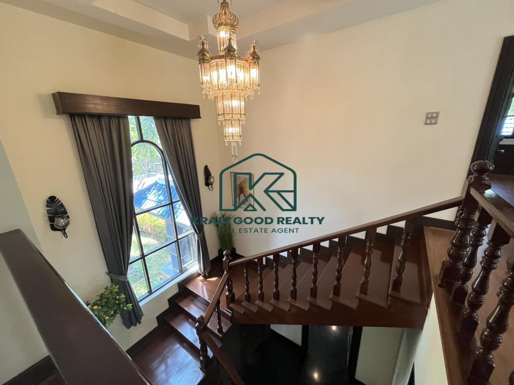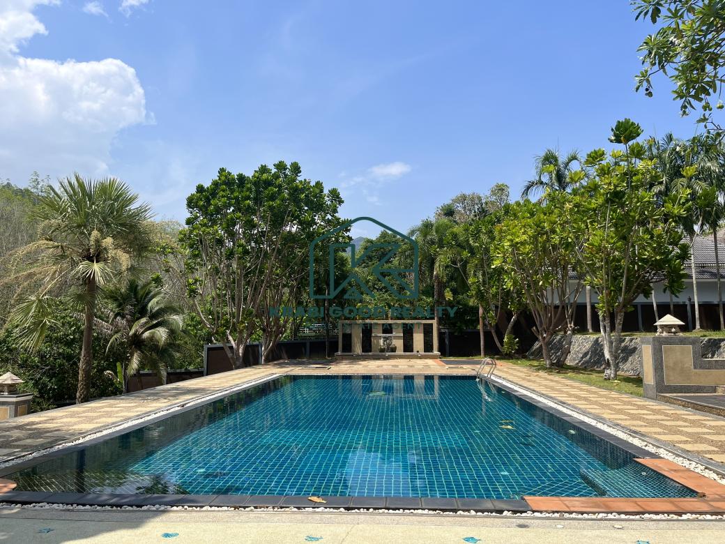 This perfect family mansion has a total area of 3-2-52 rai, complete with a variety of garden styles that come with a shady atmosphere. It is one of perfection created for you. with a large swimming pool. size of 6*16 meters overlooking beautiful mountain views, as if staying in a luxury hotel, allowing you to immerse yourself in the forest's natural beauty. When walking into the mansion, the first floor consists of a living room. Spacious bathroom and bedroom with access to the swimming pool Next to it are a snooker room, a dining room, and a kitchen. Going up to the second floor is a master bedroom with an en-suite bathroom complete with a Jacuzzi tub. There is a built-in wardrobe. a balcony overlooking the mountain and pool views. Next to it are two more standard bedrooms with en-suite bathrooms, built-in wardrobes, and balconies overlooking the natural garden surrounding the house. and one maid's room. This mansion has air ducts installed throughout the house. believe that the perfection of this mansion is the dream of everyone who wants to possess it.
