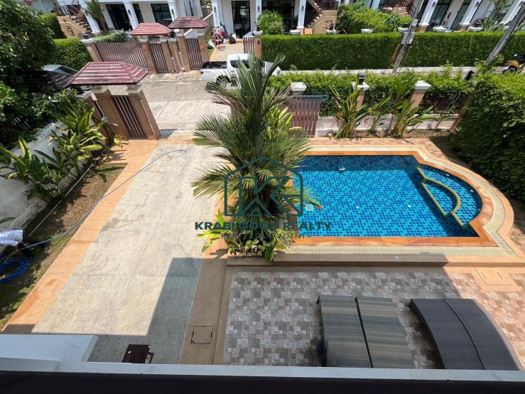 If you are looking for a private villa, This property is conveniently located. It is close to many interesting attractions and restaurants. Villa for rent, 4 bedrooms, 2 floors with a swimming pool, Ao Nang, Krabi, area size 304 square meters, living area size 220 square meters, interior decorated in luxury. The first floor consists of a living room, dining room, kitchen, and, outside, parking for two cars and a large swimming pool. The second floor consists of four bedrooms with en-suite bathrooms. with smart TV Air conditioning, furniture, and a balcony that is considered a point that receives the air, receives the sun, and is close to nature This area can dry clothes. Or sit and sip coffee in the morning sun. Or at night, you can lie down and watch the stars because of the spacious area. This villa is located in a convenient area, close to many interesting attractions and restaurants.