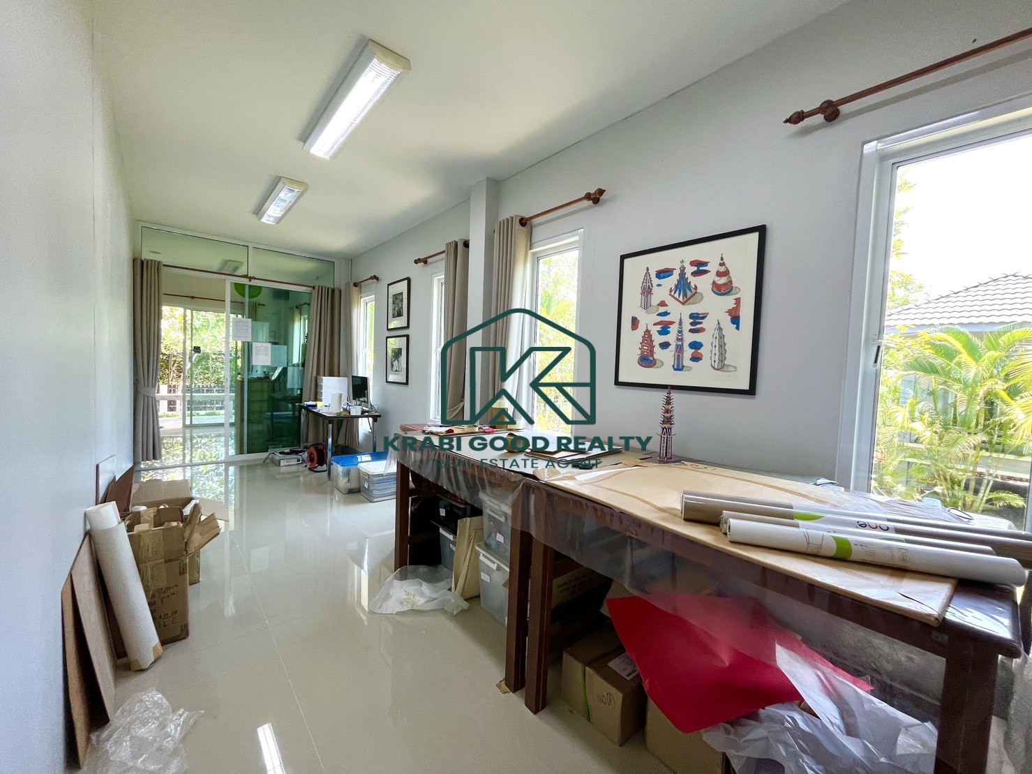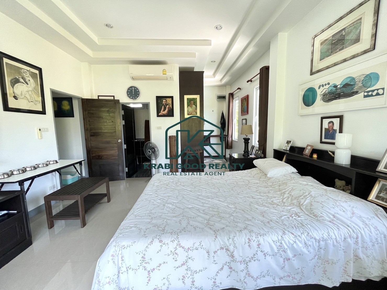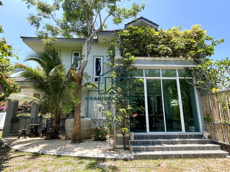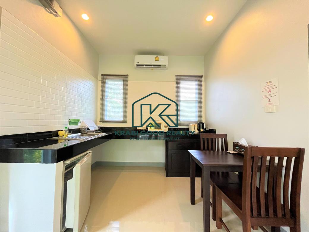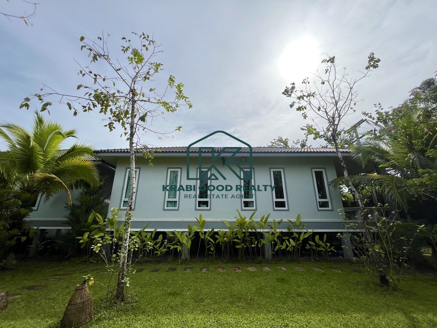 The accommodations are villas and bungalows. Business for sale located in the Aonang area and close to Klong Muang Beach in only 5 minutes. Three-bedroom villa and 5-Bungalow connecting with a communal salt swimming pool for both children and adults size of 5.2*15.6 meters. There is a sunbathing area that feels like being by the sea. Overlooking the view of coconut trees and surrounded by many trees that make the atmosphere shady. Suitable for investors who want to own a beautiful and private property. This property features two-story three bedroom villas, five bungalows, and a one-story raised studio.
