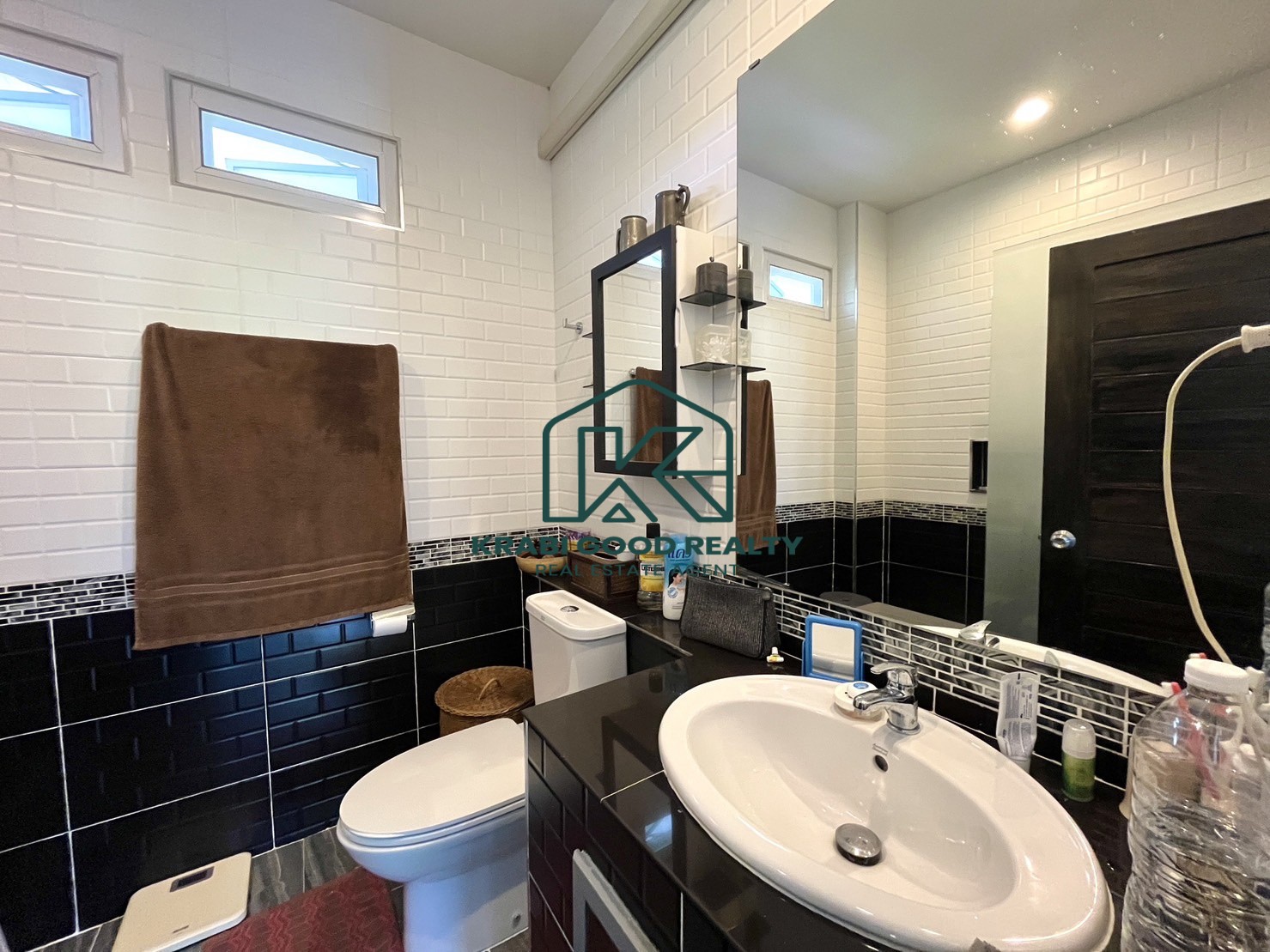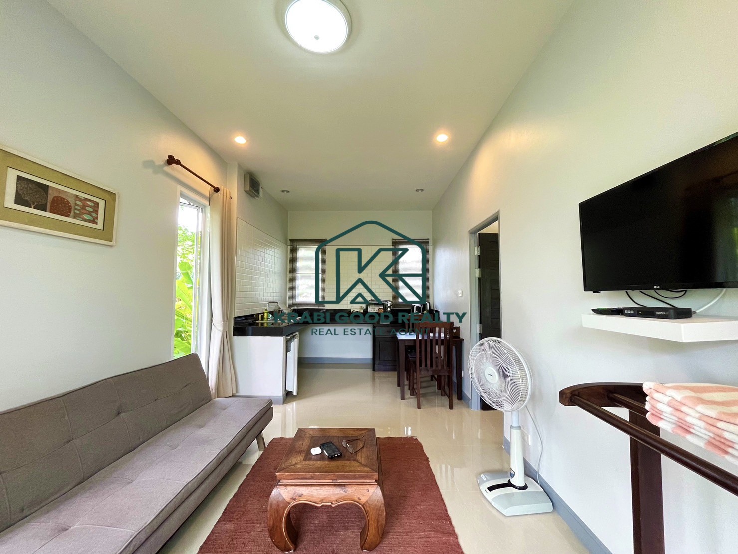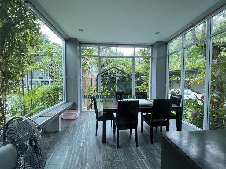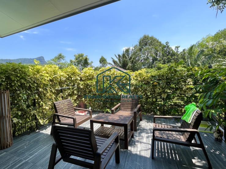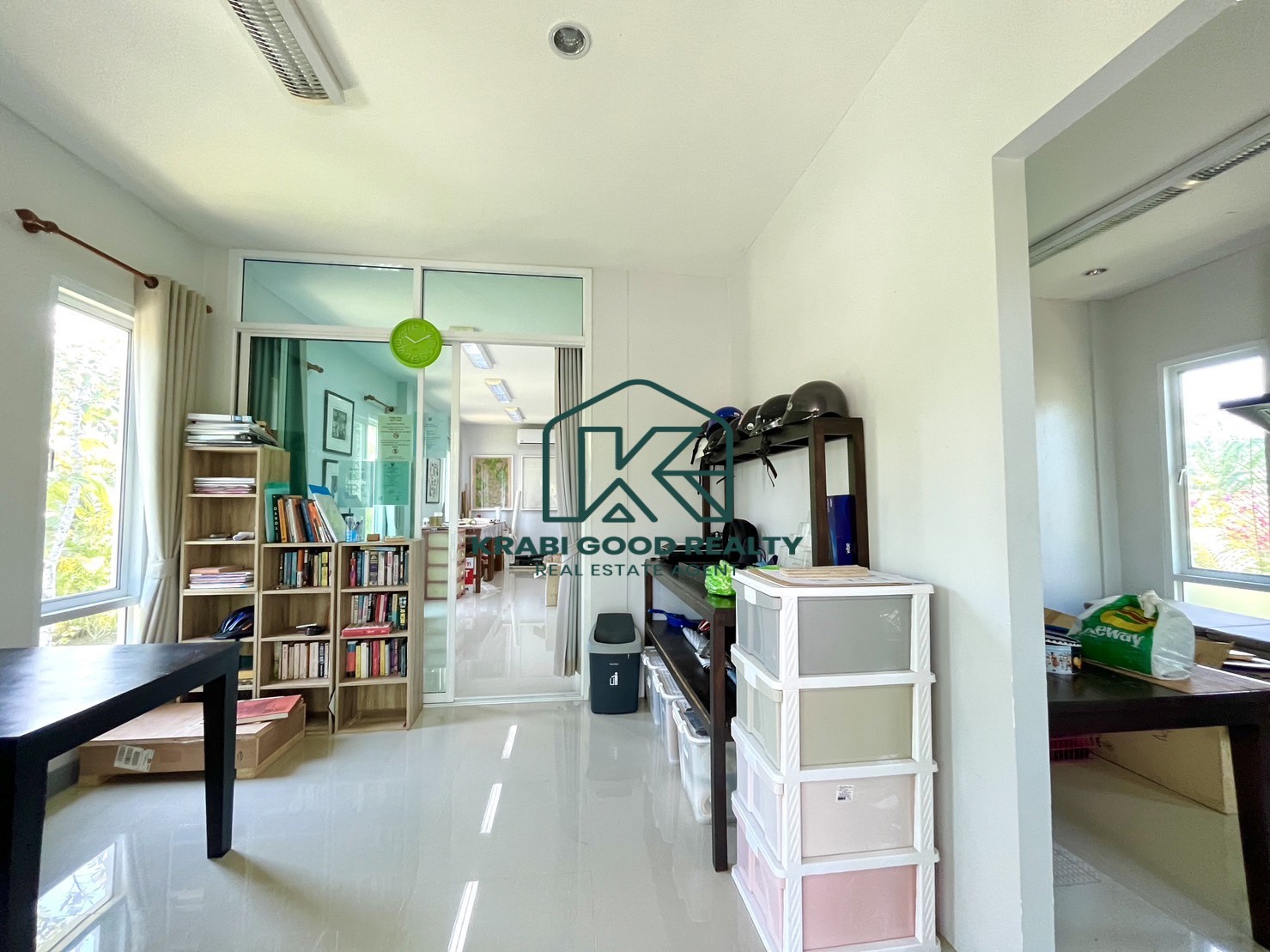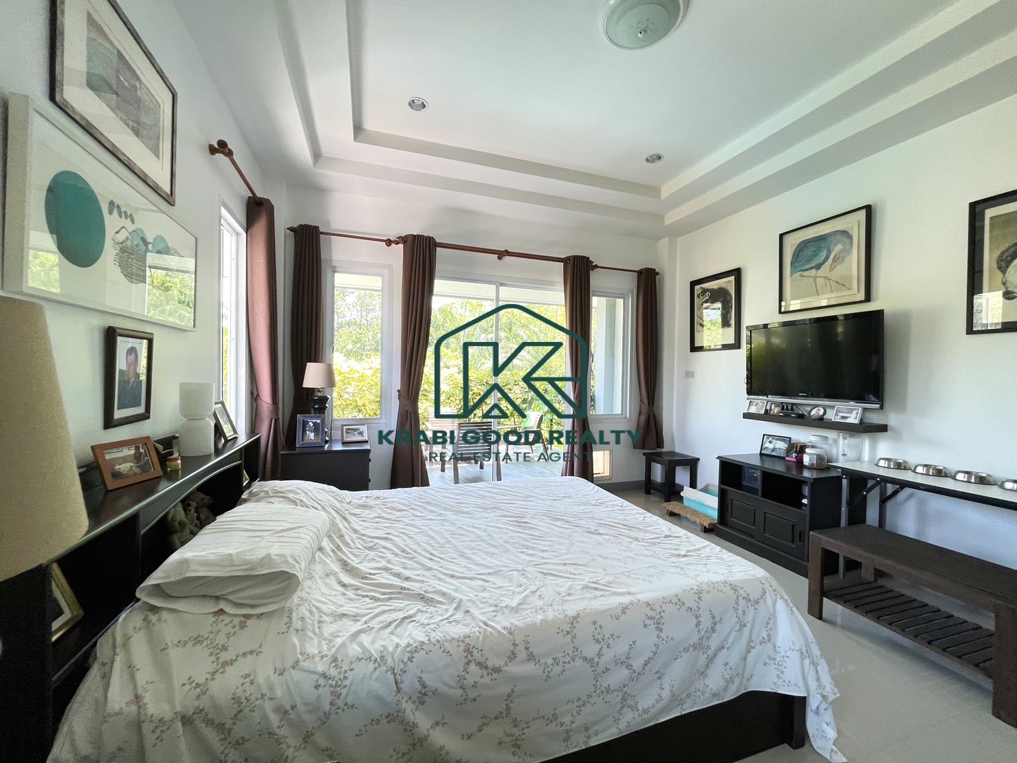 The accommodations are villas and bungalows. Business for sale located in the Aonang area and close to Klong Muang Beach in only 5 minutes. Three-bedroom villa and 5-Bungalow connecting with a communal salt swimming pool for both children and adults size of 5.2*15.6 meters. There is a sunbathing area that feels like being by the sea. Overlooking the view of coconut trees and surrounded by many trees that make the atmosphere shady. Suitable for investors who want to own a beautiful and private property. This property features two-story three bedroom villas, five bungalows, and a one-story raised studio.