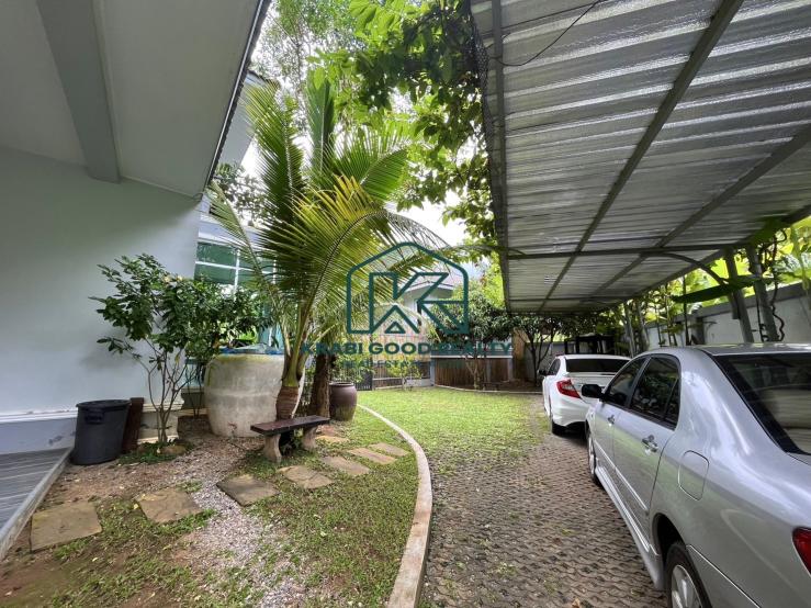 A two-story villa consists of three bedrooms and three baths, with the master bedroom containing an ensuite bathroom, and there is a balcony to sit on and relax. Decorate the garden to make you feel like sitting in the natural atmosphere. The villa will have large living spaces, including the living room, dining room, and western kitchen. Fully furnished furniture, the usable area of a space is 165 sq m