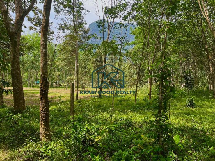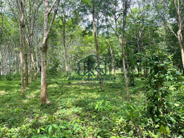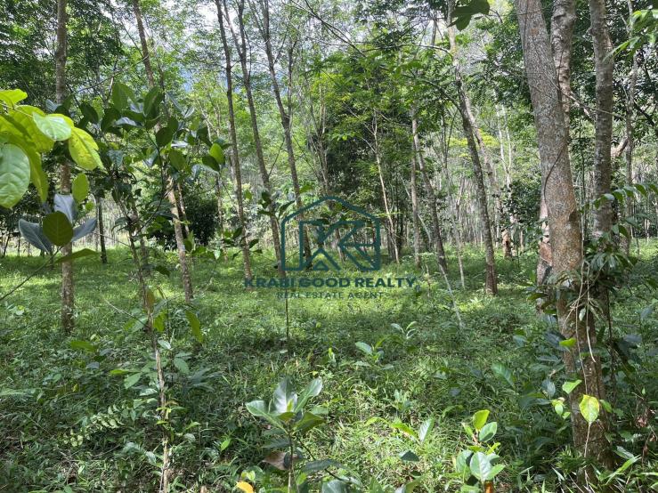 8.5 rai with wonderful mountain scenery for sale in Khao Khram, Krabi It is made up of rubber trees and a variety of fruit trees, including longkong, durian, santol, and jackfruit trees. The weather is cool all year. Make you fall in love with the beauty of the misty sea. Mixed with the morning sunlight that covers the trees, making the atmosphere fresh and green. next to a rural road, Chanote title deeds The plot is approximately 57 meters wide and 268 meters long. Electricity and water are accessible from the land. Located in a convenient area for travel. Close to natural attractions in the local area, suitable for investors who like mountain views. and abundant forests, along with living in the shady environment of an old orchard. Suitable for building houses, resorts, or homestays, integrated agricultural gardens Allocation of land for integrated farming Divided into areas of habitat, vegetation, animal husbandry, and water storage. Live each day as an ordinary day with nature. It is a unique place that attracts tourists. who fall in love with the charming home lifestyle