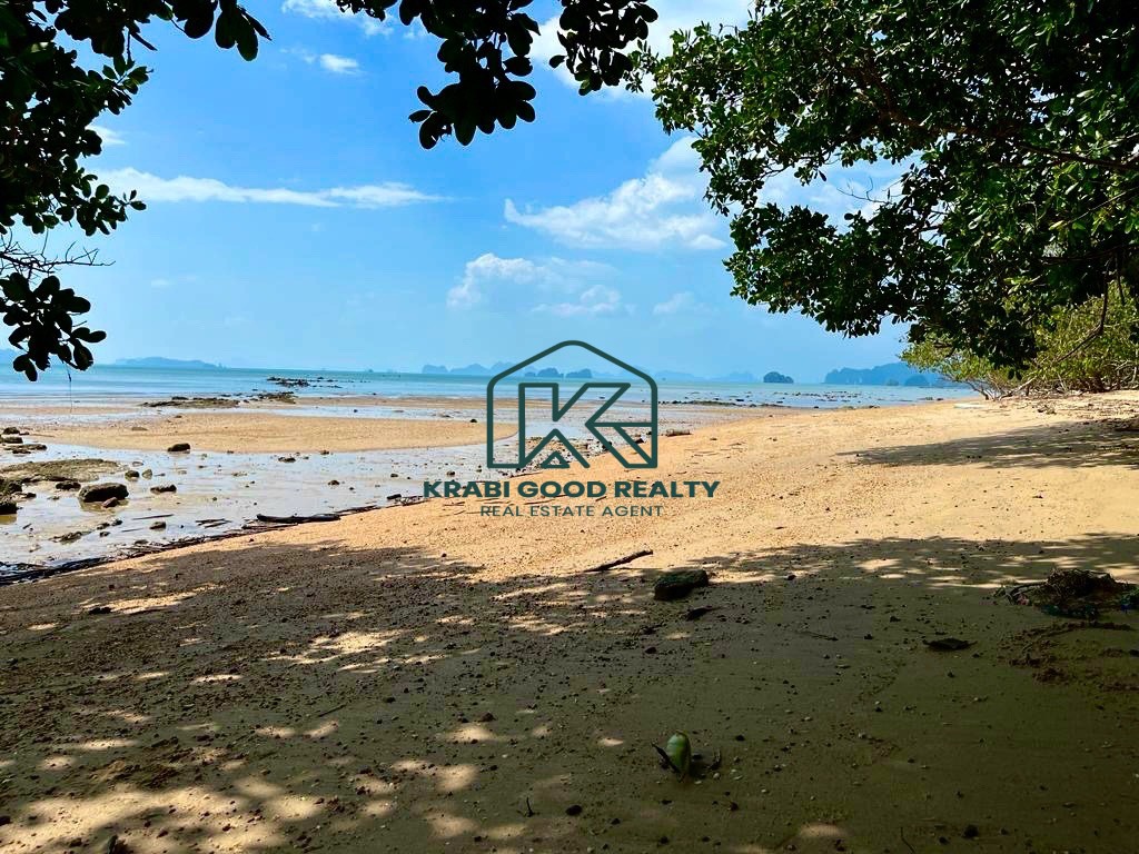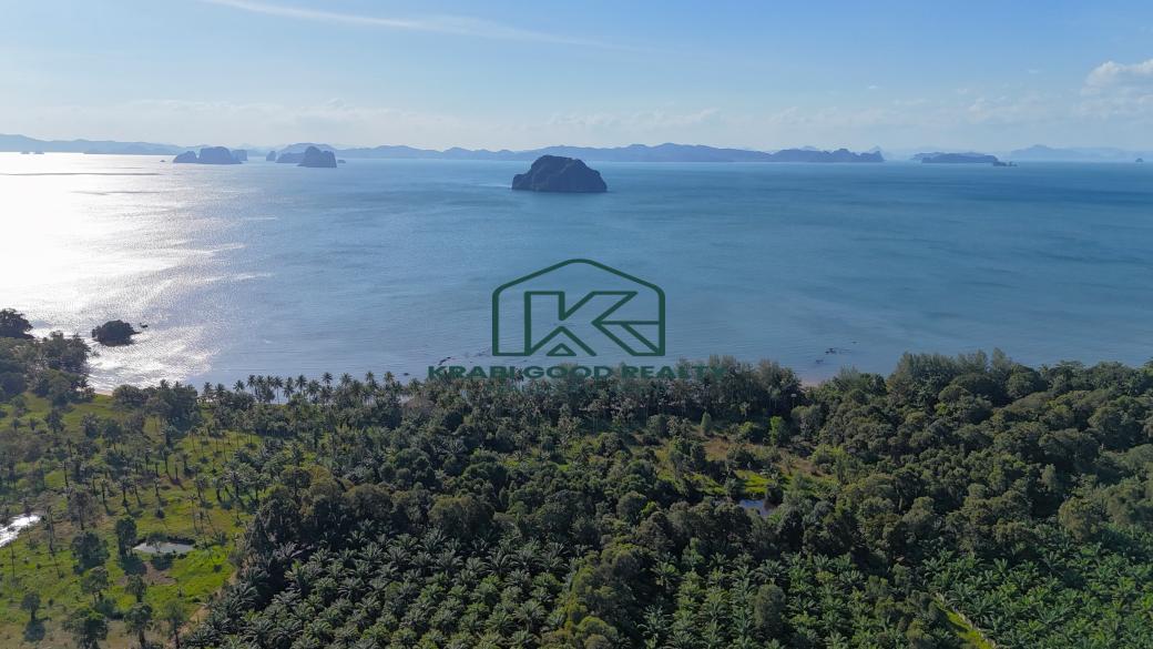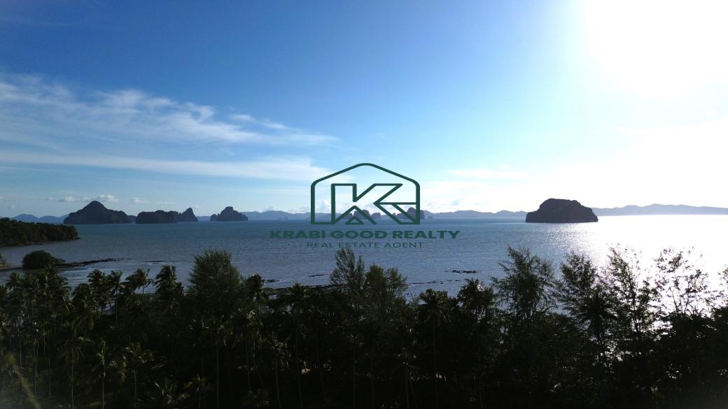 59 rai of beachfront land with panoramic views is for sale in Khao Thong, Krabi. There is a beachfront that is 300 meters long. The land is quiet and has a private beach. Convenient transportation next to the public road, electricity, and water access Title deeds are Chanote title deeds, Nor Sor 3, and P.B.T.5. This is a rare opportunity to buy. This beautiful location is characterized by high-end commercial and residential developments. Suitable for building pool villas, hotels, and luxury resorts or buying them to speculate on profits, The charm of this land is on the west side, overlooking Ko Yao Noi and Ko Nok, and to the south, overlooking Ko Yao Yai, limestone mountains, clear blue waters, and beautiful white sandy beaches.