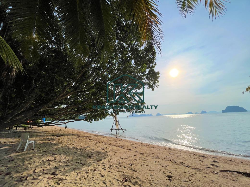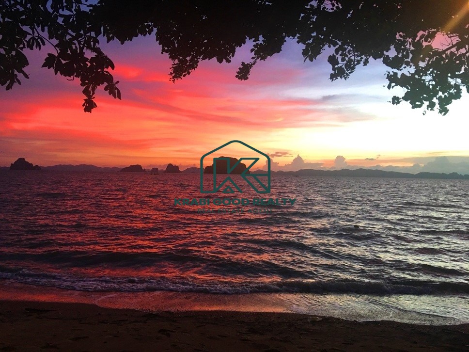 Privated land for sale on the beach with panoramic island views. Located at Khao Thong, Krabi. Available on chanote title deed. The land is situated on the west coast, offering an impressive sunset view. There is a beachfront that is 14 meters long. Convenient transportation next to the public road. And also close to the pier. Electricity and water are accessible. This property is surrounded by many tourist attractions. The special features of this land overlook Ko Yao Noi, Ko Yao Yai, Ko Nok, limestone mountains, clear blue waters, and white sand beaches.