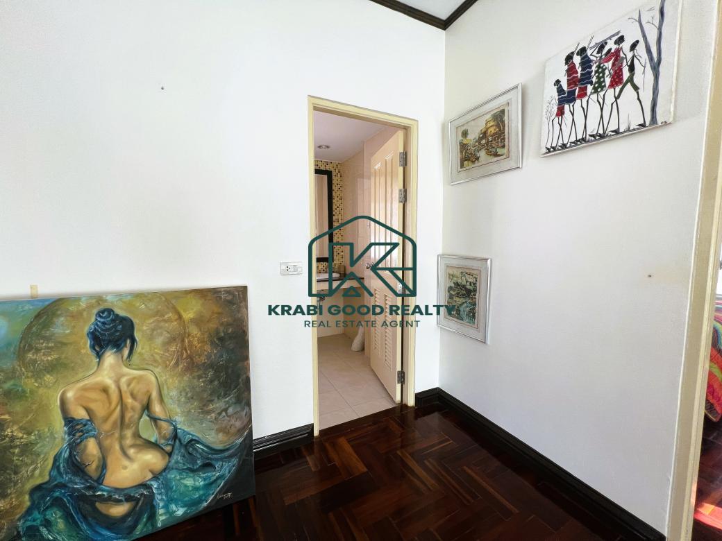 ขายบ้านเดี่ยว 2 ชั้น 3 ห้องนอน โปร่งสบาย วิวภูเขา อ่าวนาง กระบี่ ออกแบบในสไตล์โมเดิร์นหรูหรา บ้านกว้างขวางมาก ขนาดที่ดิน 268 ตารางเมตร ชั้นล่างประกอบด้วยห้องนั่งเล่นและพื้นที่รับประทานอาหาร ห้องครัวเป็นครัวสไตล์ฝรั่ง มีพื้นที่ซักรีด และมีห้องน้ำ 1 ห้อง พื้นที่โล่งยาวจากหน้าบ้านไปหลังบ้าน โปร่งสบาย ชั้นสองประกอบด้วยห้องนอน 3 ห้องและห้องน้ำ 1 ห้อง ซึ่งทุกห้องมีวิวเมือง ภูเขา และสวน วิลล่านี้ขายโดยไม่มีเฟอร์นิเจอร์ ผู้ซื้อสามารถสร้างสไตล์และการออกแบบที่เป็นเอกลักษณ์ของตนเองได้
