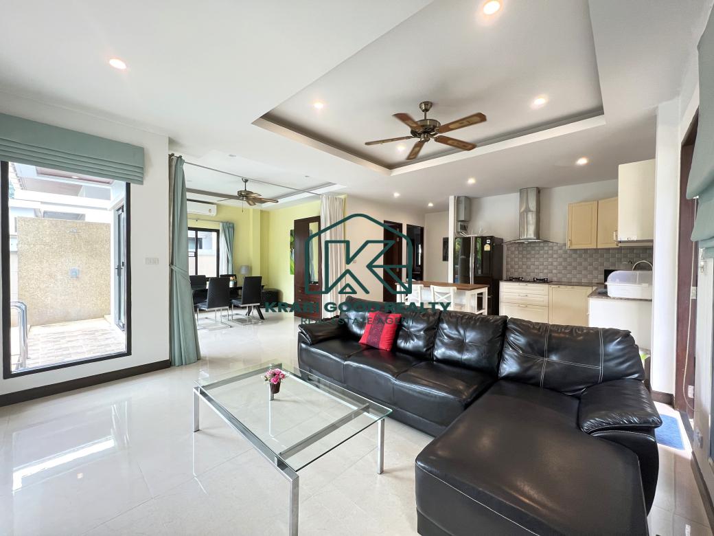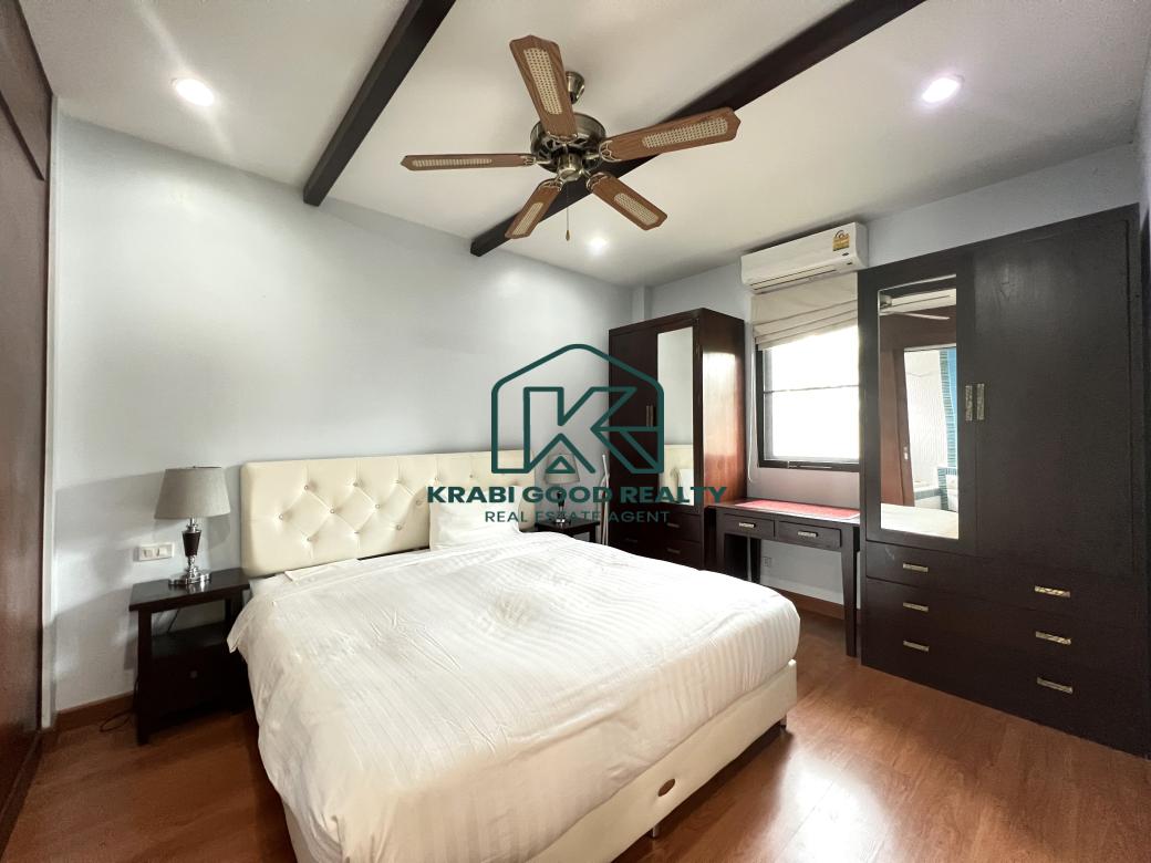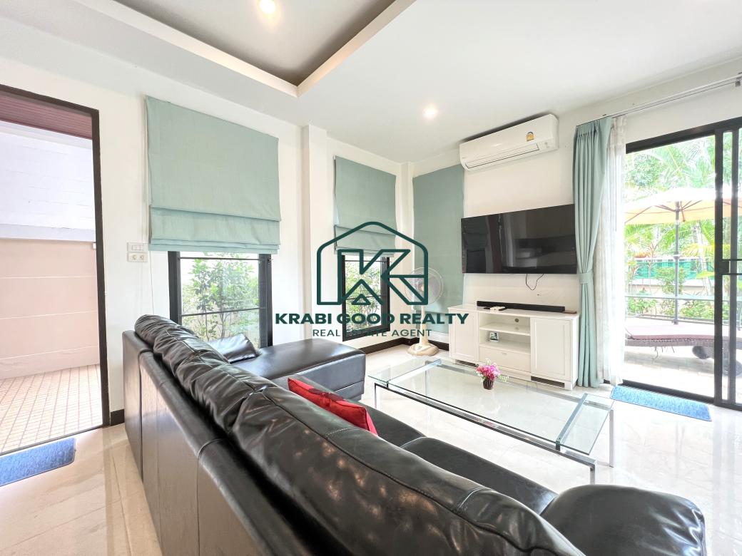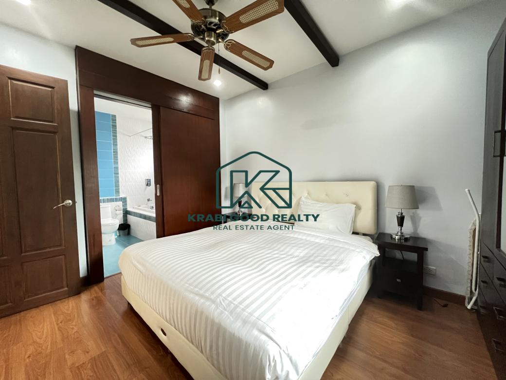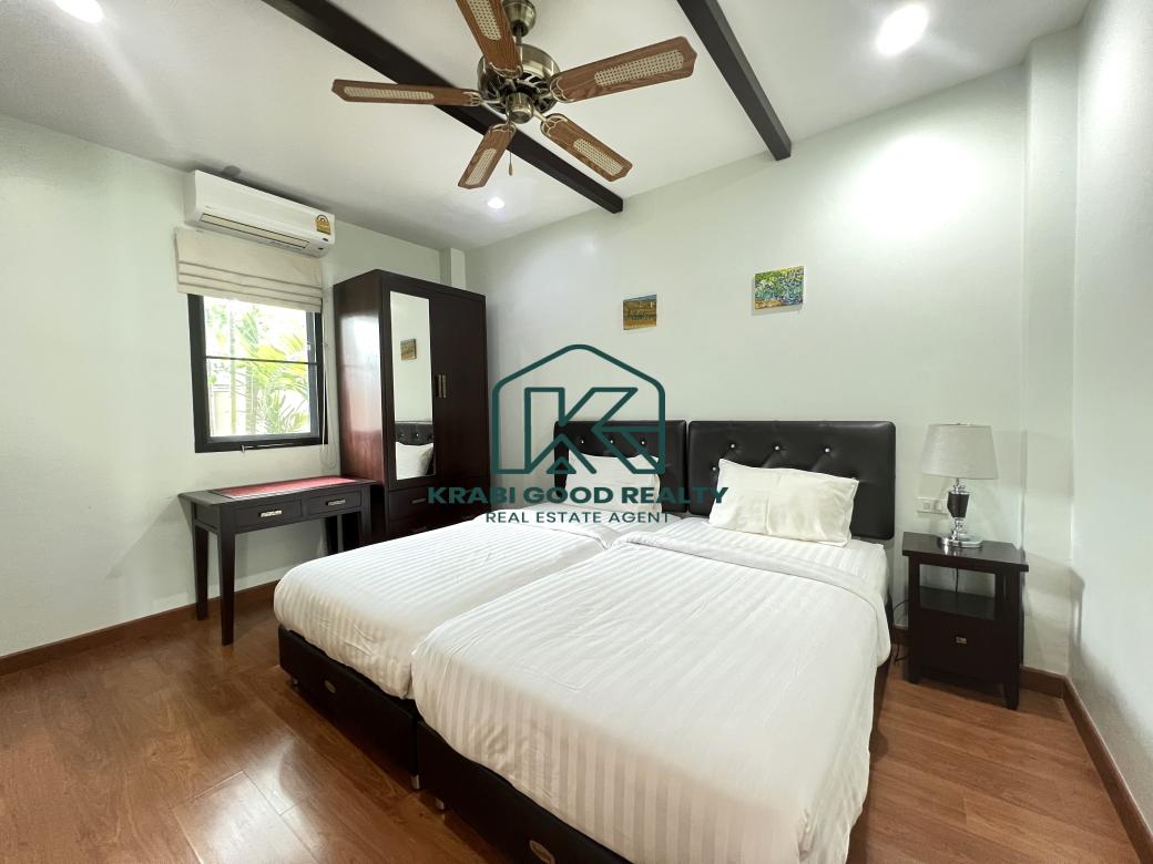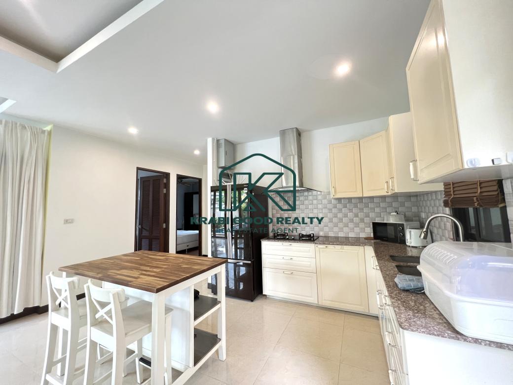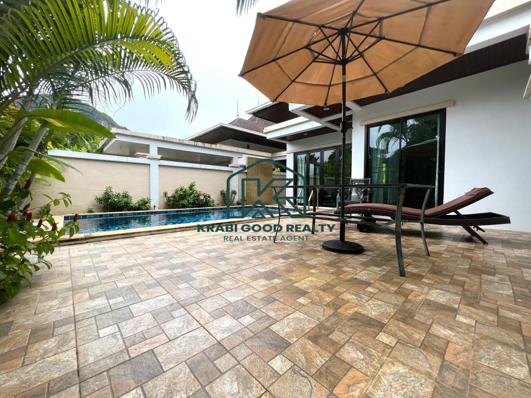 ขายพูลวิลล่า 2 ห้องนอนแสนสบายพร้อมวิวภูเขาในอ่าวนาง กระบี่ ออกแบบมาเพื่อมอบความสะดวกสบาย สิ่งอำนวยความสะดวกที่ทันสมัย และวิวภูเขาที่สวยงาม ตั้งอยู่ห่างจากหาดอ่าวนางเพียง 10 นาที มีทั้งความสะดวกสบายและความเงียบสงบ ห้องครัวมีการตกแต่งอย่างมีสไตล์พร้อมเครื่องใช้คุณภาพ น้ำกรอง และที่เตรียมอาหารซึ่งเหมาะสำหรับผู้เข้าพักเพื่อความบันเทิง พื้นที่รับประทานอาหารมองเห็นทิวทัศน์อันงดงามของสระว่ายน้ำขนาด 6 เมตร พร้อมประตูพับกว้างที่ให้ลมเขตร้อนทั่วทั้งบ้าน พื้นที่นั่งเล่นกว้างขวางและติดตั้งสมาร์ททีวี 48 นิ้ว สเตอริโอบลูทูธ เครื่องปรับอากาศ และพัดลมเพดานเพื่อความสะดวกสบาย ห้องนอนทั้งสองห้องนอนตกแต่งด้วยเตียงขนาดคิงไซส์ที่มีคุณภาพและเฟอร์นิเจอร์ไม้สักสมัยใหม่สั่งทำพิเศษ ให้ความหรูหราและประโยชน์ใช้สอย ห้องน้ำ ฝักบัวแบบสายฝนที่หรูหรา กระเบื้องมีสไตล์ และอุปกรณ์คุณภาพสูงช่วยเสริมห้องน้ำให้บรรยากาศที่สดใสและสดชื่น