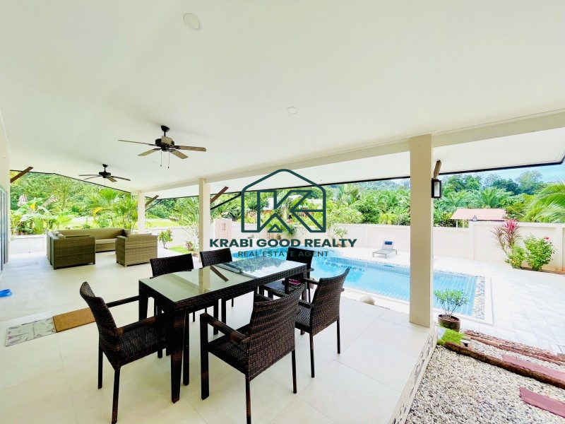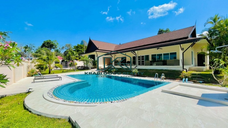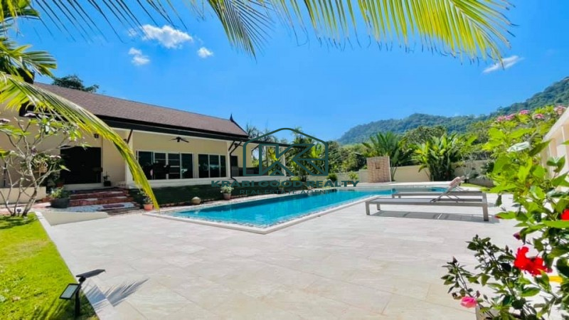 นำเสนอวิลล่า 3 ห้องนอนพร้อมสระว่ายน้ำและวิวภูเขาที่ตั้งอยู่ในจังหวัดกระบี่ ใกล้โรงเรียนนานาชาติกระบี่ เป็นบ้านที่มีระเบียงขนาดใหญ่ที่เปิดให้เห็นวิวภูเขาและสระว่ายน้ำที่น่าทึ่ง