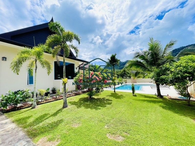Presenting a 3-bedroom pool villa with a mountain view in Nong Thale, Krabi, conveniently situated near Krabi International School. This well-appointed residence features a spacious terrace that opens to a captivating mountain-view pool.
