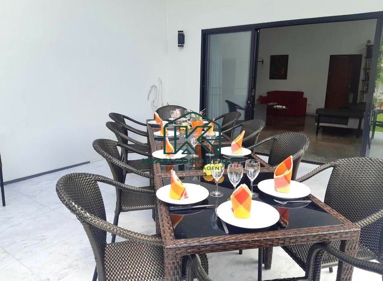 หัวใจของที่พักแห่งนี้อยู่ที่พื้นที่ส่วนกลางอันน่าดึงดูดใจ ซึ่งมีห้องครัว 2 ห้อง พื้นที่นั่งเล่นหลายห้อง และที่เก็บของกว้างขวาง ภายนอกสระคลอรีนแวววาวขนาด 4.5x12 เมตร กวักมือเรียก มาพร้อมอ่างจากุซซี่เพื่อความผ่อนคลายและพื้นที่พักผ่อนใต้แสงแดด ไม่ว่าคุณจะใฝ่ฝันที่จะเป็นเจ้าภาพเลี้ยงอาหารค่ำกลางแจ้งใต้แสงดาว หรือจินตนาการถึงการเปลี่ยนพื้นที่นี้ให้เป็นร้านอาหารหรือธุรกิจร้านกาแฟที่เจริญรุ่งเรือง ความเป็นไปได้ไม่มีที่สิ้นสุด