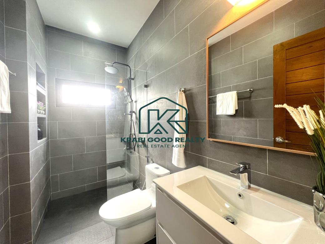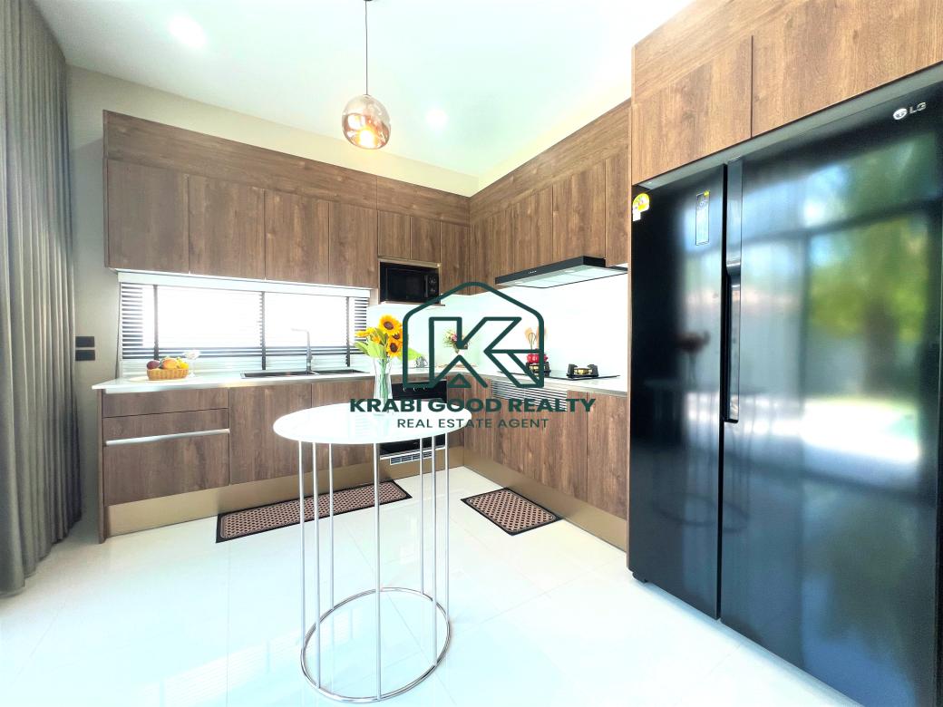วิลล่าพร้อมสระว่ายน้ำขนาด 2 ห้องนอน 2 ห้องน้ำ และสวนกว้างขวางสำหรับขายในอ่าวนาง กระบี่ วิลล่ามี 2 ห้องนอนพร้อมชุดเครื่องนอนและเครื่องปรับอากาศ การตกแต่งผสมผสานความทันสมัยและความหรูหรา วิลล่ามีสระว่ายน้ำเกลือขนาด 4x7 เมตร ลึก 1.30 เมตร ห้องครัวสไตล์ยุโรปพร้อมไมโครเวฟ เตาอบ และพื้นที่ทำอาหาร โต๊ะอาหารหรูหราพร้อมที่นั่ง 4 ที่นั่ง ห้องนั่งเล่นขนาดใหญ่มีเฟอร์นิเจอร์พร้อมวิวสระว่ายน้ำ มีบันไดวนขึ้นสู่ดาดฟ้าที่มองเห็นวิวธรรมชาติที่เงียบสงบและภูเขาที่สวยงาม 360 องศา เหมาะสำหรับการพักผ่อนและจัดงานเลี้ยง พื้นที่กลางแจ้งมีสนามหญ้ากว้างขวางพร้อมต้นไม้ที่ปลูกไว้อย่างสวยงาม ที่สำคัญพื้นที่กลางแจ้งมีเคาน์เตอร์อ่างล้างจานสำหรับการปิกนิก บาร์บีคิว และดินเนอร์ที่น่าประทับใจ พื้นที่จอดรถที่มีหลังคาสามารถรองรับรถได้ถึง 2 คัน เหมาะสำหรับกิจกรรมครอบครัวต่างๆ และเป็นมิตรกับสัตว์เลี้ยง อย่าพลาดโอกาสในการเป็นเจ้าของส่วนหนึ่งของสวรรค์ในอ่าวนาง เหมาะสำหรับครอบครัวเล็กๆ ที่อบอุ่น ครอบครัวย้ายถิ่นฐาน และการลงทุนที่ดีสำหรับธุรกิจให้เช่า