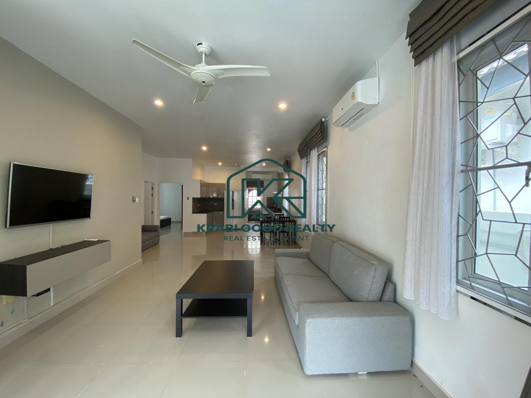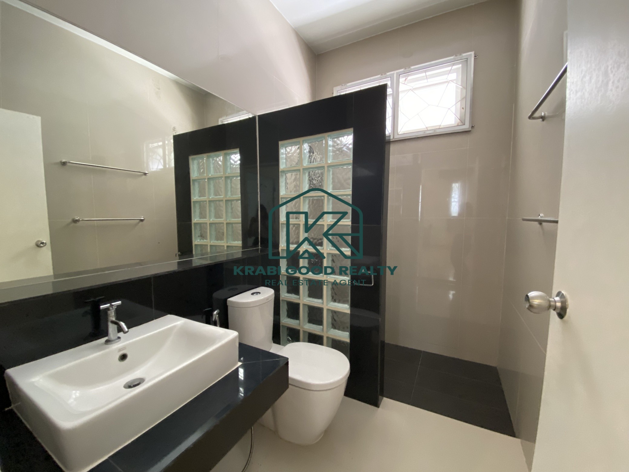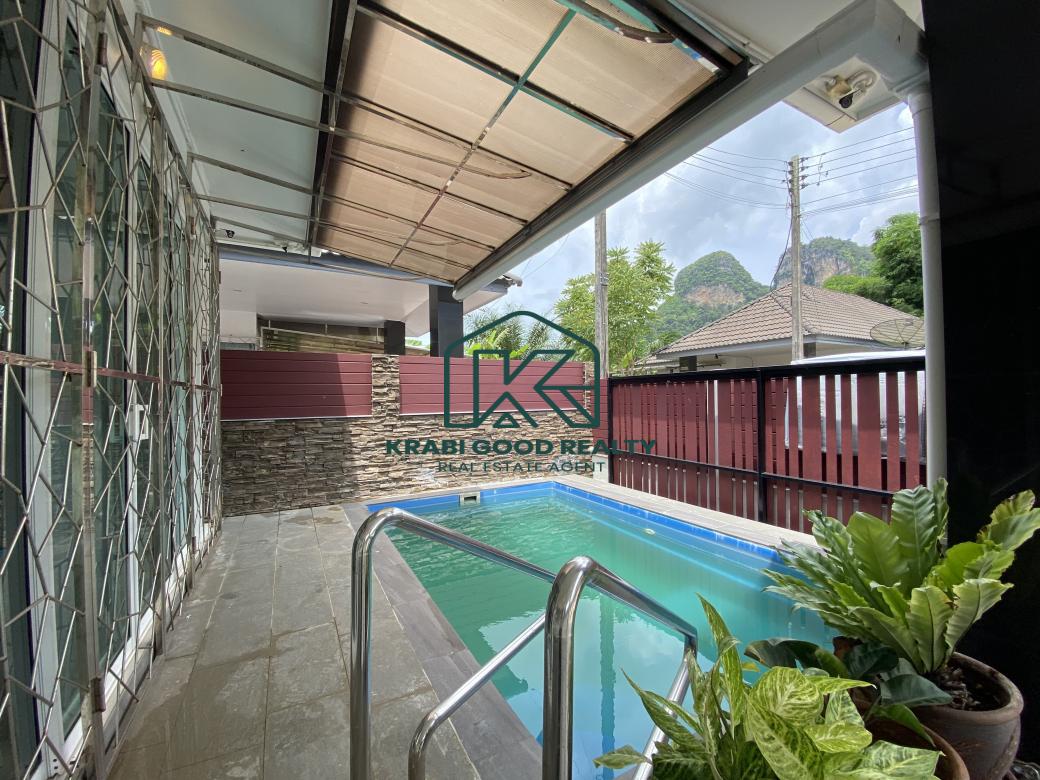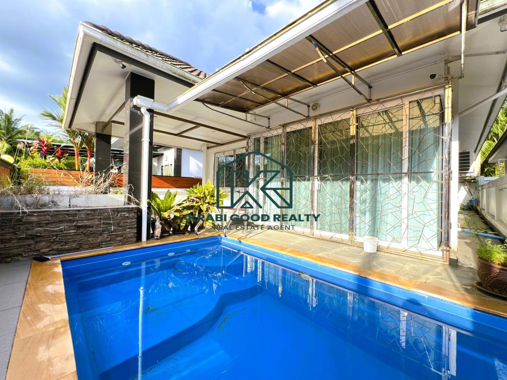 A house for sale with a private swimming pool, nestled in a serene location with mountain views in Ao Nang, Krabi. This residence offers a harmonious blend of privacy, tranquility, and comfortable living spaces. Its proximity to nature in the Ao Nang area tends to attract those seeking a peaceful residential environment. Furthermore, the property's versatility in its usage (as a vacation home, retirement residence, or primary dwelling) caters to a diverse range of potential buyers. There are four ACs in total. The main bedroom has a TV. All doors and windows have fly-screens. Windows and doors have curtains or folding blinds, plus nets. All windows/doors have decorative security grills. All rooms have ceiling fans. Additionally, there are two water tanks and pumps.
