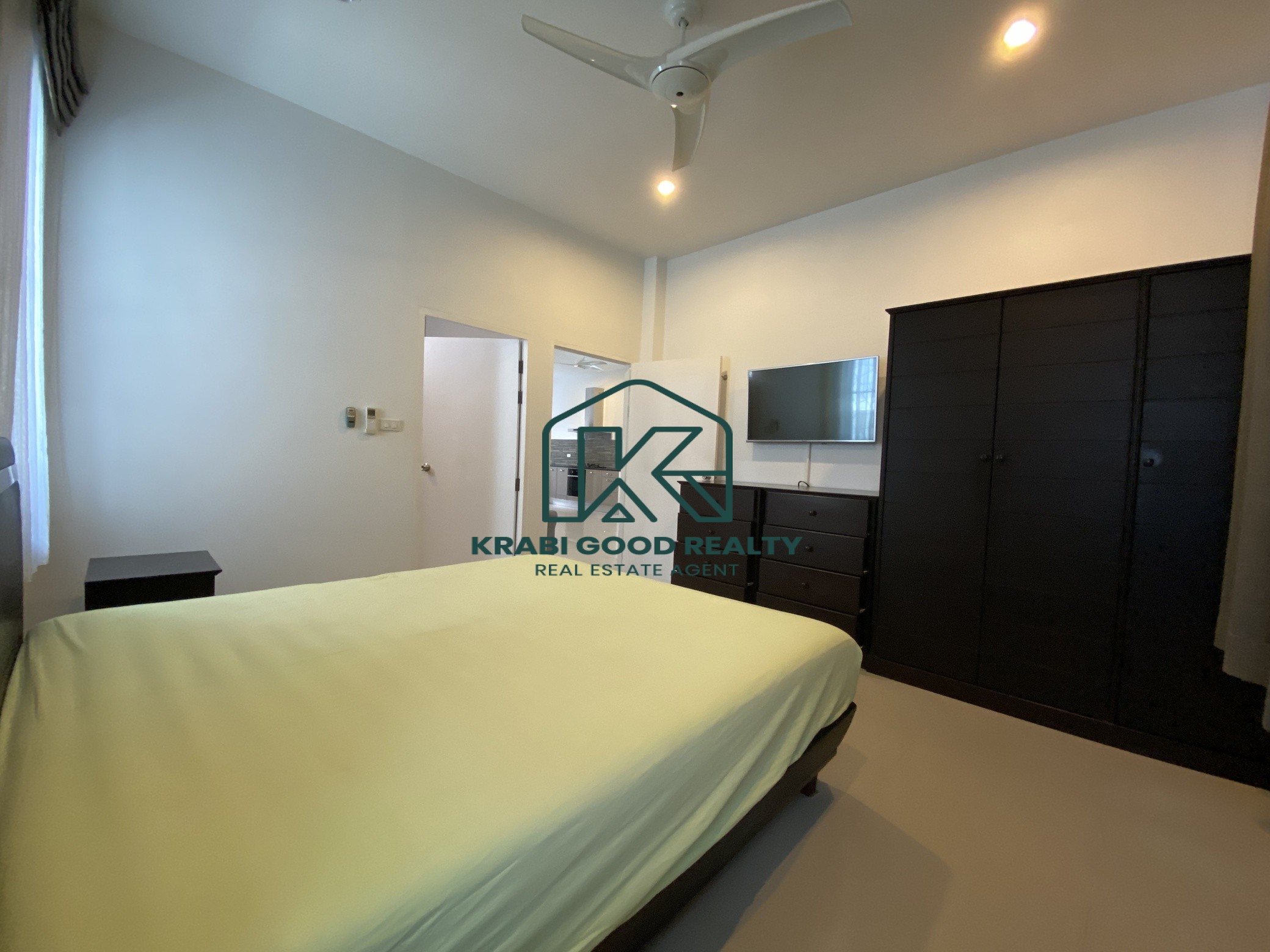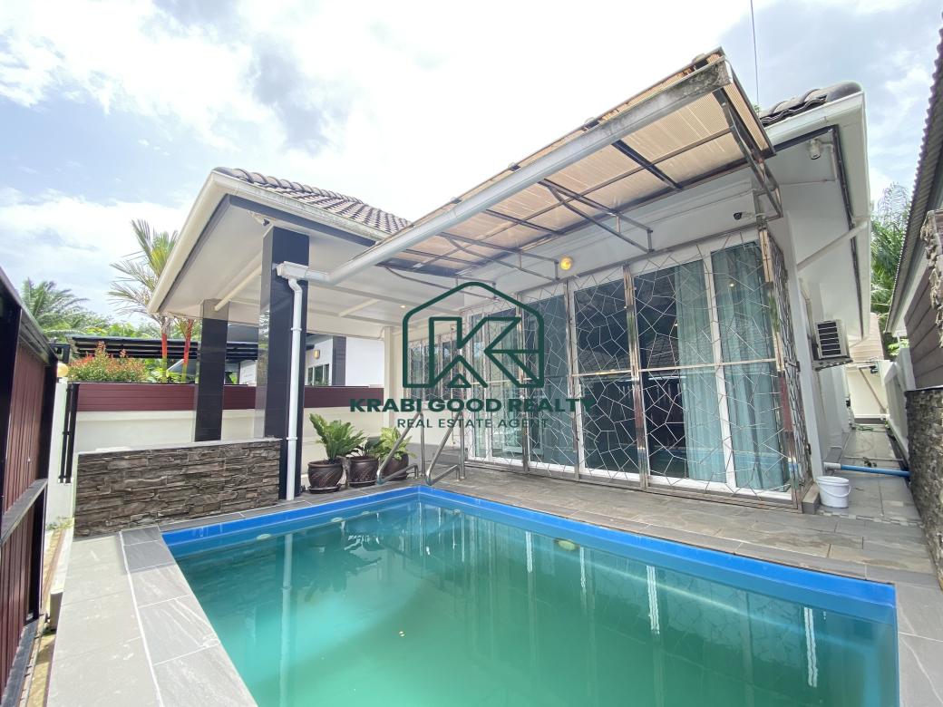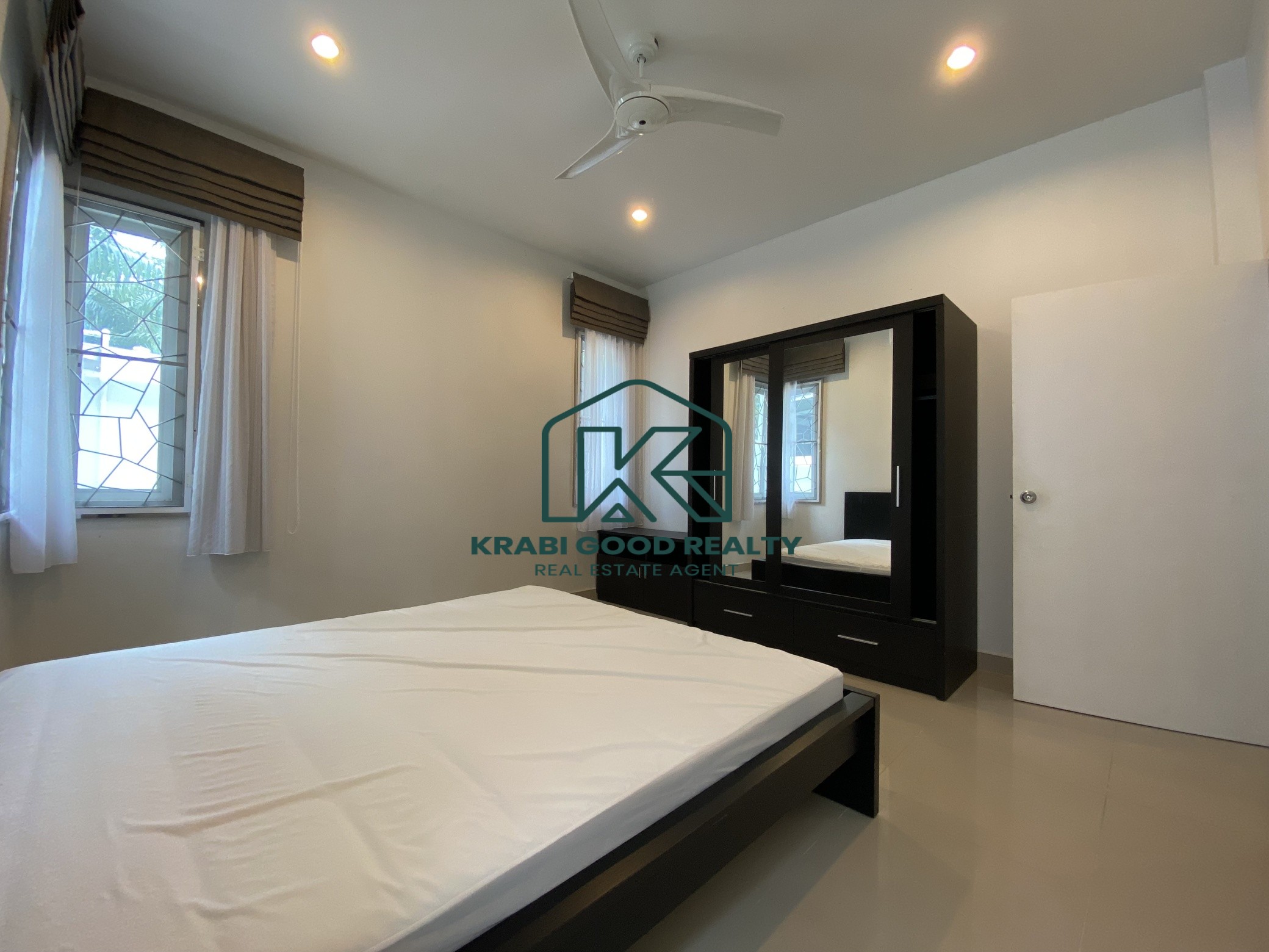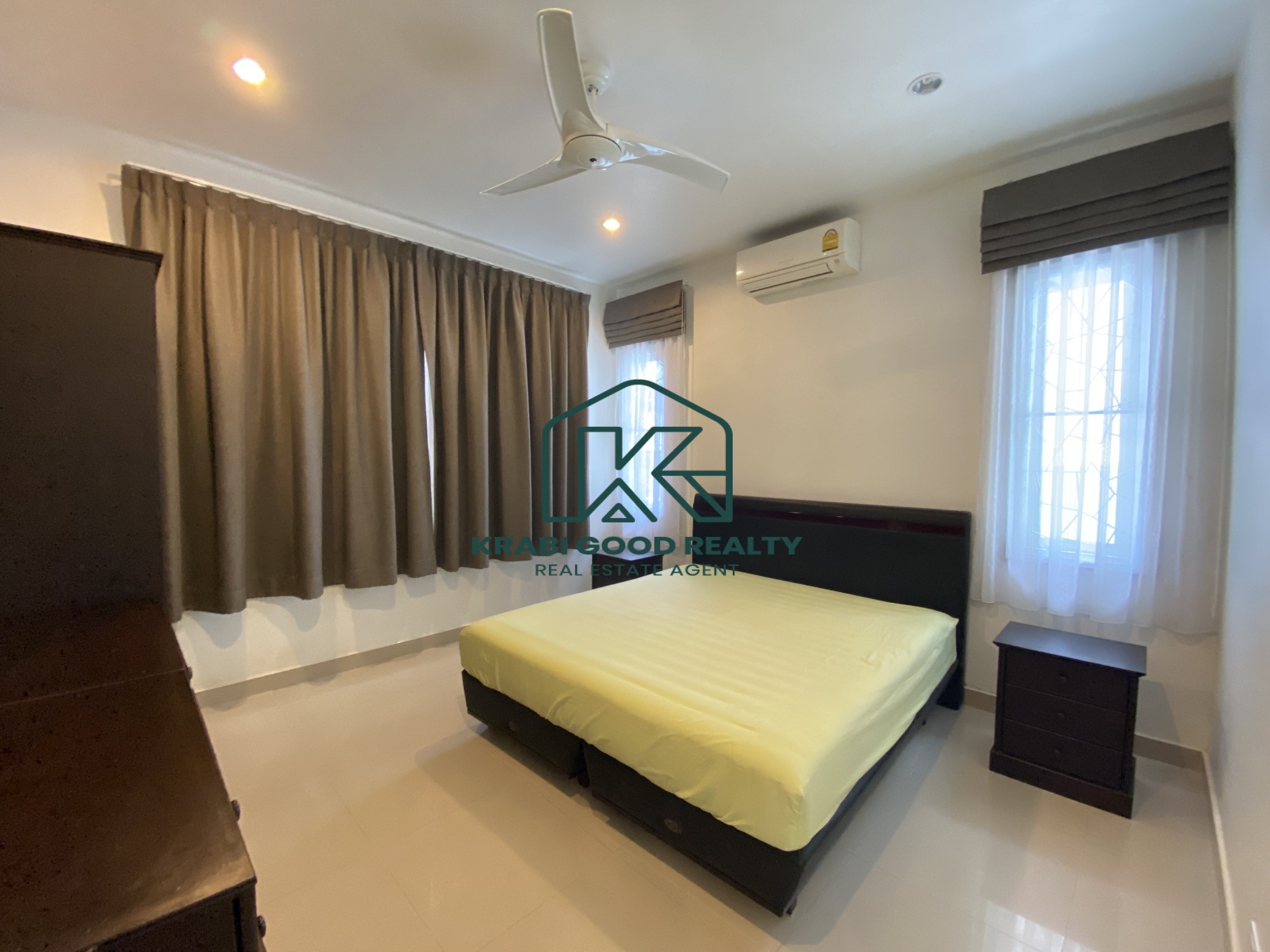 บ้านพร้อมสระว่ายน้ำส่วนตัว ตั้งอยู่ในสถานที่เงียบสงบ พร้อมวิวภูเขา ในอ่าวนาง กระบี่ ที่อยู่อาศัยแห่งนี้นำเสนอการผสมผสานที่ลงตัวระหว่างความเป็นส่วนตัว ความเงียบสงบ และพื้นที่อยู่อาศัยที่สะดวกสบาย ความใกล้ชิดกับธรรมชาติในบริเวณอ่าวนางมีแนวโน้มที่จะดึงดูดผู้ที่มองหาสภาพแวดล้อมที่อยู่อาศัยอันเงียบสงบ นอกจากนี้ ความคล่องตัวในการใช้งานของทรัพย์สิน (เป็นบ้านพักตากอากาศ บ้านพักคนชรา หรือที่อยู่อาศัยหลัก) ยังรองรับผู้ซื้อที่มีศักยภาพหลากหลายกลุ่ม มีแอร์ทั้งหมดสี่เครื่อง ห้องนอนหลักมีทีวี ประตูและหน้าต่างทั้งหมดมีมุ้งลวด หน้าต่างและประตูมีผ้าม่านหรือมู่ลี่แบบพับพร้อมมุ้ง หน้าต่าง/ประตูทั้งหมดมีตะแกรงรักษาความปลอดภัยที่ตกแต่งอย่างดี ทุกห้องมีพัดลมเพดาน นอกจากนี้ยังมีถังเก็บน้ำและปั๊มน้ำอีก 2 อัน