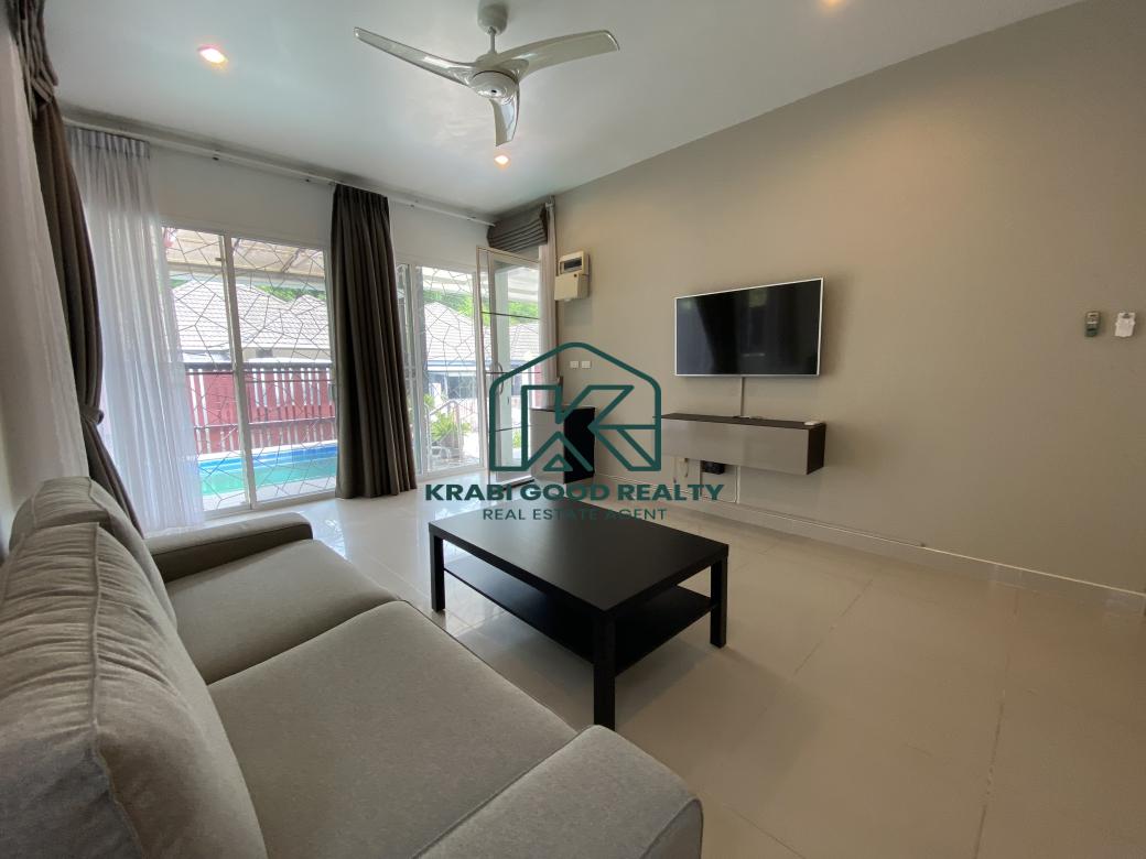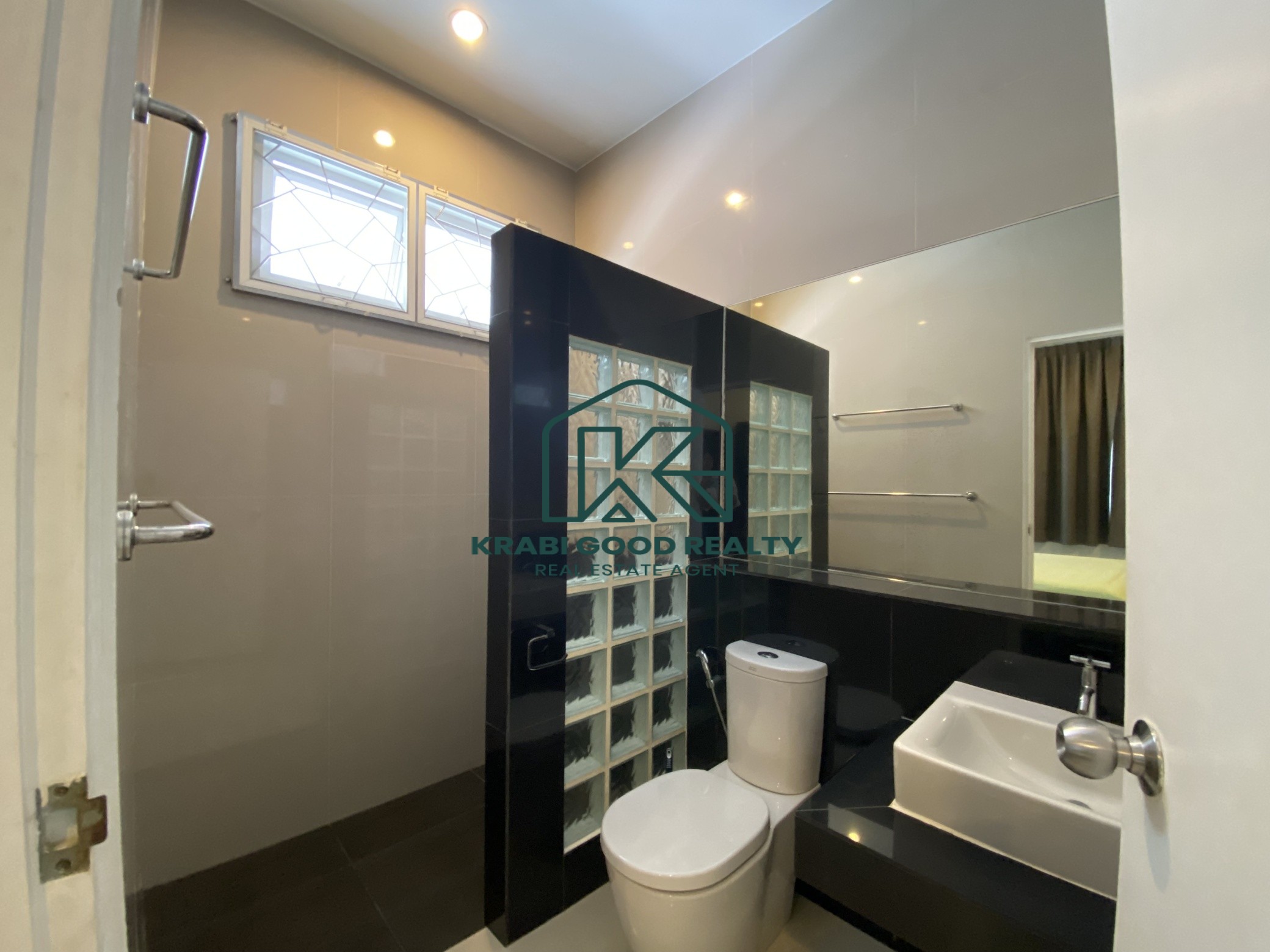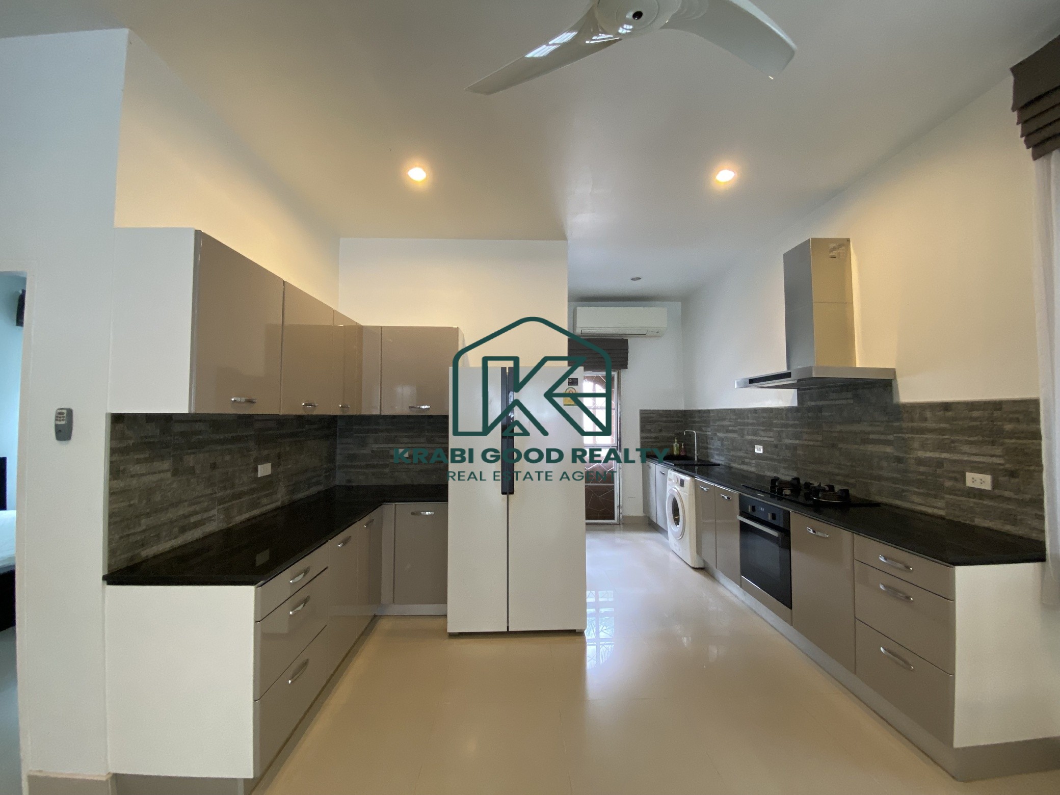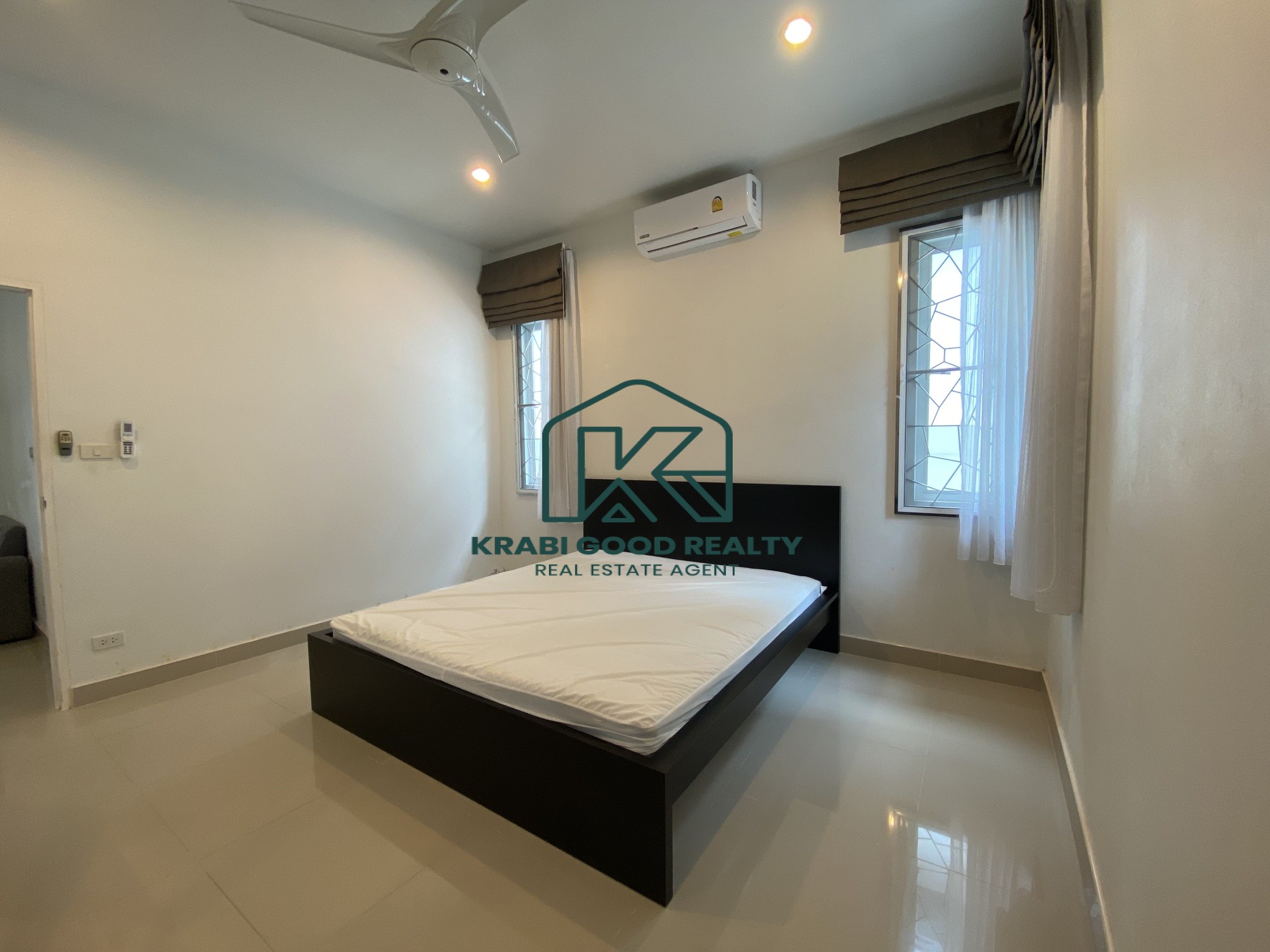 บ้านพร้อมสระว่ายน้ำส่วนตัว ตั้งอยู่ในสถานที่เงียบสงบ พร้อมวิวภูเขา ในอ่าวนาง กระบี่ ที่อยู่อาศัยแห่งนี้นำเสนอการผสมผสานที่ลงตัวระหว่างความเป็นส่วนตัว ความเงียบสงบ และพื้นที่อยู่อาศัยที่สะดวกสบาย ความใกล้ชิดกับธรรมชาติในบริเวณอ่าวนางมีแนวโน้มที่จะดึงดูดผู้ที่มองหาสภาพแวดล้อมที่อยู่อาศัยอันเงียบสงบ นอกจากนี้ ความคล่องตัวในการใช้งานของทรัพย์สิน (เป็นบ้านพักตากอากาศ บ้านพักคนชรา หรือที่อยู่อาศัยหลัก) ยังรองรับผู้ซื้อที่มีศักยภาพหลากหลายกลุ่ม มีแอร์ทั้งหมดสี่เครื่อง ห้องนอนหลักมีทีวี ประตูและหน้าต่างทั้งหมดมีมุ้งลวด หน้าต่างและประตูมีผ้าม่านหรือมู่ลี่แบบพับพร้อมมุ้ง หน้าต่าง/ประตูทั้งหมดมีตะแกรงรักษาความปลอดภัยที่ตกแต่งอย่างดี ทุกห้องมีพัดลมเพดาน นอกจากนี้ยังมีถังเก็บน้ำและปั๊มน้ำอีก 2 อัน