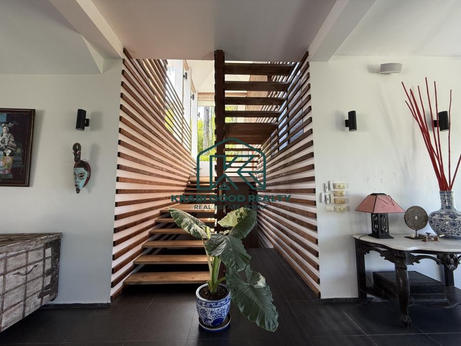 วิลล่าหรูที่ซ่อนตัวอย่างงดงามและเงียบสงบแห่งนี้ตั้งอยู่ในพื้นที่ส่วนตัว พร้อมทิวทัศน์ทะเลที่สวยงาม ตัววิลล่าหลักประกอบด้วยห้องนอนขนาดกว้างขวาง ห้องทำงาน และพื้นที่รับประทานอาหารและครัวแบบเปิดที่ออกแบบมาเพื่อความสะดวกสบายและหรูหรา มีสระว่ายน้ำส่วนตัวพร้อมพื้นที่นั่งรอบสระที่มองเห็นวิวทะเลได้อย่างน่าประทับใจ เป็นสถานที่ที่เหมาะสำหรับการพักผ่อน สะพานไม้ที่ทอดยาวจากวิลล่าช่วยเพิ่มความมีเสน่ห์และสร้างการเชื่อมต่อกับธรรมชาติรอบตัว มองลงจากสะพานมีบังกะโลอีก 4 หลัง แต่ละหลังมีห้องส่วนตัวที่มอบความเป็นส่วนตัวให้กับแขกทุกคน และวิลล่านี้ยังพื้นที่กว้างขวาง ซึ่งเหมาะสำหรับการทำกิจกรรมกลางแจ้งและการเดินเล่นอย่างสบาย ๆ