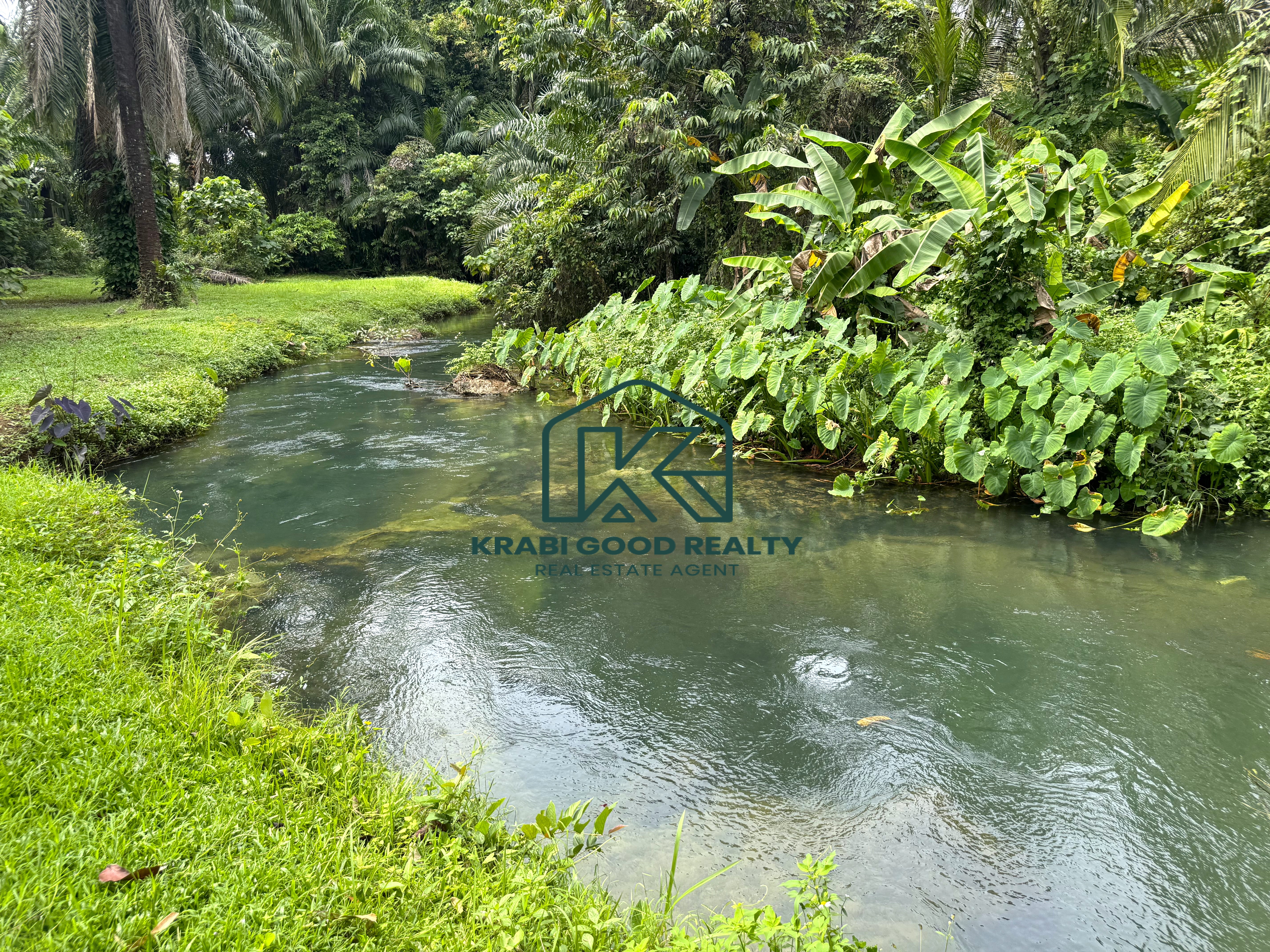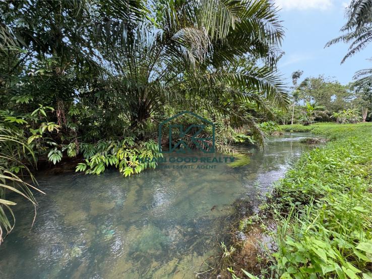 We proudly present this stunning Leasehold land, nearly 2 rai in size, located in the tranquil and nature-rich area of Nong Thale, Krabi. This exceptional plot offers breathtaking views of mountains and a serene stream, creating the perfect setting for those seeking peace and privacy.