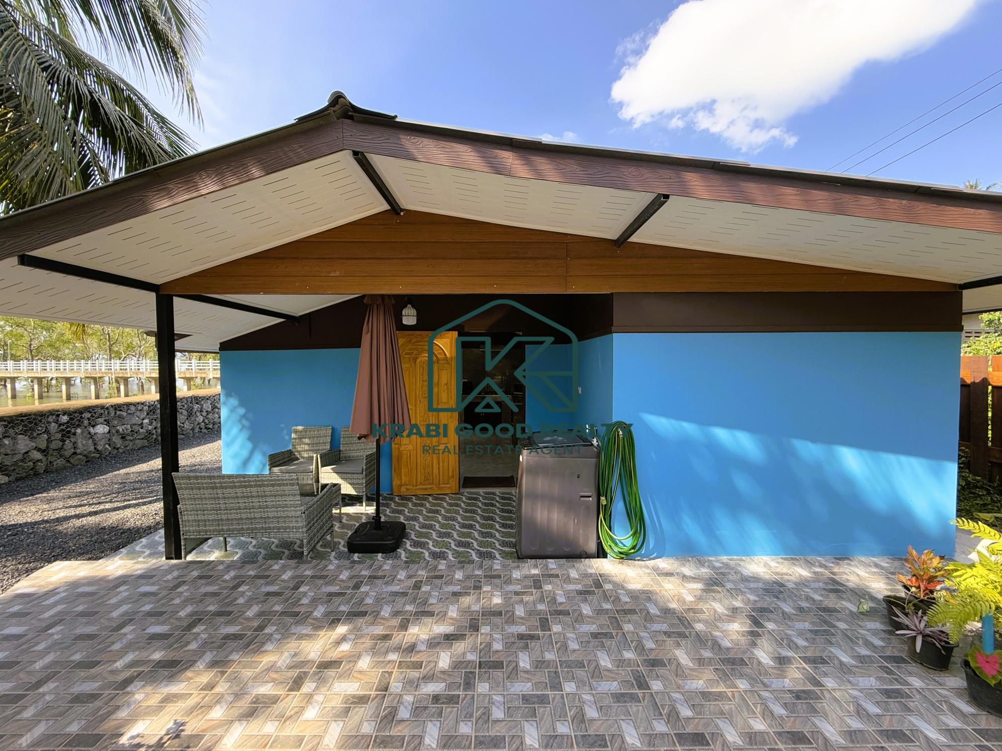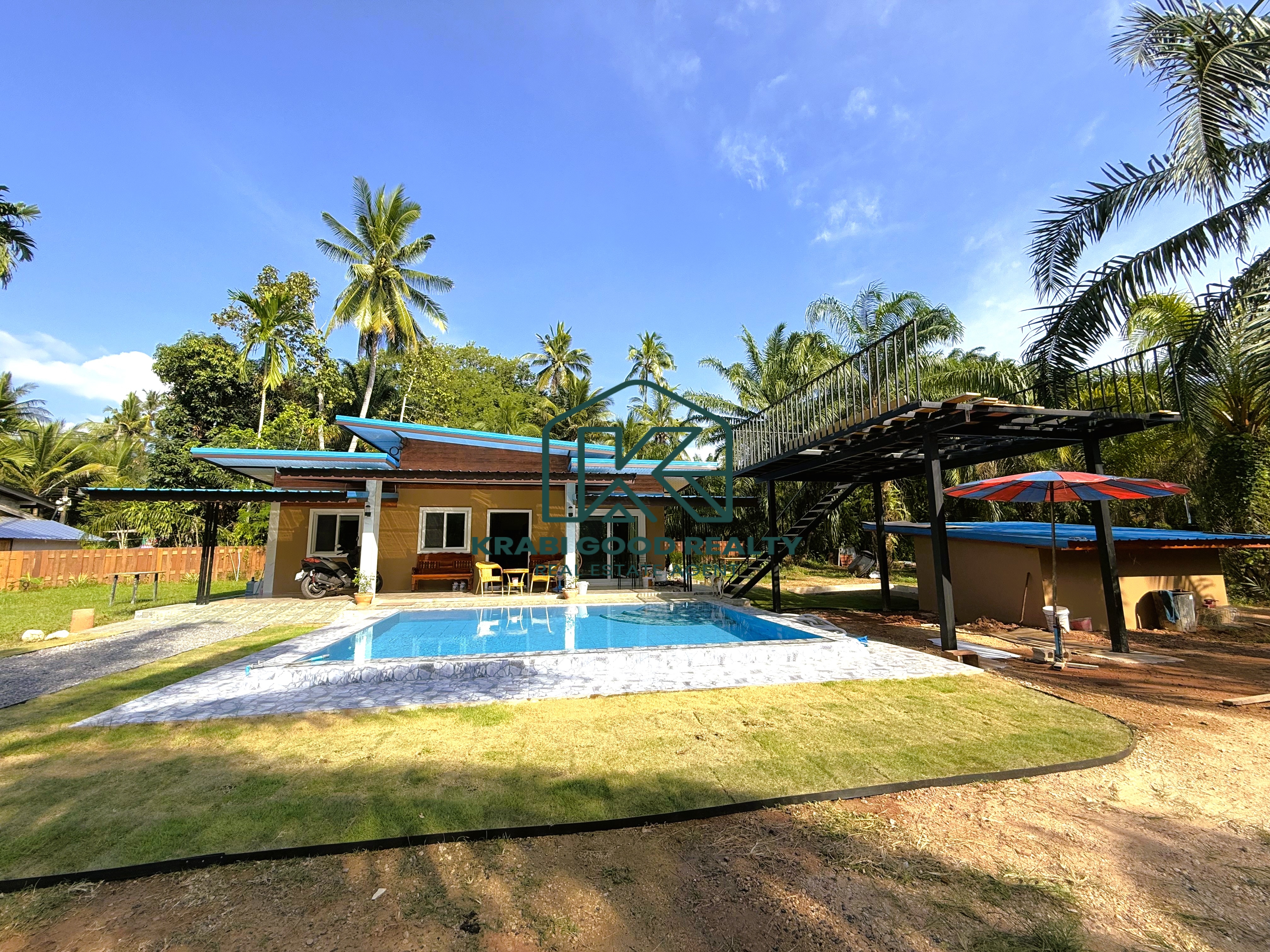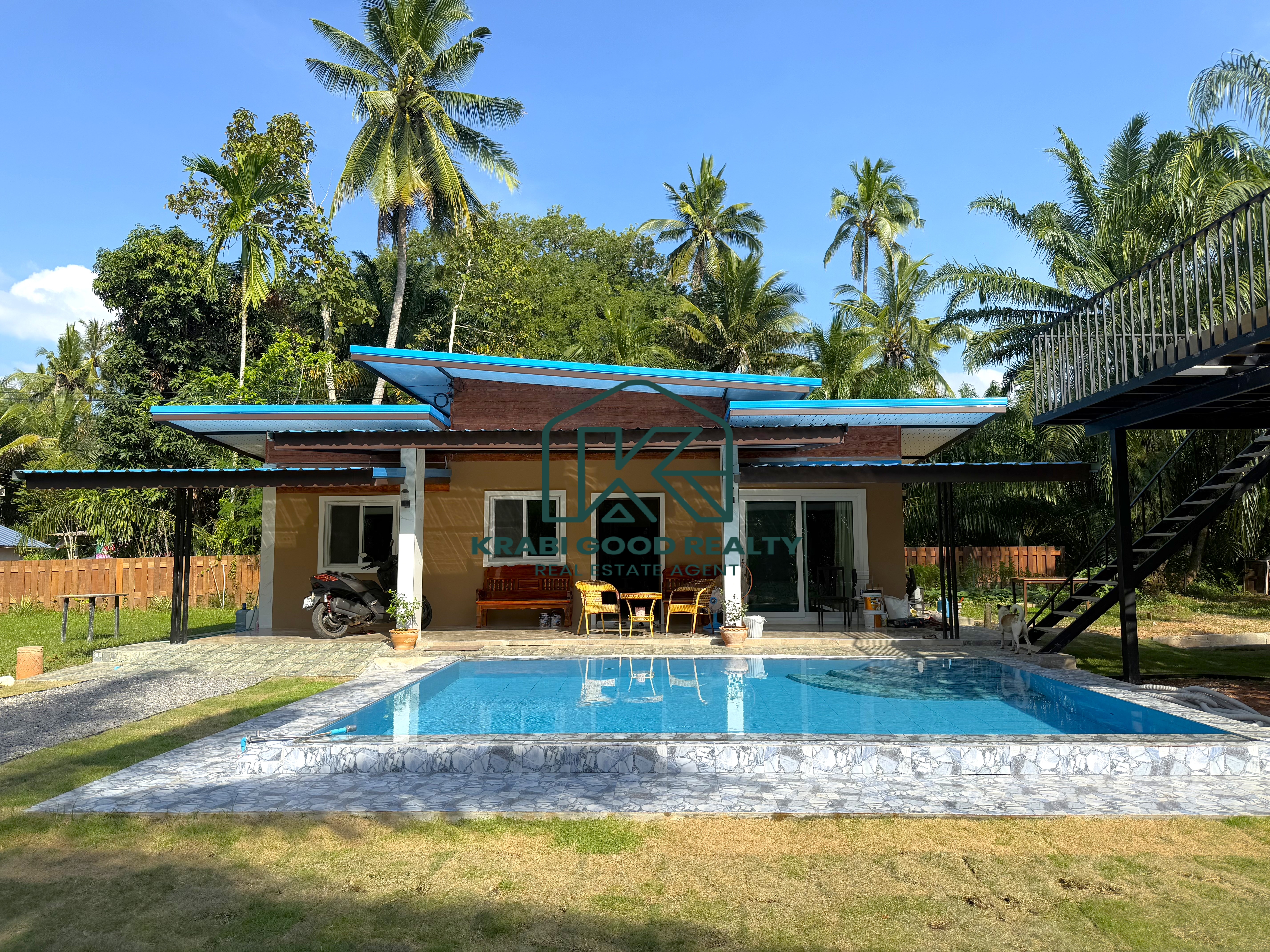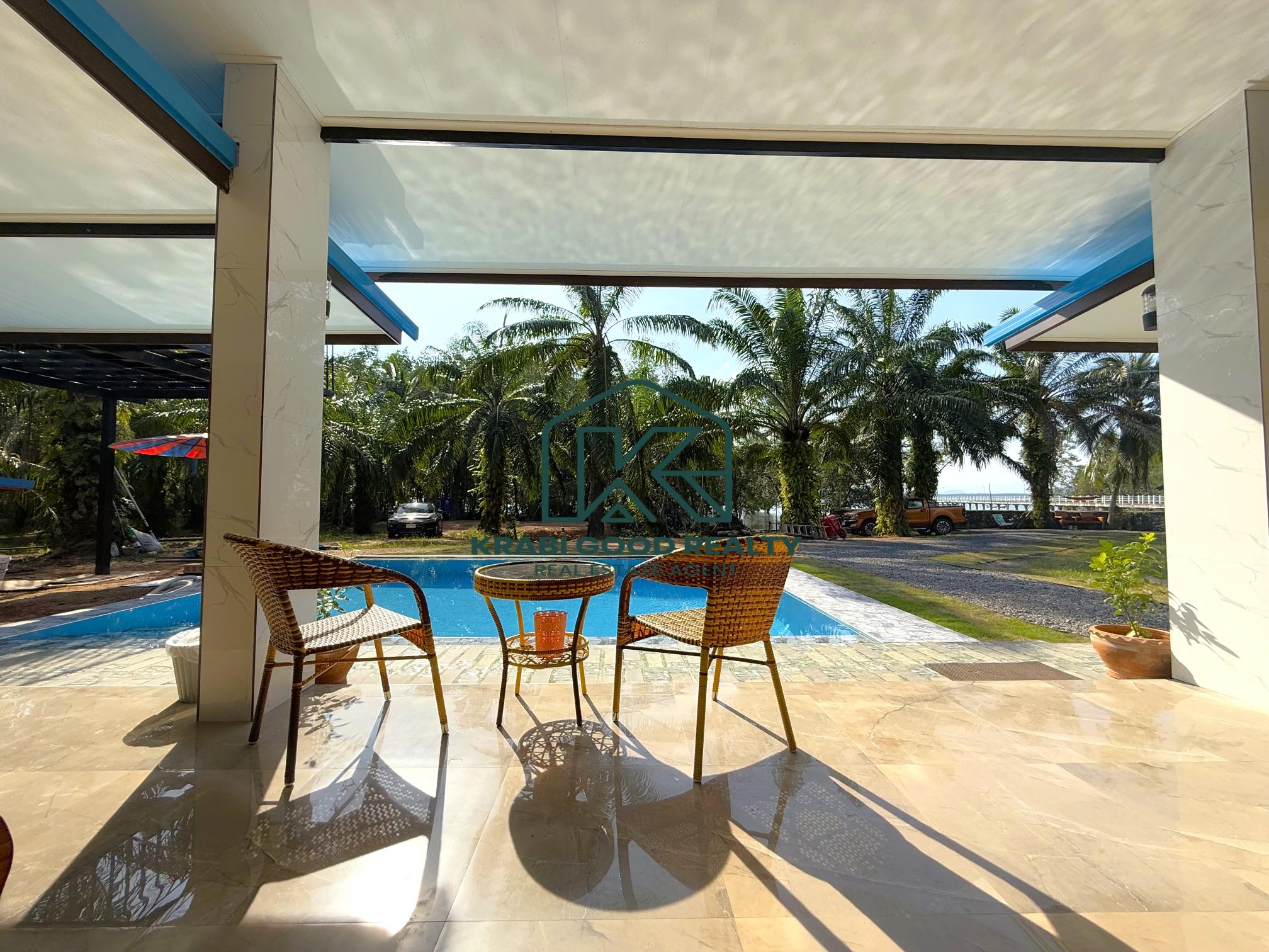2 houses with sea view & palm garden for sale in Laem Sak, Krabi. A rare opportunity in the peaceful and naturally beautiful area of Laem Sak, Krabi. This property features 2 houses and a palm plantation with a total land area of 5-1-91.90 Rai (8,767.60 SqM). The first house is a renovated 2-bedroom home located on a public road, with a cozy living area and views of the beach. The second house is newly built, offering 2 bedrooms, a kitchen, a living space, a rooftop deck with stunning sea views, and a saltwater swimming pool (4.5 x 6.5 m). Also included is a palm garden of 4-3-48.20 Rai (7,792.80 SqM) bordering the mangrove forest. The property comes with 7 Chanote title deeds and is sold with a private longtail boat. Perfect for private living, developing a resort, vacation rentals, or eco-stay business in Laem Sak, Krabi, a hidden gem for nature lovers and tourists.