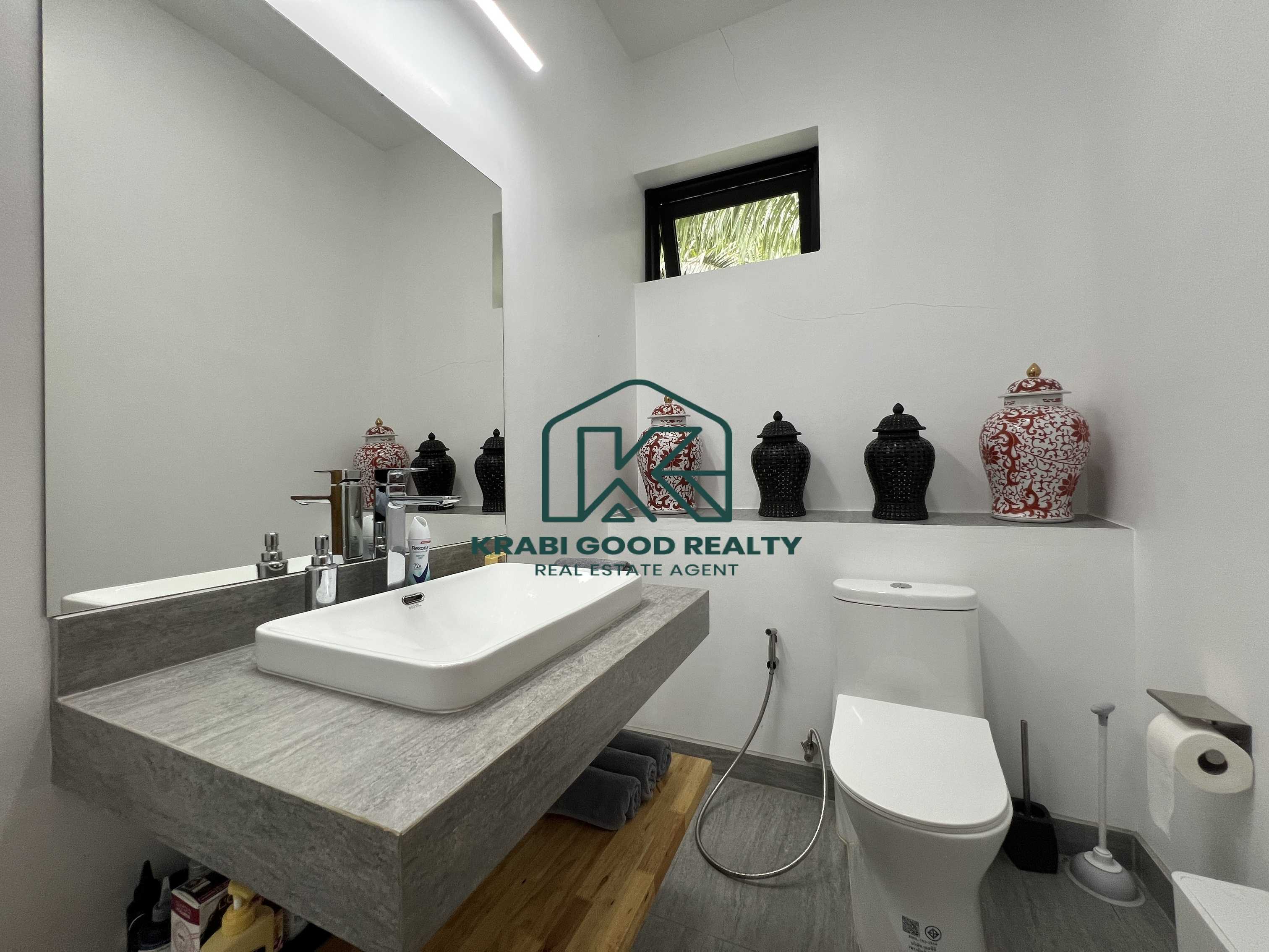 Discover your perfect escape in this stunning 3-bedroom, 4-bathroom pool villa near Ao Nang, an ideal retreat for vacations or retirement living. Nestled in a peaceful, safe, and convenient location just minutes from Ao Nang Beach, this villa blends tranquility with accessibility.