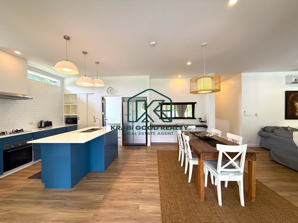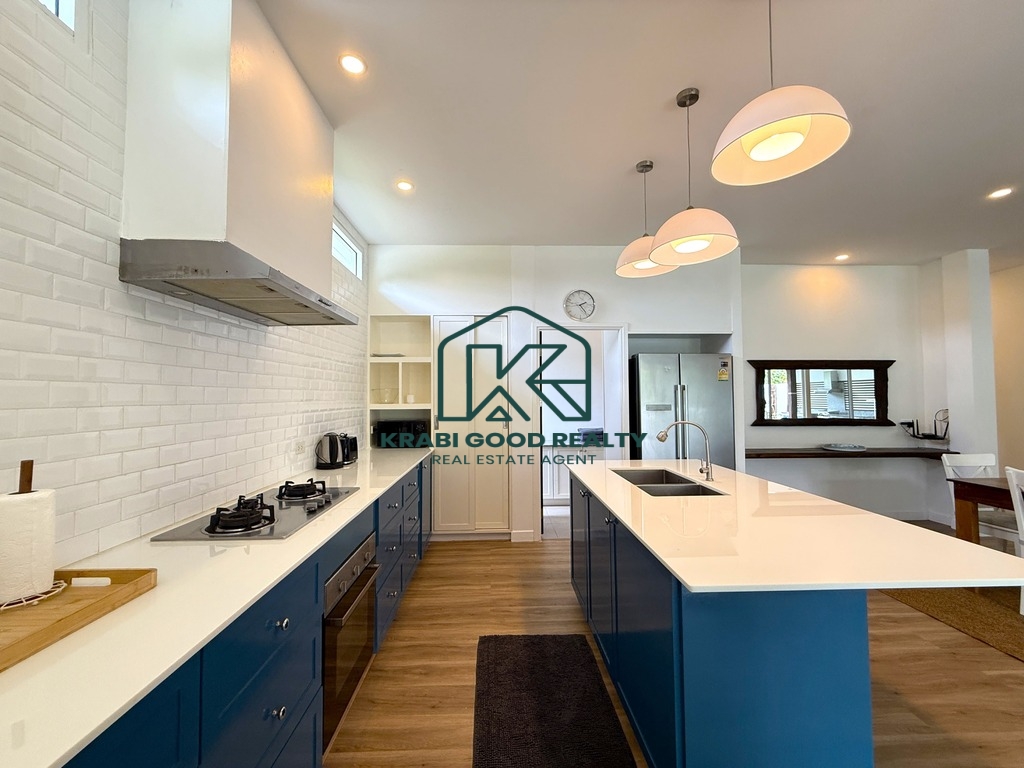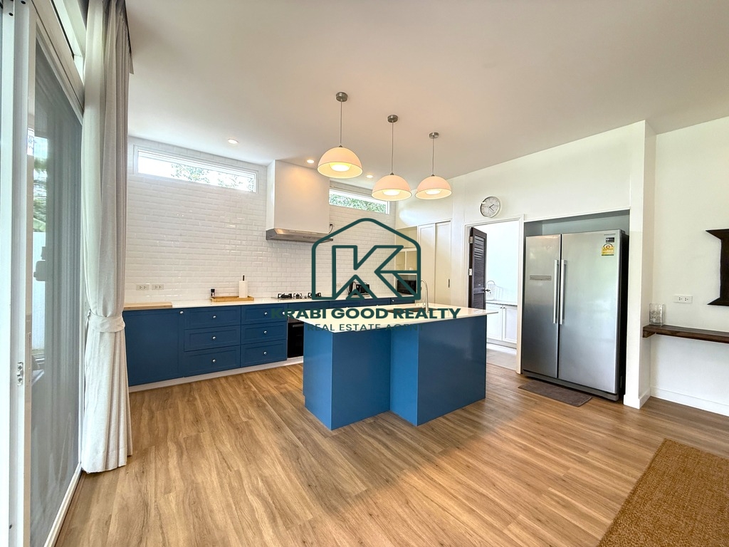 วิลล่า 156 ตร.ม. พร้อม 3 ห้องนอนและ 3 ห้องน้ำ ตั้งอยู่ท่ามกลางธรรมชาติในไสไทย กระบี่ วิลล่ามองเห็นภูเขาอันงดงาม สวรรค์บนดิน พูลวิลล่าสุดหรูกว้างขวางและมีเสน่ห์แห่งนี้ตั้งอยู่บนที่ดิน 712 ตร.ม. พร้อมพื้นที่พักผ่อนกลางแจ้งอันน่าทึ่งพร้อมครัวกลางแจ้งและบาร์บีคิว ห้องครัวของวิลล่ามีเฟอร์นิเจอร์ครบครันพร้อมเครื่องปรับอากาศทั่วทั้งหลัง