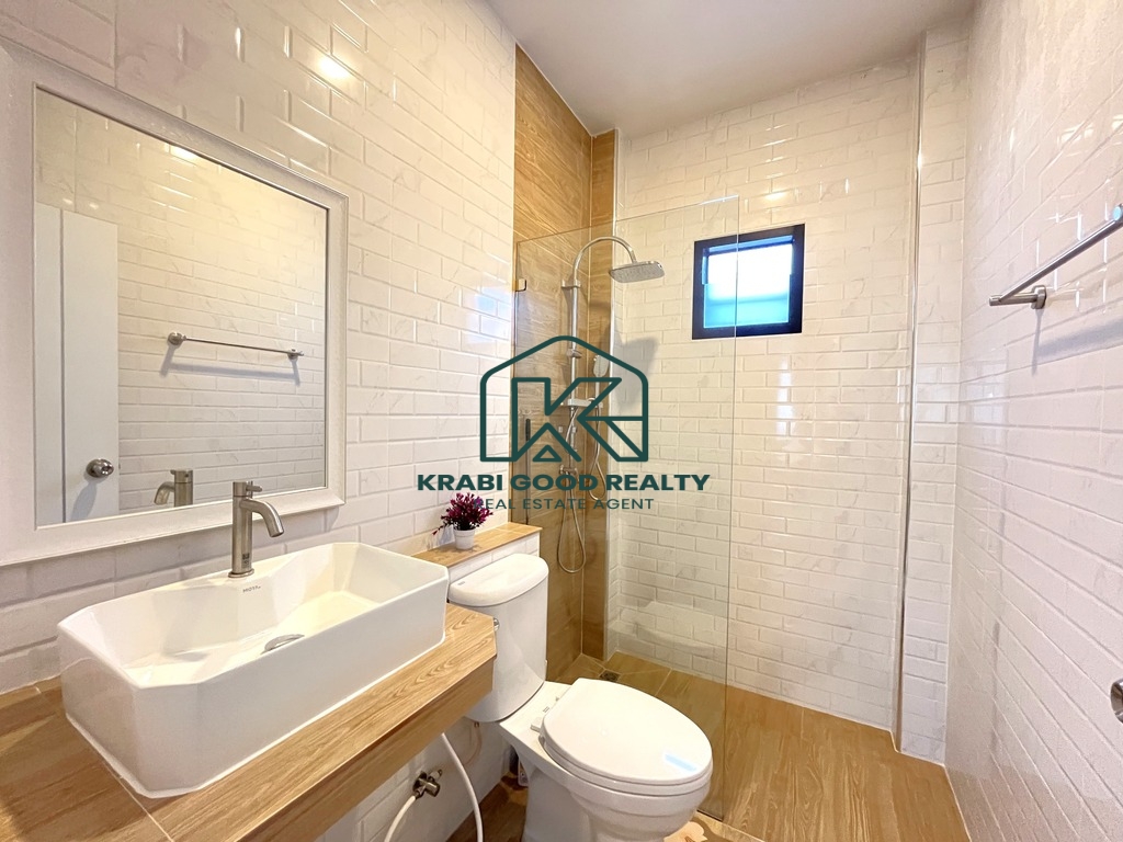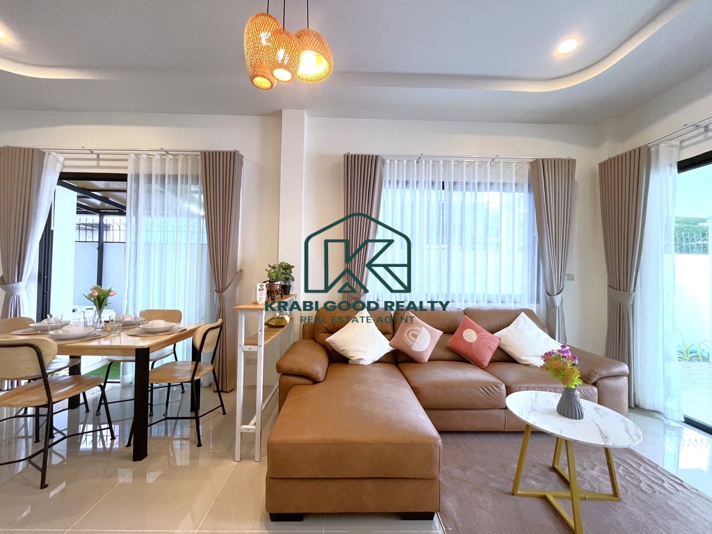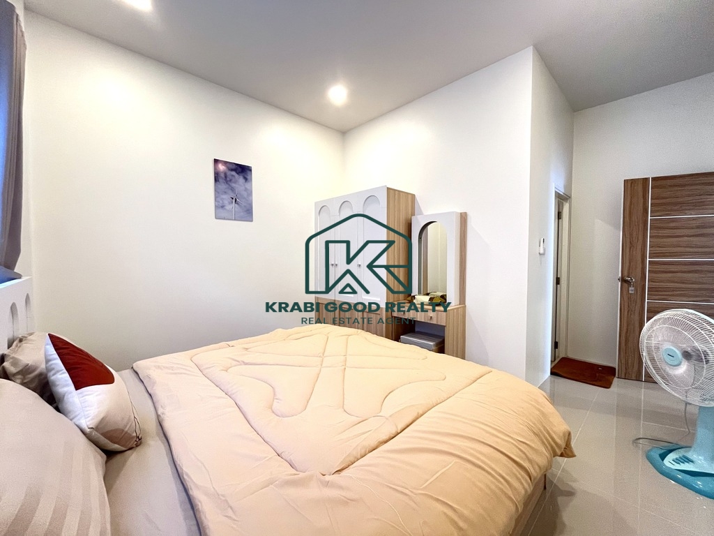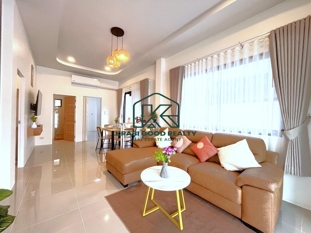 The house offers a spacious living area of 135 square meters and has just been newly built. It is ideal for those seeking comfort and privacy, with convenient access to Makro Ao Nang and the Loco Market.
