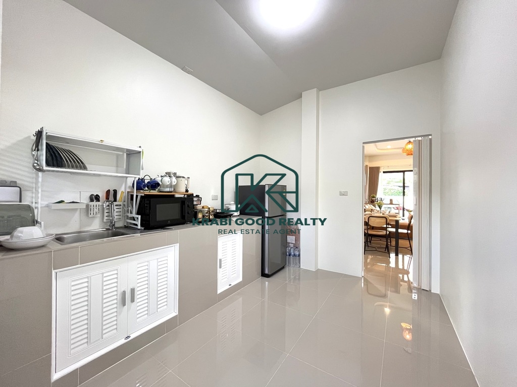 พร้อมพื้นที่ใช้สอยขนาด 135 ตารางเมตร ตัวบ้านเพิ่งสร้างเสร็จใหม่ เหมาะสำหรับผู้ที่มองหาความสะดวกสบายและความเป็นส่วนตัว เดินทางสะดวก ใกล้แม็คโครอ่าวนางและตลาดโลโค