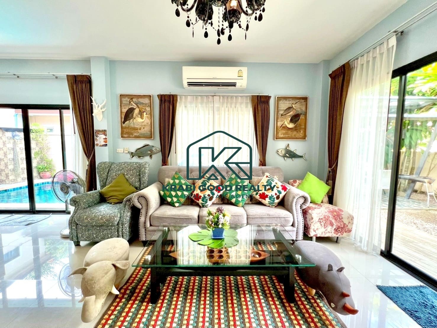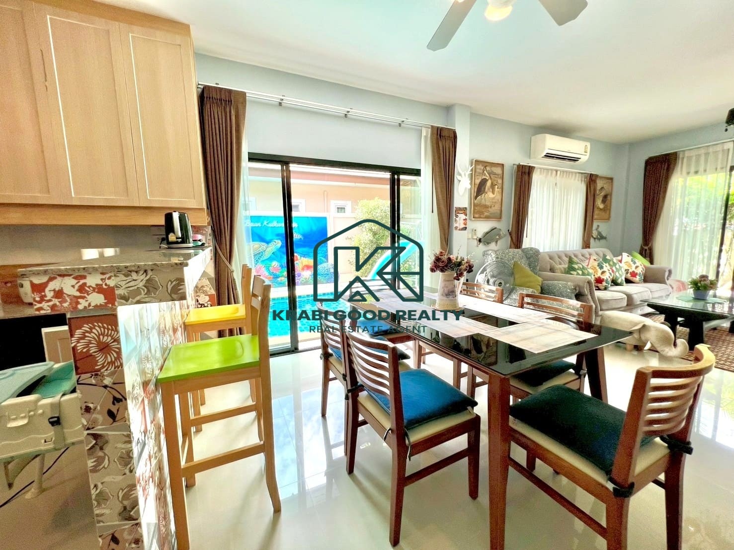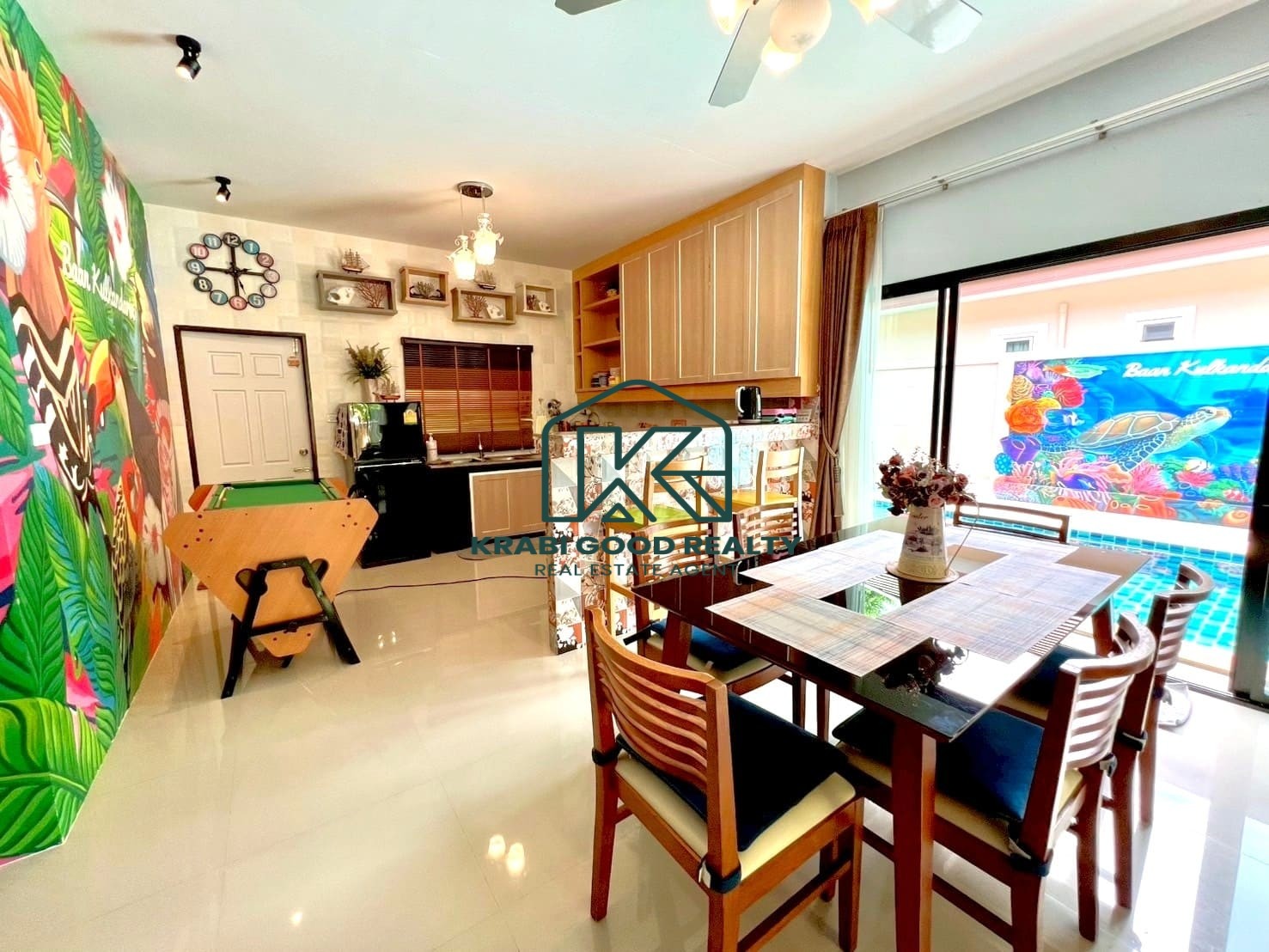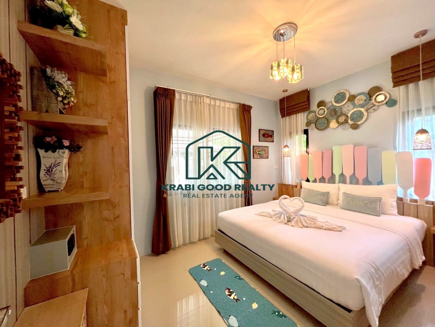 Located in the beautiful area of Ao Nang, Krabi, this 2-bedroom, 2-bathroom villa accommodates up to 6 people and is a truly ideal home for families. Whether you’re looking for a short-term holiday rental or a long-term investment opportunity, this villa is a valuable and versatile choice. The house is fully equipped with thoughtful amenities, designed to cater to both children and adults. A standout feature is the slider bed, perfect for kids to enjoy endless fun and create unforgettable memories. There's also a mini pool table corner, ideal for lively game nights with family or friends.
