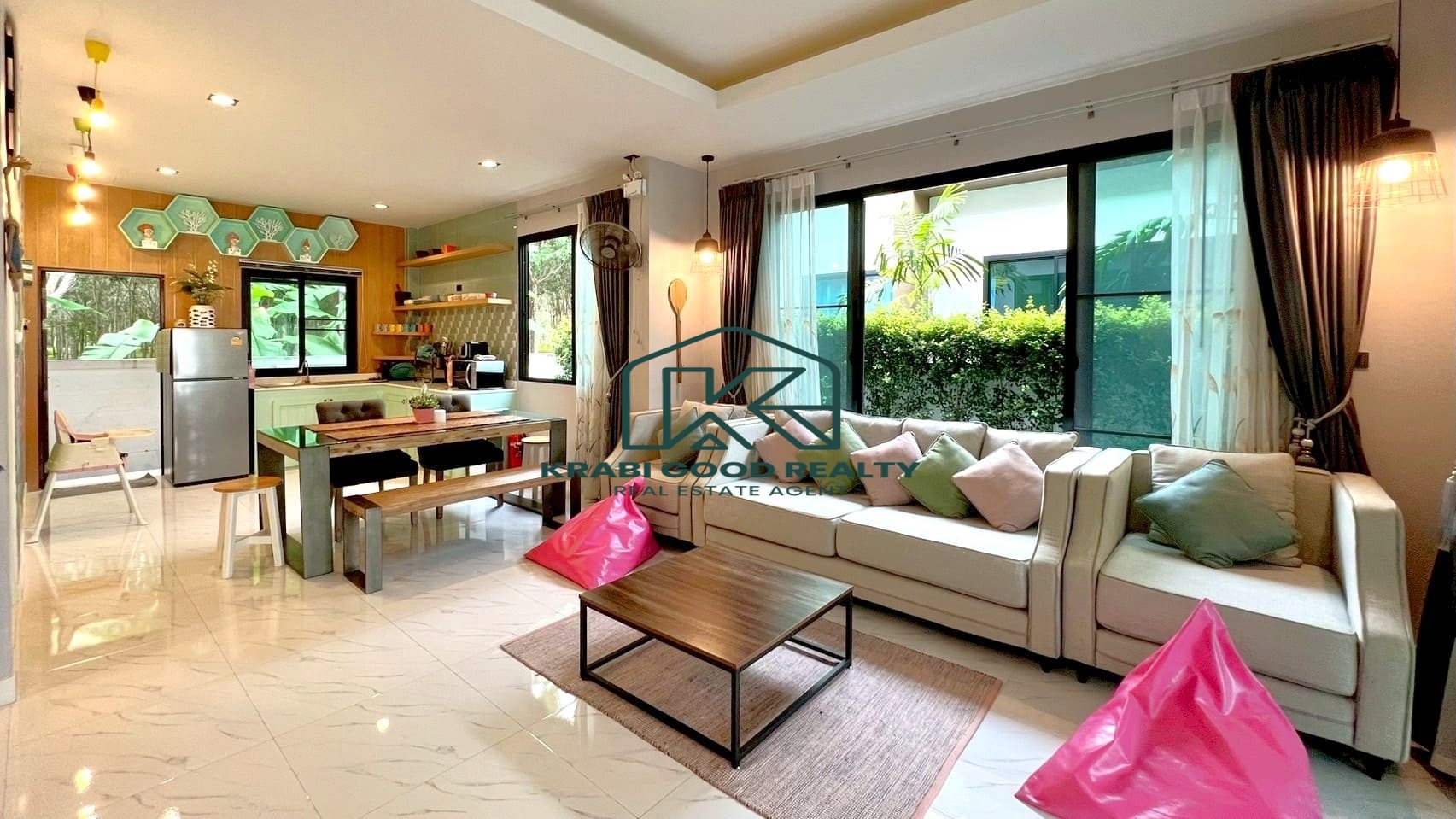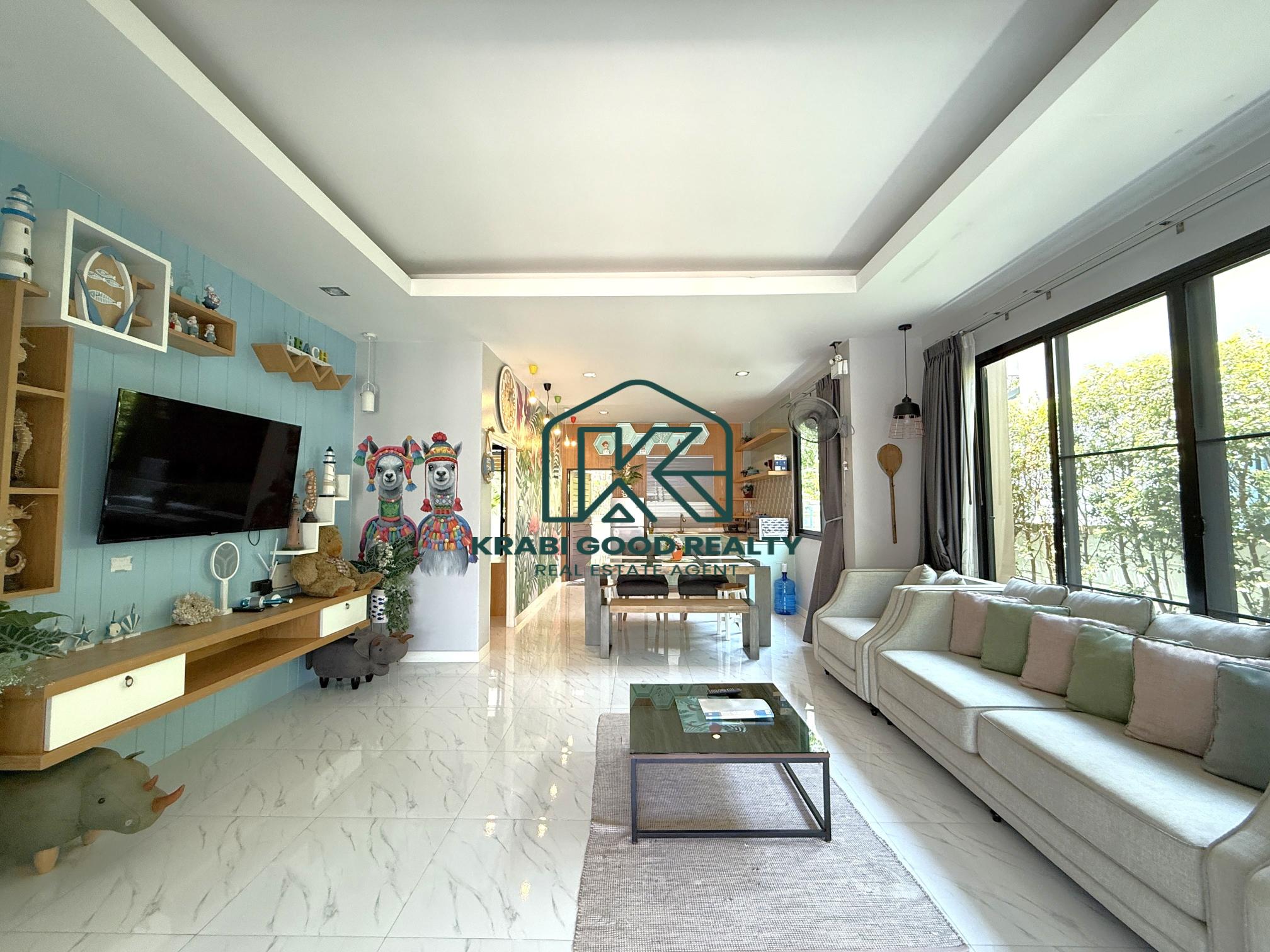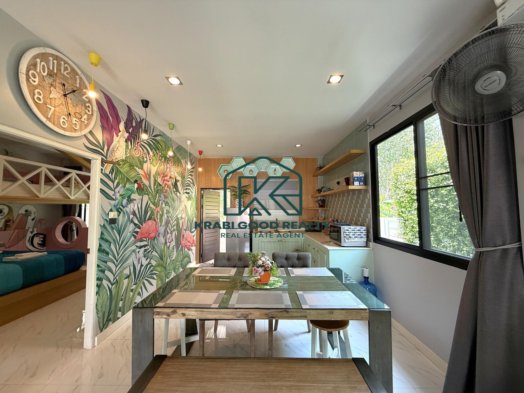 Located in the beautiful area of Ao Nang, Krabi, this 2-bedroom, 2-bathroom villa accommodates up to 6 people and is a truly ideal home for families. The house is fully equipped with thoughtful amenities, designed to cater to both children and adults.