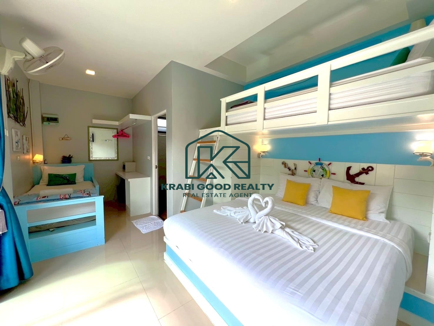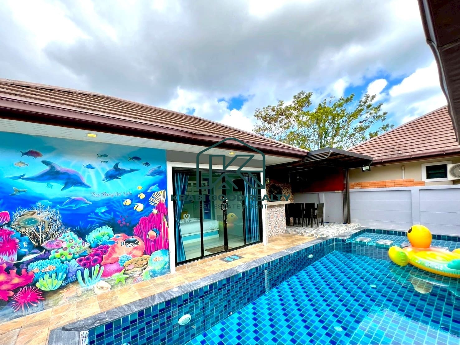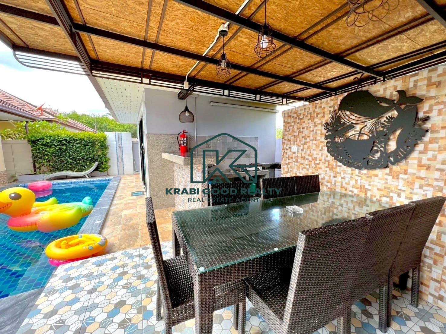 Located in the beautiful area of Ao Nang, Krabi, this 3-bedroom, 3-bathroom villa accommodates up to 9 people and is a truly ideal home for families. The house is fully equipped with thoughtful amenities, designed to cater to both children and adults.