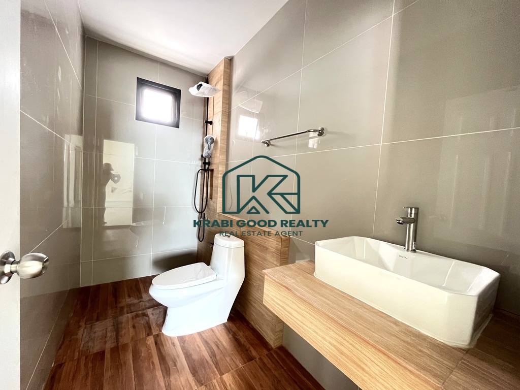 A great opportunity to own a Nordic-style single-story house in Krabi Town. This 2-bedroom, 2-bathroom home offers private parking for two cars and a fenced perimeter for ultimate privacy. Located in a quiet and uncrowded area, yet still close to Central Krabi, this home provides the perfect balance of peace and convenience. Special promotion includes free: 2 air conditioners, full curtain set, water and electricity meters. Whether you're looking for a private residence or a smart investment, this charming home in Krabi Town is an excellent choice.