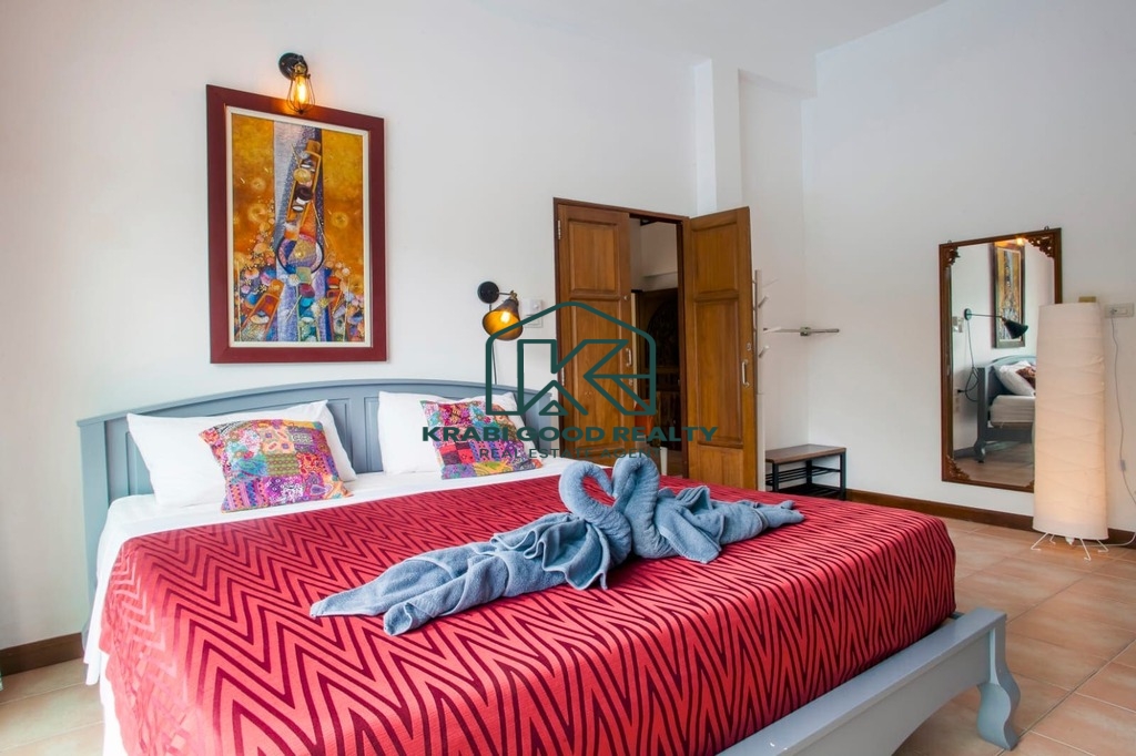 Discover the charm of colonial architecture blended seamlessly with European elegance in this fully furnished villa, offering 230 sqm of living space. Ideally located between Ao Nang Beach and Klong Muang Beach, the property enjoys a peaceful atmosphere while remaining close to all essential amenities.