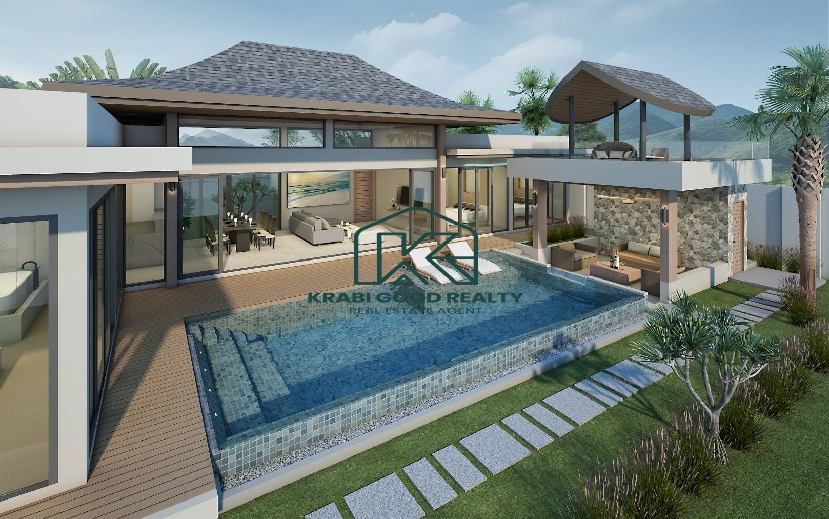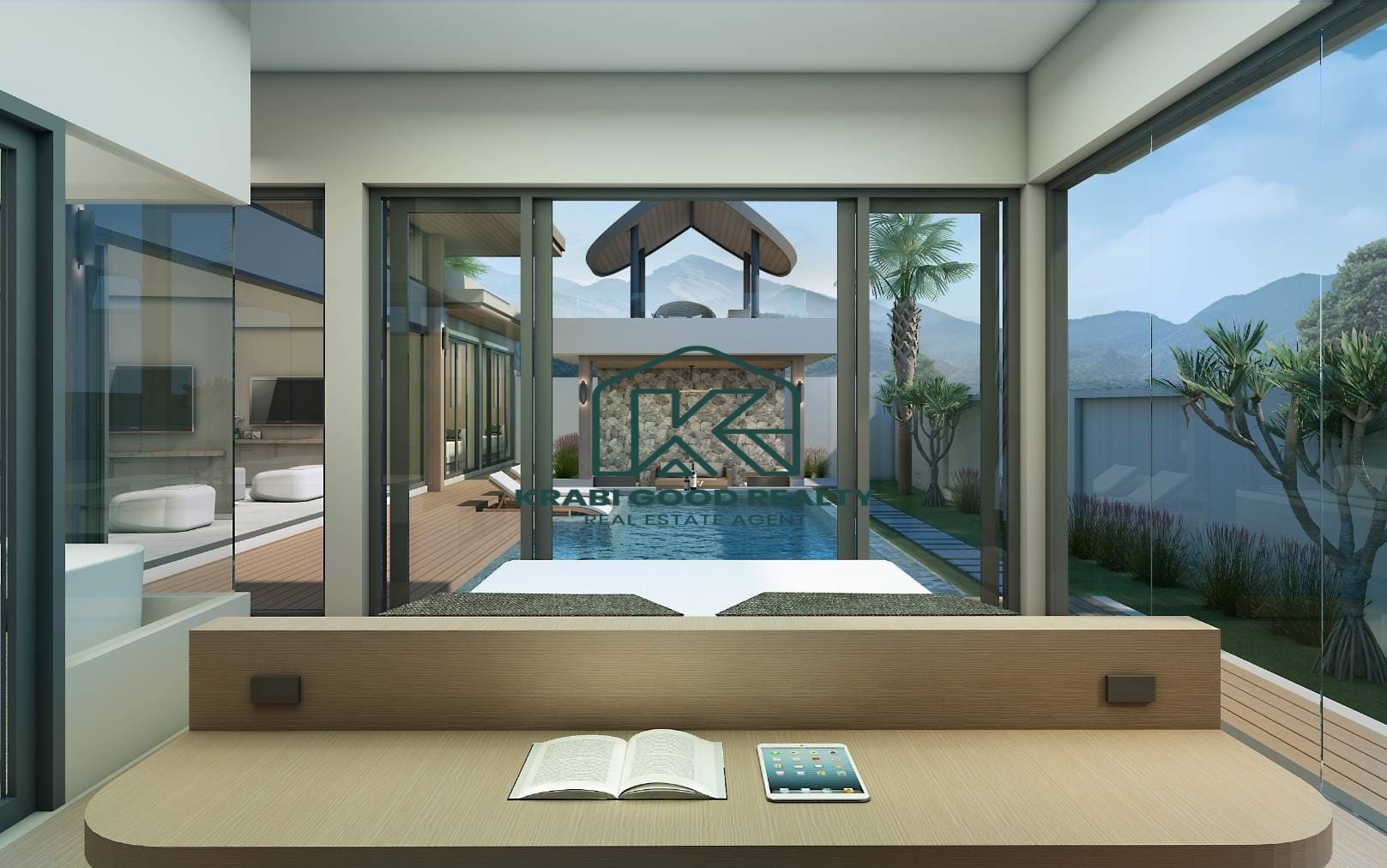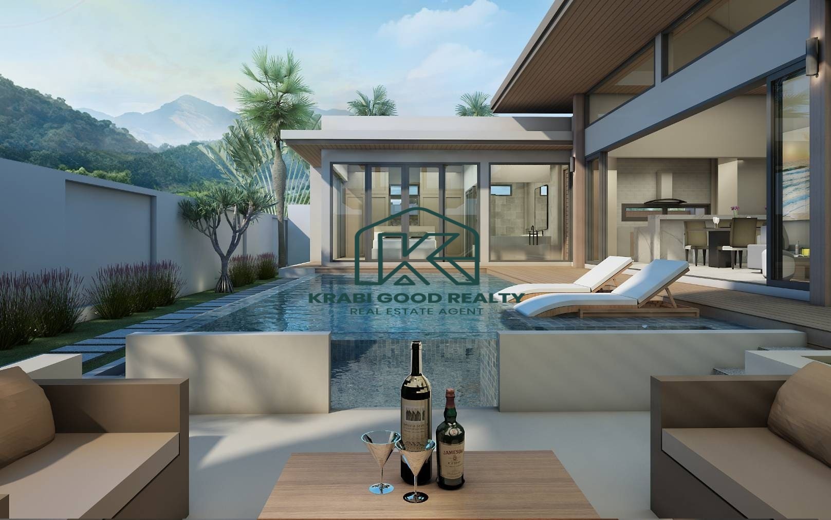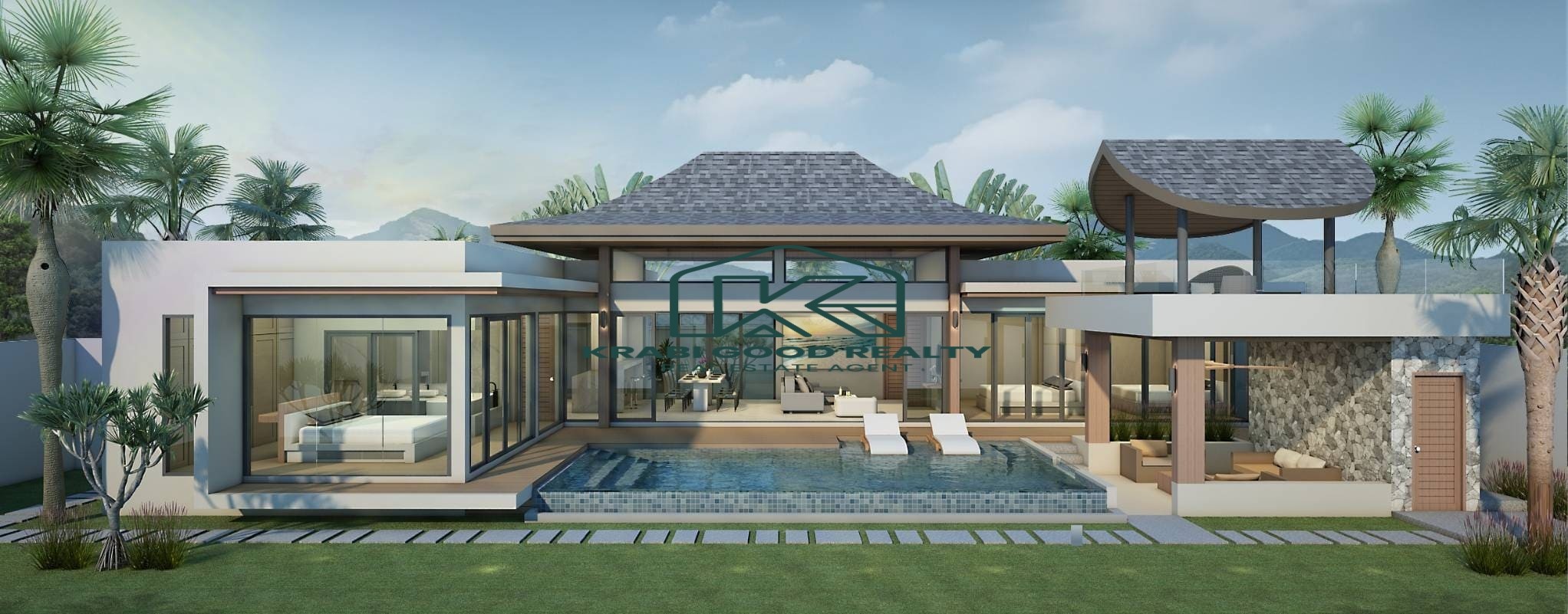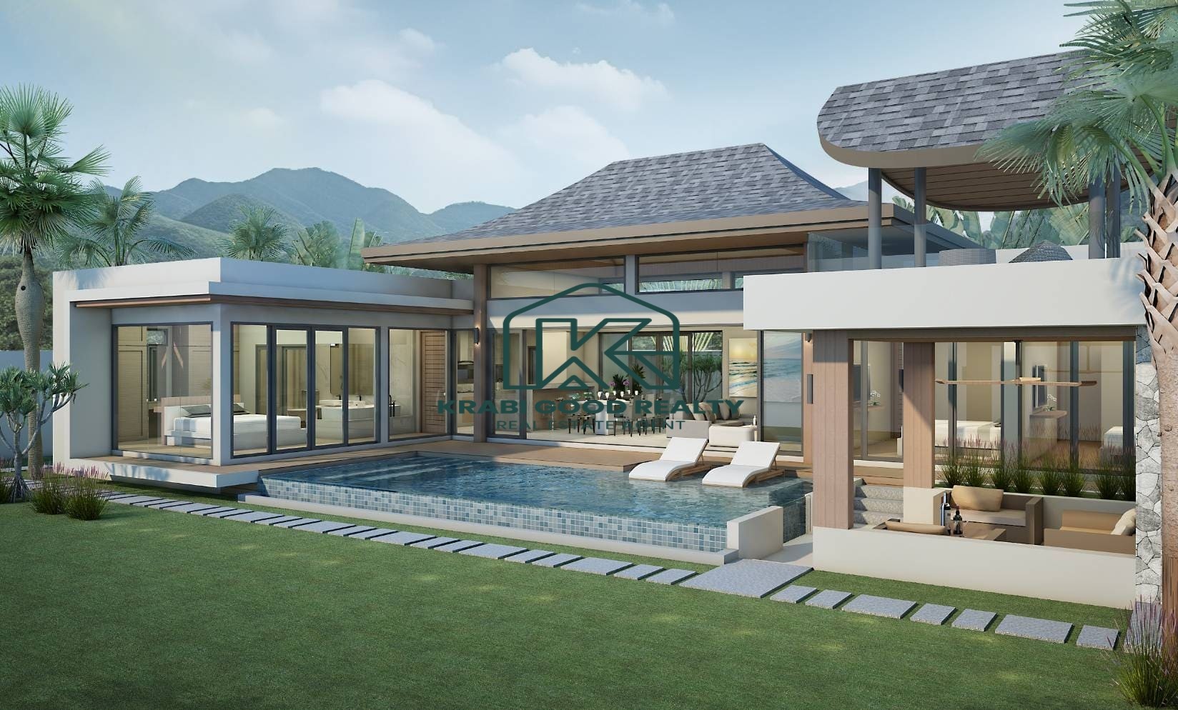 Set against a stunning mountain view, with a peaceful palm plantation at the front, the property offers a serene and private atmosphere.