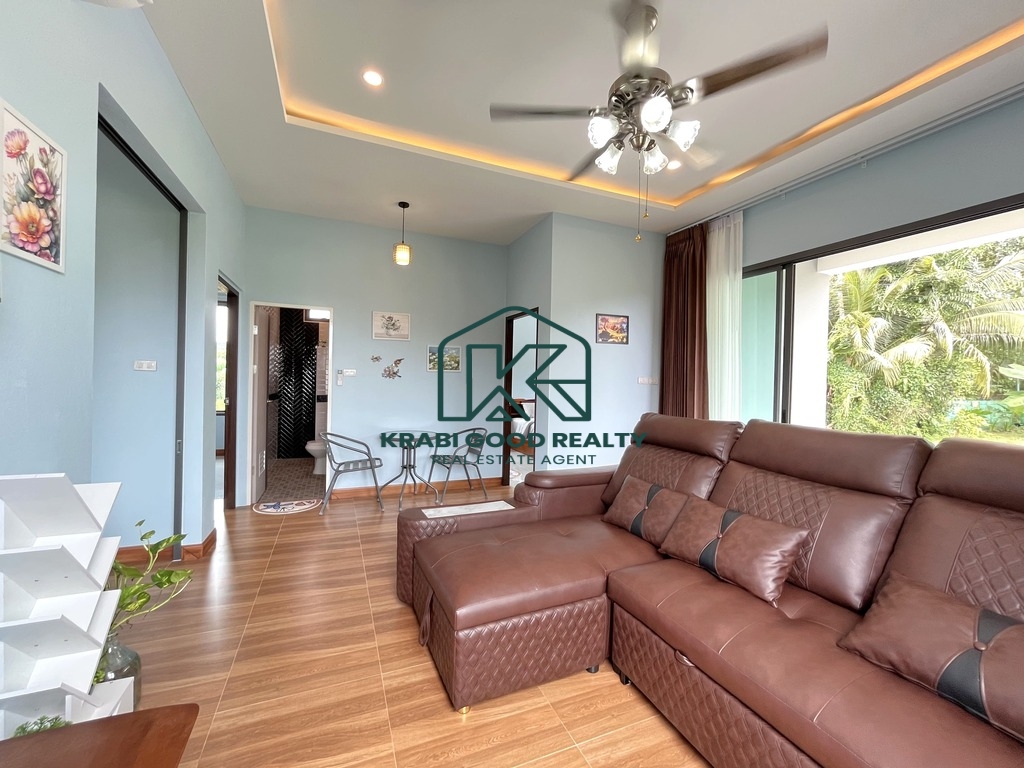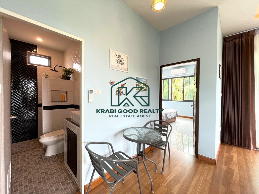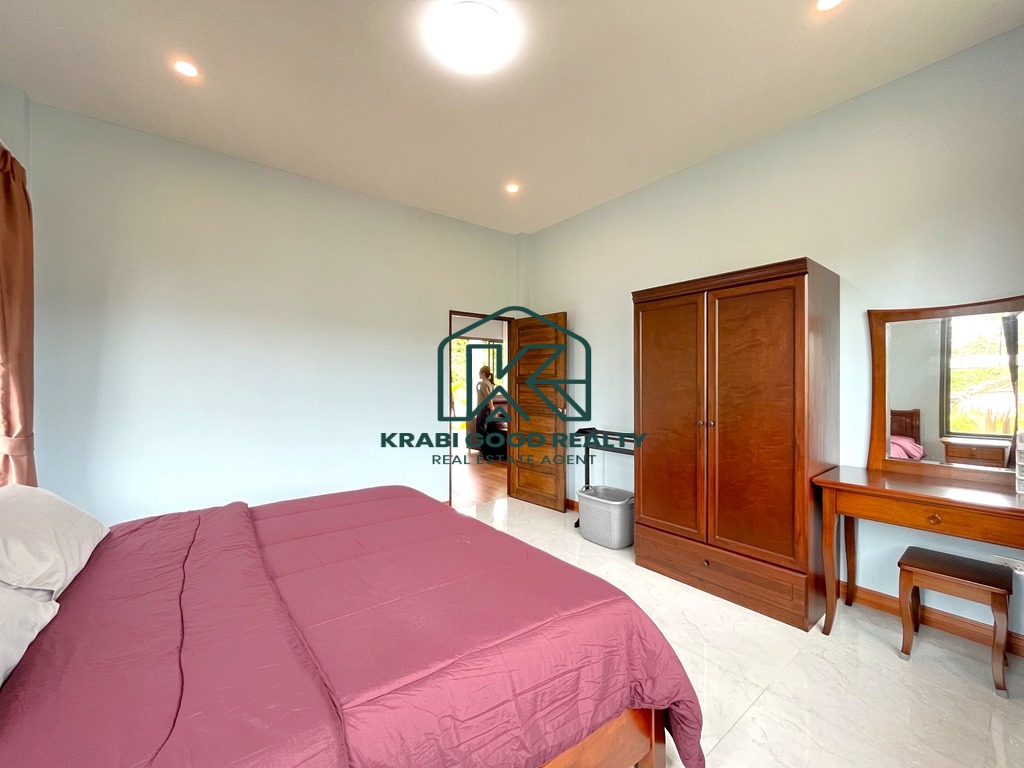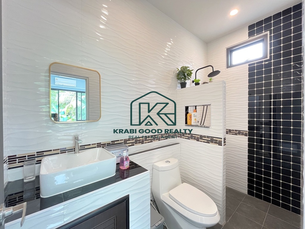 This brand-new house is available for rent in a convenient location near the main Klong Muang Road. It features 2 bedrooms and 2 bathrooms, with a bright, airy interior that stays naturally cool and comfortable throughout the day. The property is situated close to the local community, 7-Eleven convenience stores, and a variety of restaurants.