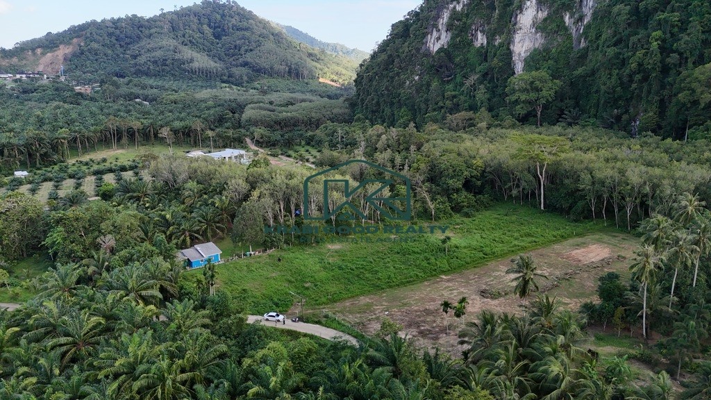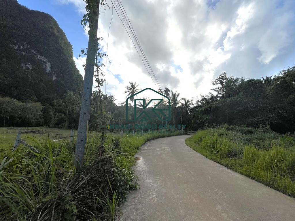 Land for sale with a total area of 2 Rai and 113 square wah (4,552 sq.m.) located in the peaceful and scenic area of Laem Som, Krabi. Surrounded by nature with a breathtaking mountain view at the back of the plot, this land is perfect for building a private residence, homestay, or for investment purposes.