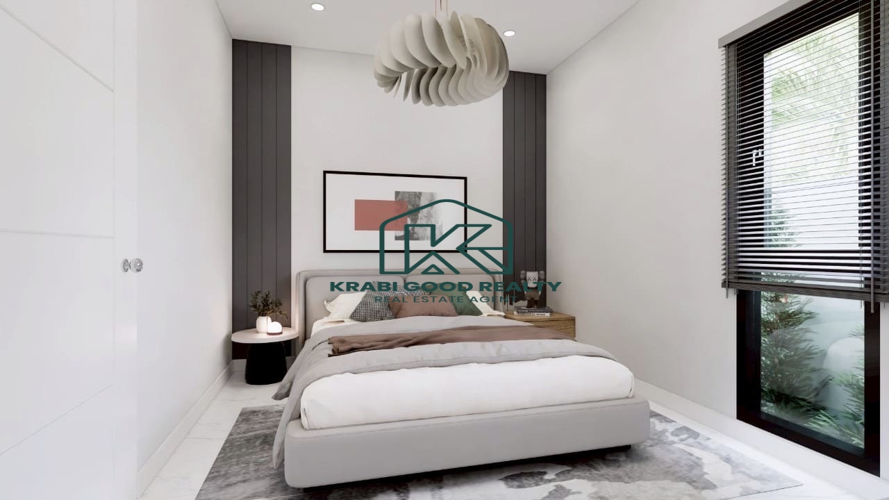 This well-located pool villa is situated close to Ao Nang with convenient access to main roads and local amenities. It is ideal for both personal living and investment for rentals. The villa features 2 bedrooms, 1 bathroom, a living room, a kitchen, and private parking for one car. A private swimming pool adds to its relaxing ambiance.