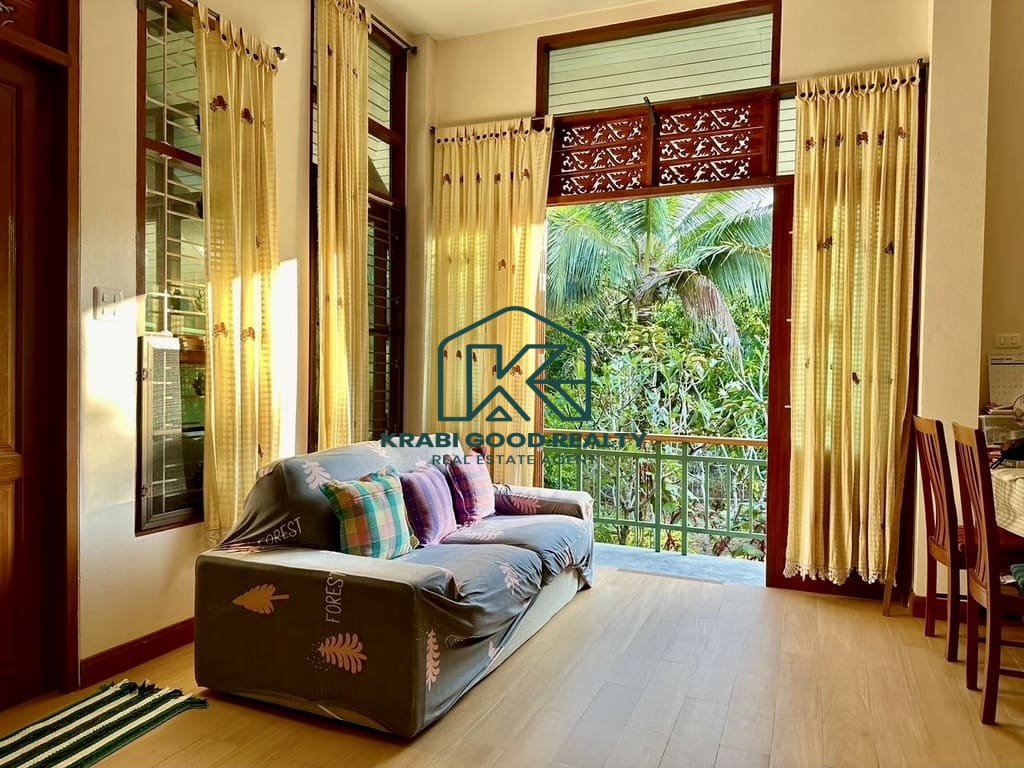 ตัวบ้านเป็นบ้านชั้นครึ่ง อายุประมาณ 7 ปี ออกแบบเรียบง่ายน่าอยู่ ประกอบด้วย 2 ห้องนอน 1 ห้องน้ำ พร้อมห้องอาบน้ำกลางสวนแยกต่างหาก 1 ห้อง มีโรงจอดรถในร่มสำหรับ 2 คัน ล้อมรอบด้วยสวนสีเขียวให้ความร่มรื่นและเป็นส่วนตัว
