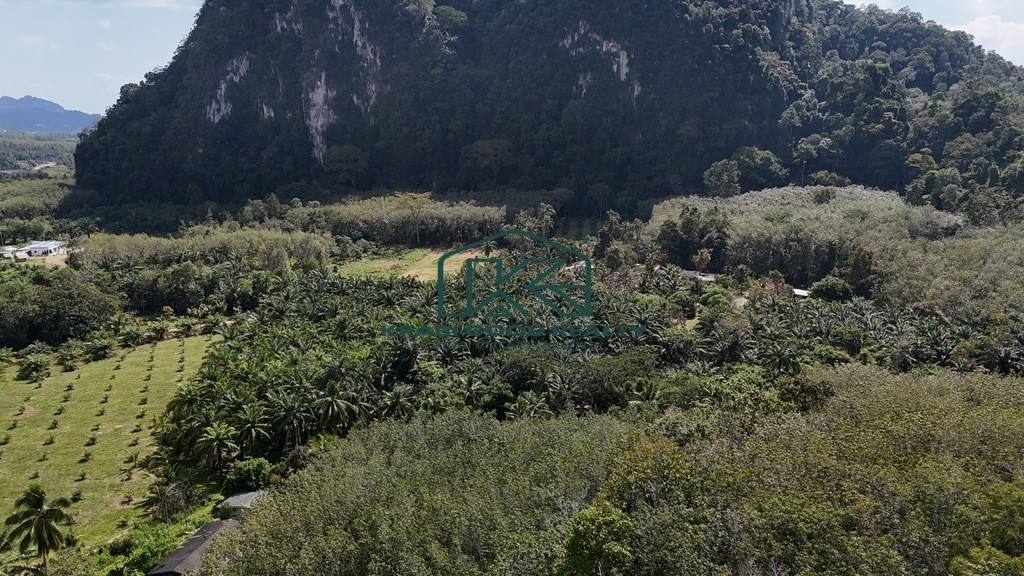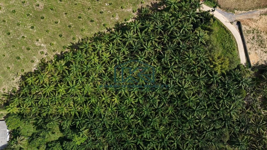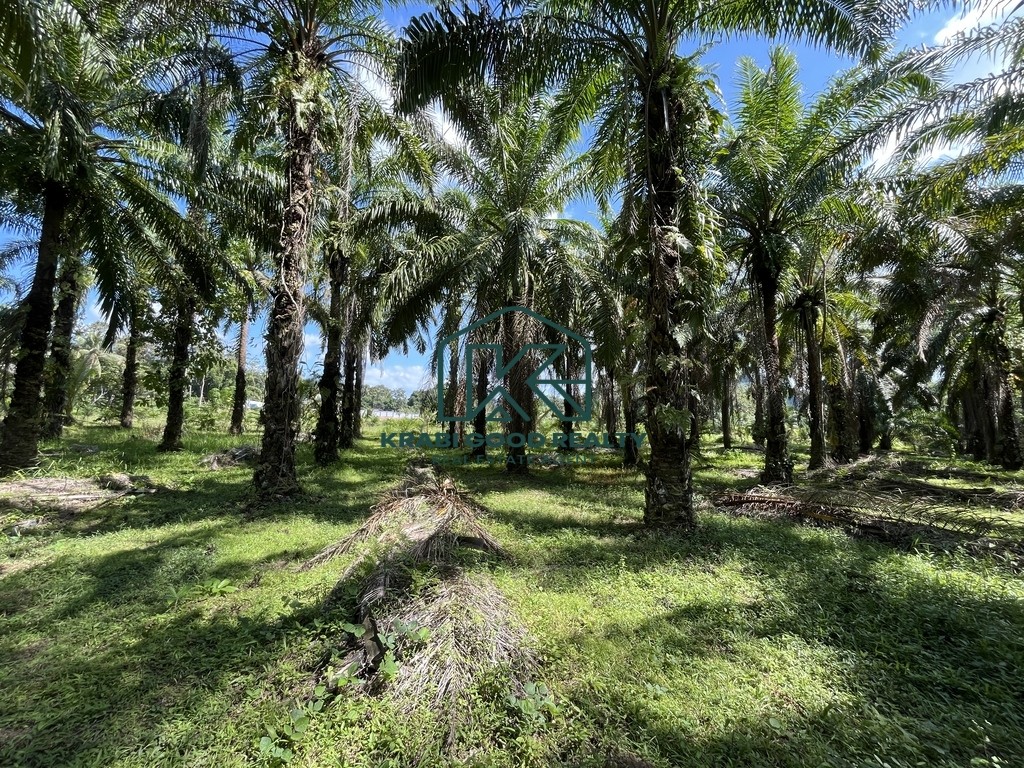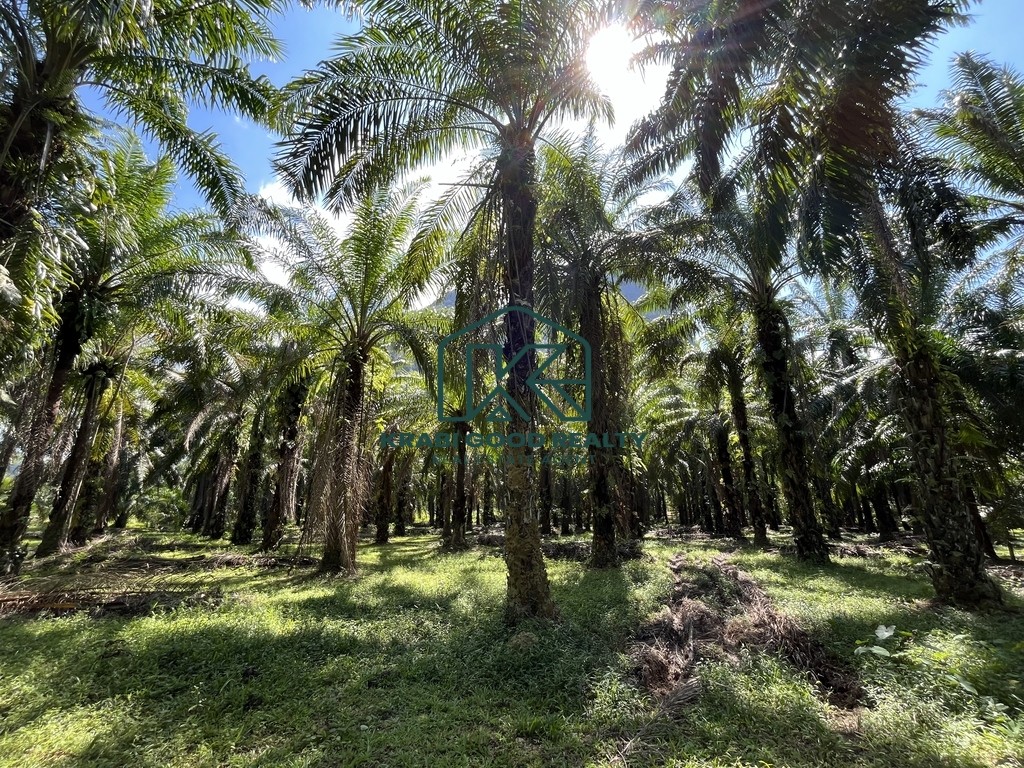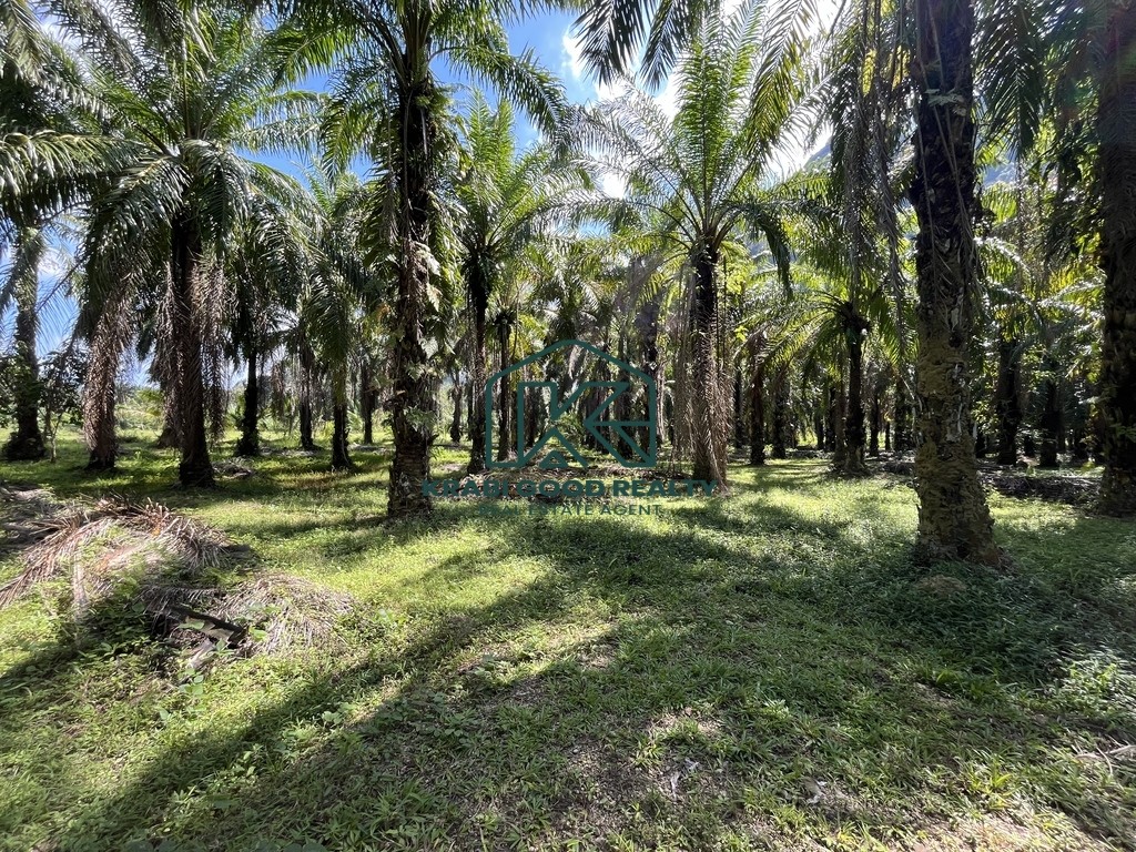 Palm plantation land for sale with a total size of over 6 rai, located in Nong Thale, Krabi. The land is flat and easy to develop, offering a peaceful and natural atmosphere with beautiful mountain views. It is ideal for building a private residence, garden house, small resort, or for long-term investment.