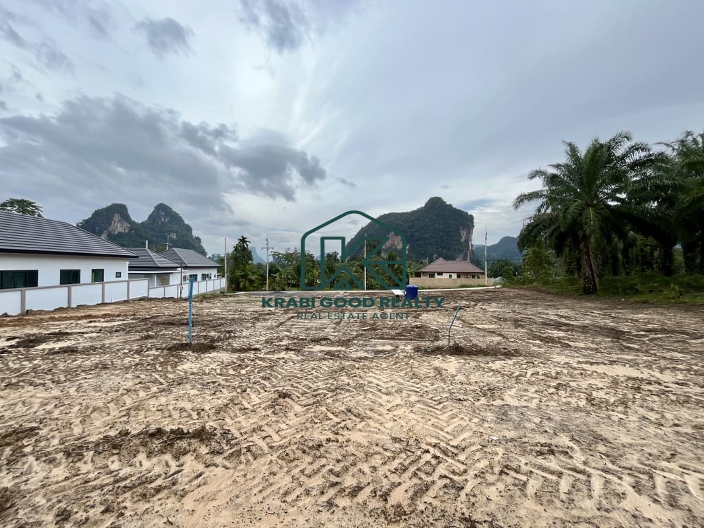 These subdivided land plots are located in a scenic area with beautiful mountain views, positioned toward the rear of the development on higher ground that gently slopes downward, offering open natural views and a peaceful atmosphere. The surrounding area features pool villa projects, highlighting the strong potential of the location, and it is conveniently situated not far from Ao Nang.