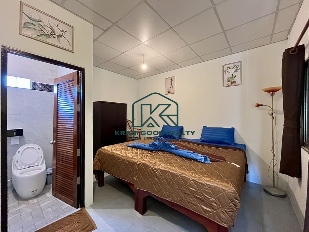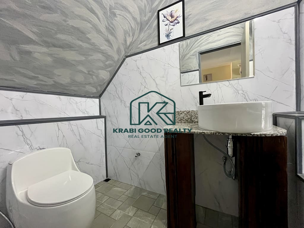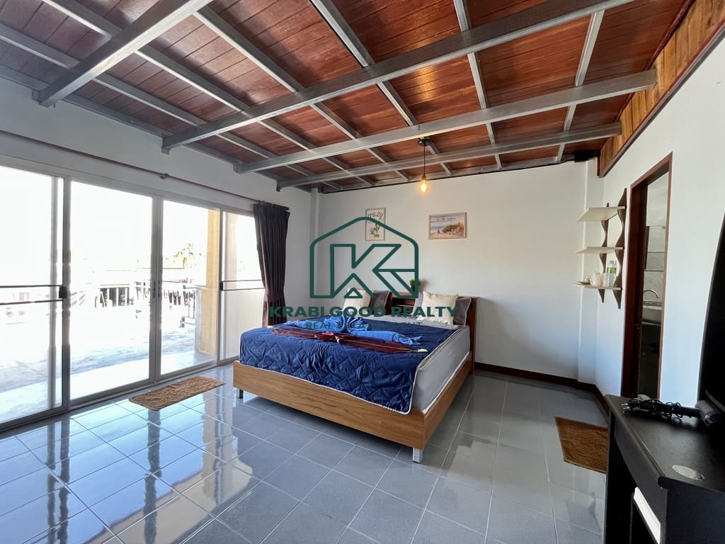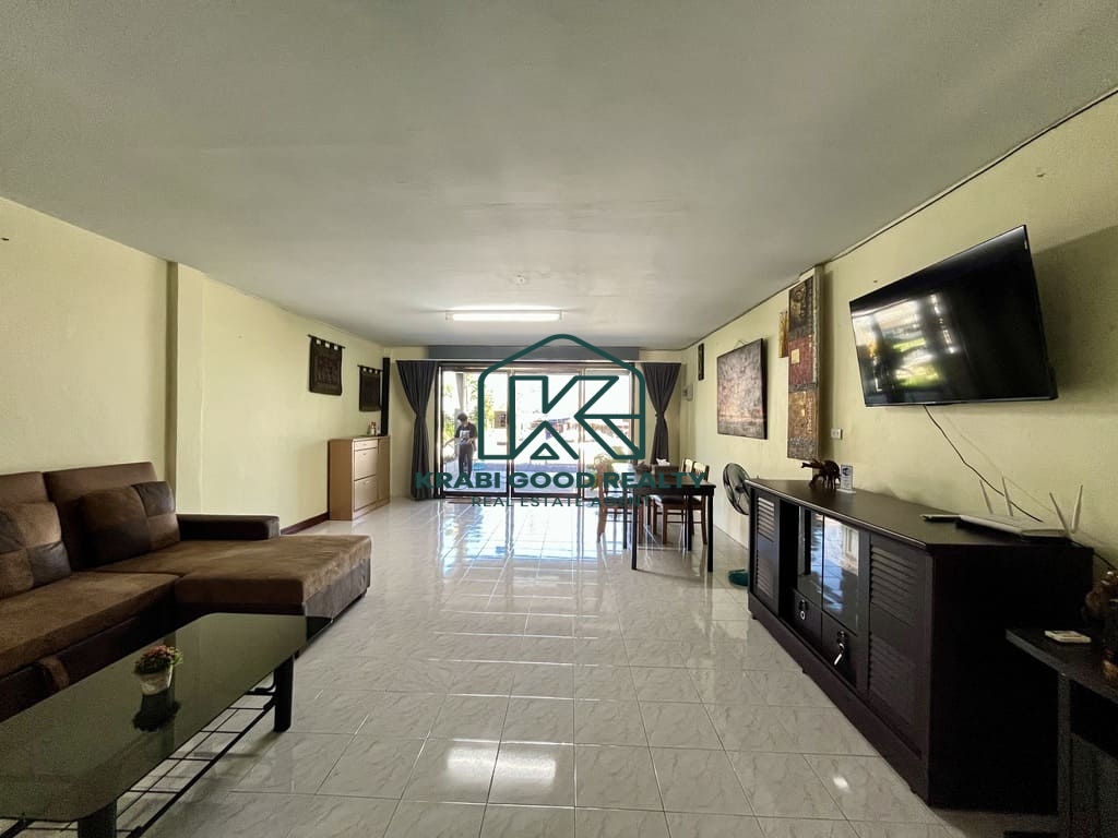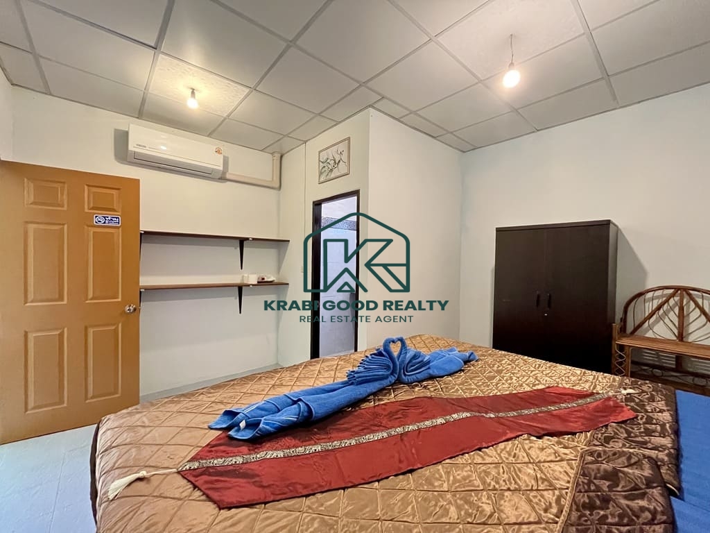 This two-storey building is located in a prime beachfront area at Ao Nam Mao, Krabi. It is within walking distance to Ao Nam Mao Pier, the main departure point for Railay Beach. The property is surrounded by convenience stores and restaurants, offering excellent accessibility and daily convenience. The rear of the building provides direct access to the beach, creating a private and relaxing seaside atmosphere, ideal for investment or use as a holiday home.The building consists of three bedrooms, four bathrooms, and parking space for one car. The interior layout is well-proportioned and suitable for residential living or tourism-related development. This property is ideal for long-term investment, holiday home use, or development into tourist accommodation, due to its strategic beachfront location in one of Krabi’s key tourism areas.