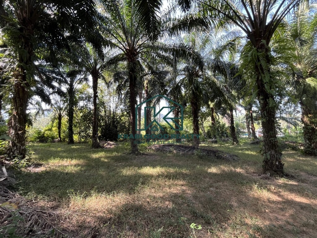 This palm plantation land for sale offers a total area of over 2 rai, located in a peaceful setting with beautiful mountain views. The environment feels open, quiet, and surrounded by nature, making it ideal for building a private residence, garden home, or future investment project.