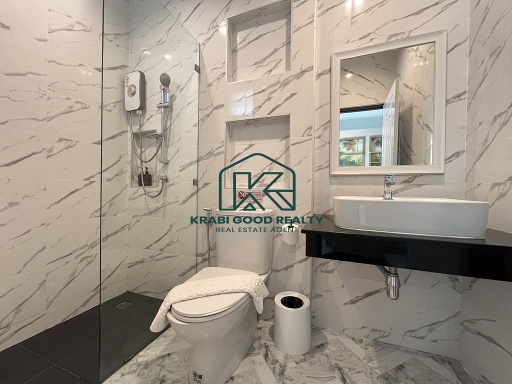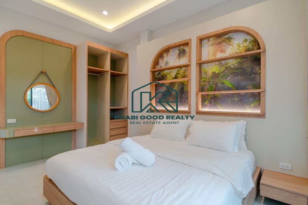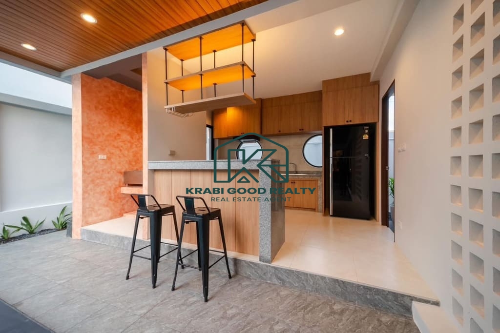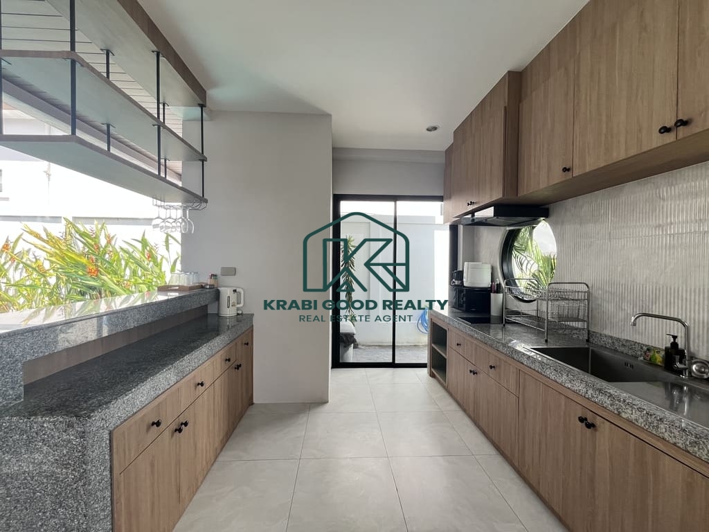 This private pool villa is located in a prime area of Ao Nang Soi 1, offering convenient access and strong potential for both residential living and rental investment. The property is designed with an open and airy layout, providing a high level of privacy.The villa features 3 bedrooms and 3 bathrooms, a separate outdoor kitchen, parking space for two cars, and a private swimming pool. The property is sold fully furnished and is ready for immediate occupancy or rental operation. Ideal for buyers seeking a high-potential investment in a popular tourist destination. Transfer fees at the Land Office are shared equally between buyer and seller.